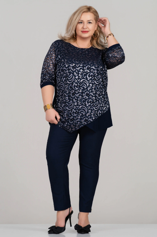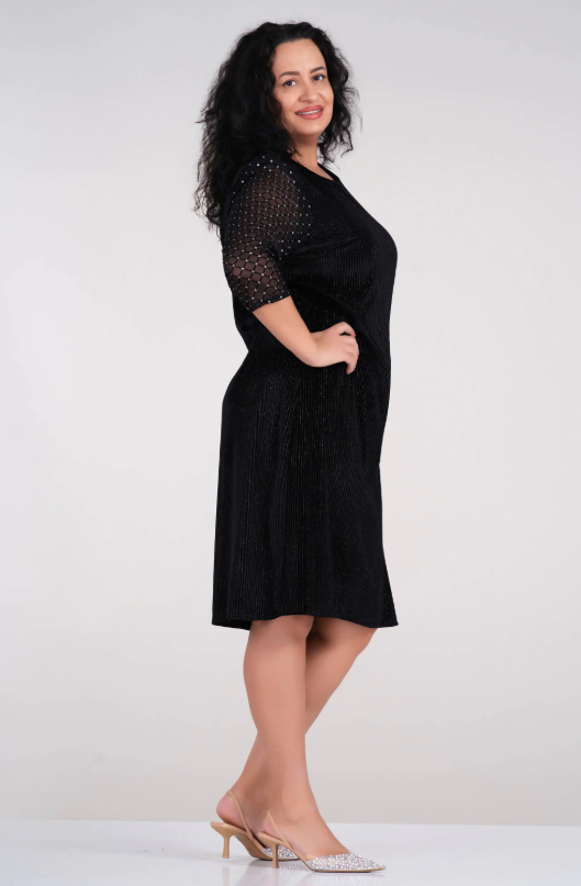 Търсете модели с плетени елементи, дантела или дискретни пайети – те добавят празничен ефект без да натоварват визията. Този вариант е особено подходящ за дамите, които предпочитат по-свободни модели дрехи големи размери.
