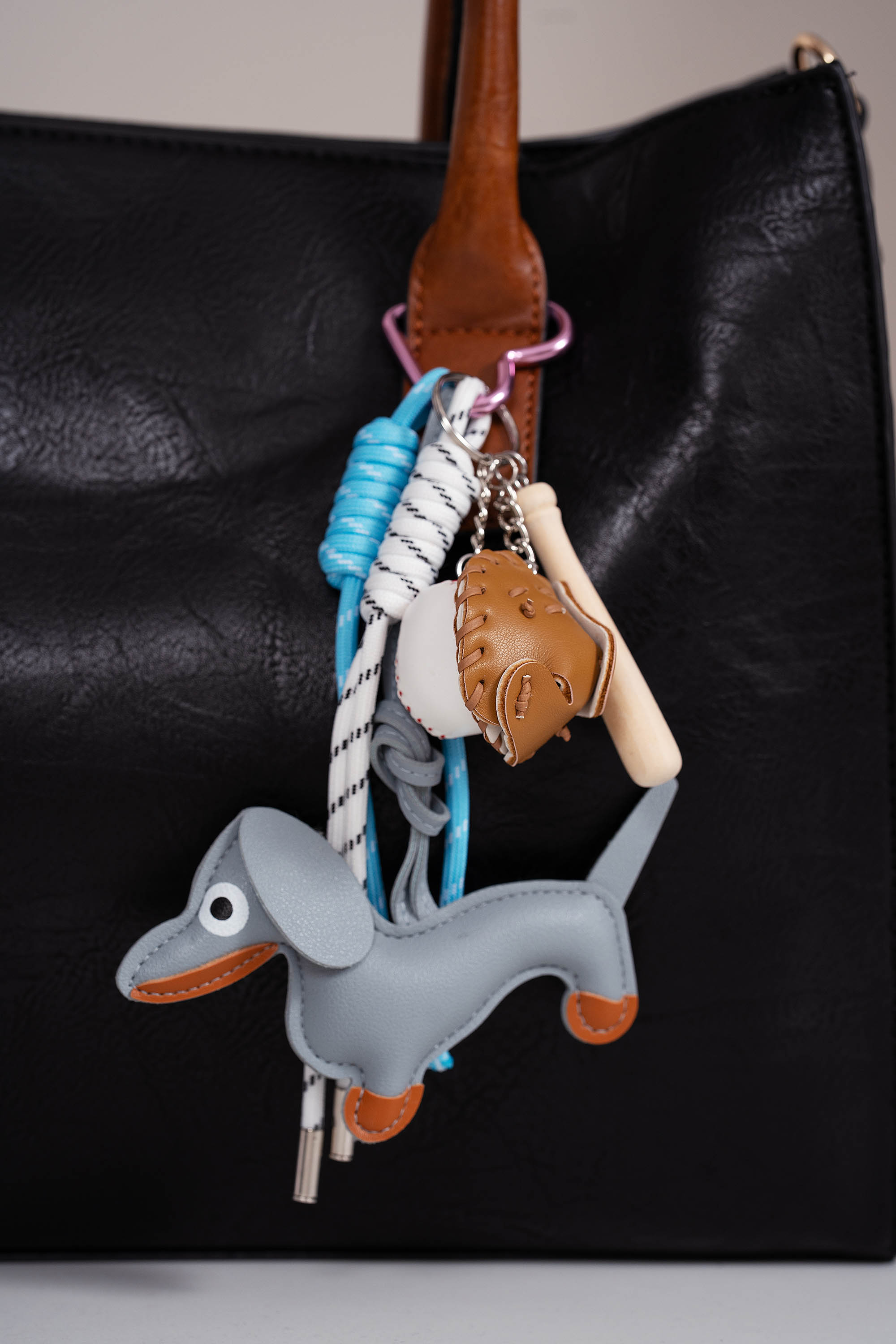 Аксесоар за чанта със сиво куче и бейзболна топка