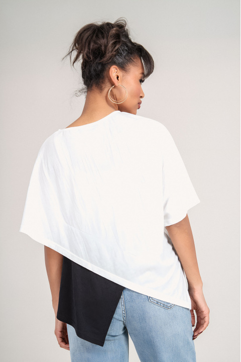 Дамска асиметрична туника в бяло с черен акцент