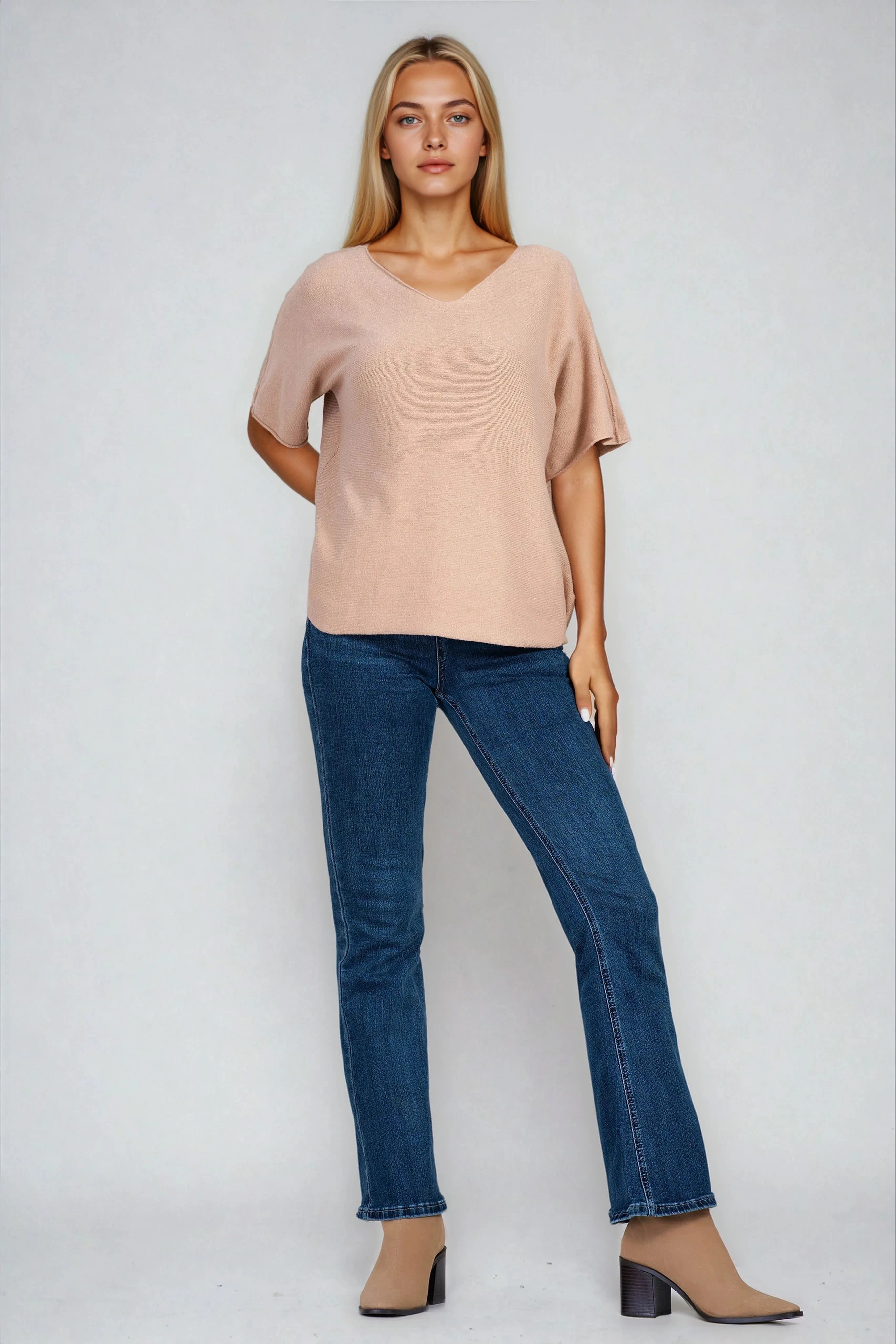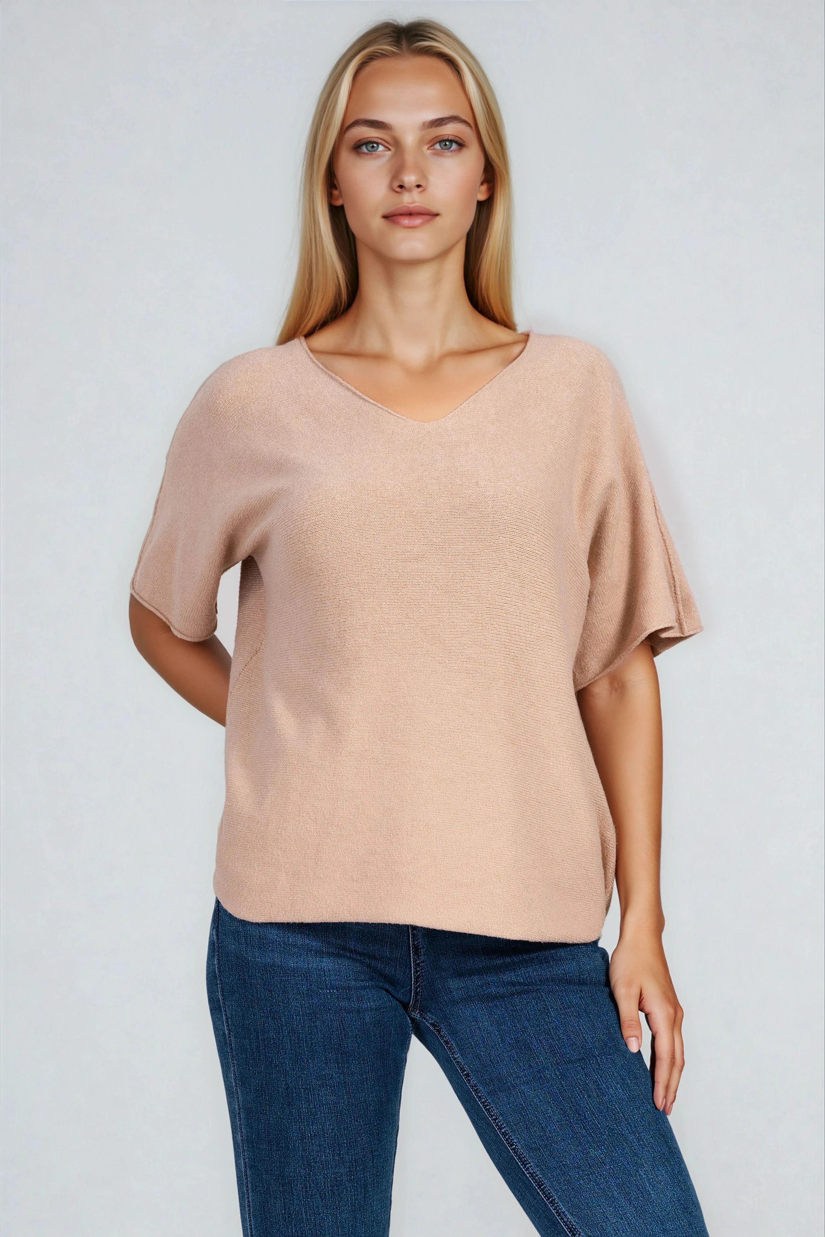 Тази приятна на допир блуза е отличен избор за комфортно и стилно ежедневие. Изработена от фино италианско плетиво, моделът е с паднало рамо, свободна кройка и овално деколте. Бежовият цвят и изчистената линия я правят лесна за съчетаване с дънки или панталон.
