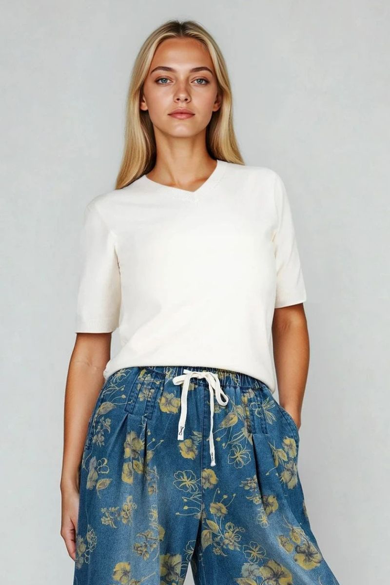 Изработена от меко фино плетиво, тази блуза се отличава с елегантно остро деколте и комфортна кройка. Материята е лека и приятна на допир, подходяща за преходните сезони. Моделът е идеален за ежедневието и може лесно да се комбинира с дънки или панталони за изчистена визия.