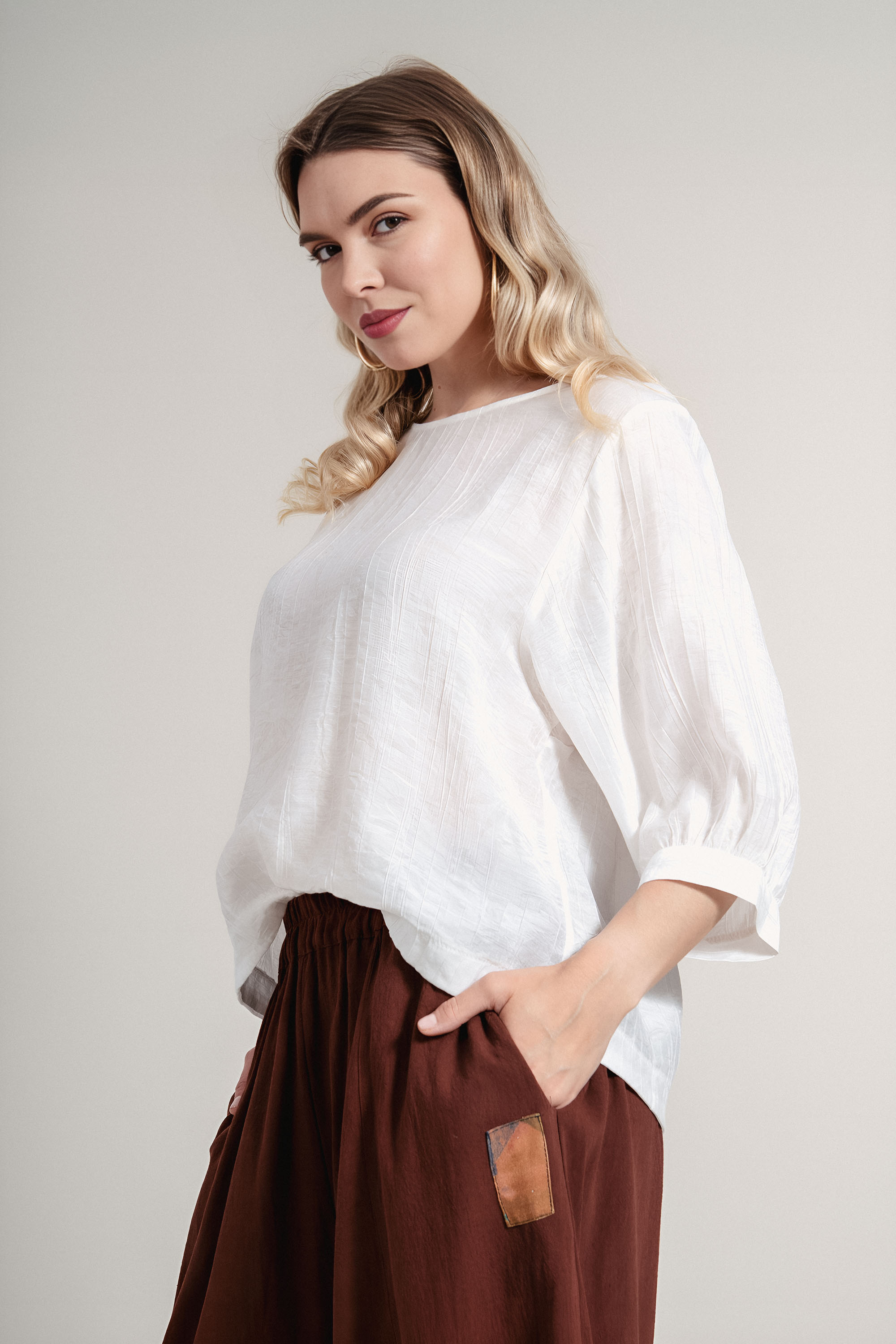 Изработена от лека и дишаща материя с преобладаващ памук, тази блуза е чудесно допълнение към лятната визия. Свободната линия позволява удобно носене в горещите дни. Съчетава се лесно с дънки, панталони или поли.