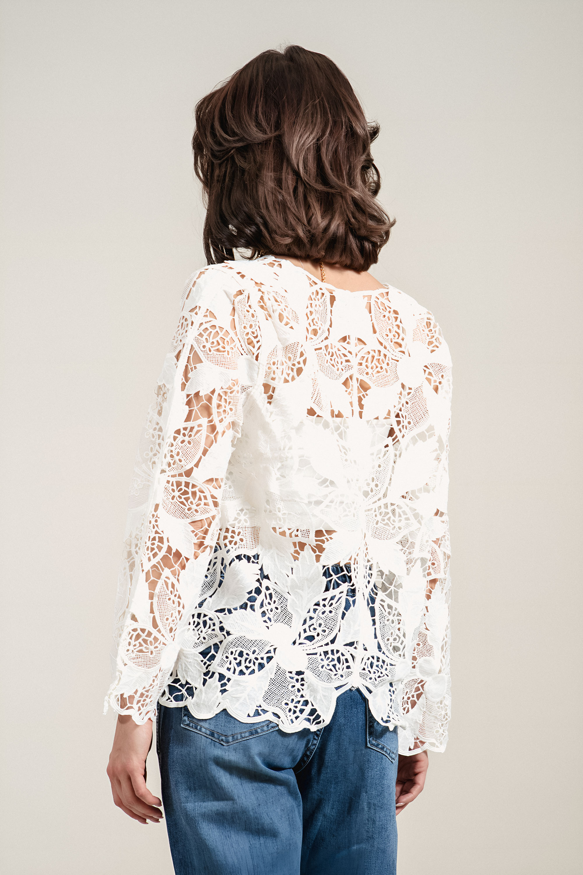 Елегантна туника с модерно излъчване и деликатна бродерия, която създава усещане за лекота и женственост. Материята е приятна на допир, което я прави подходяща за топлите дни. Острото деколте издължава силуета и придава изтънчен вид. Моделът е идеален избор както за ежедневни, така и за по-елегантни визии.