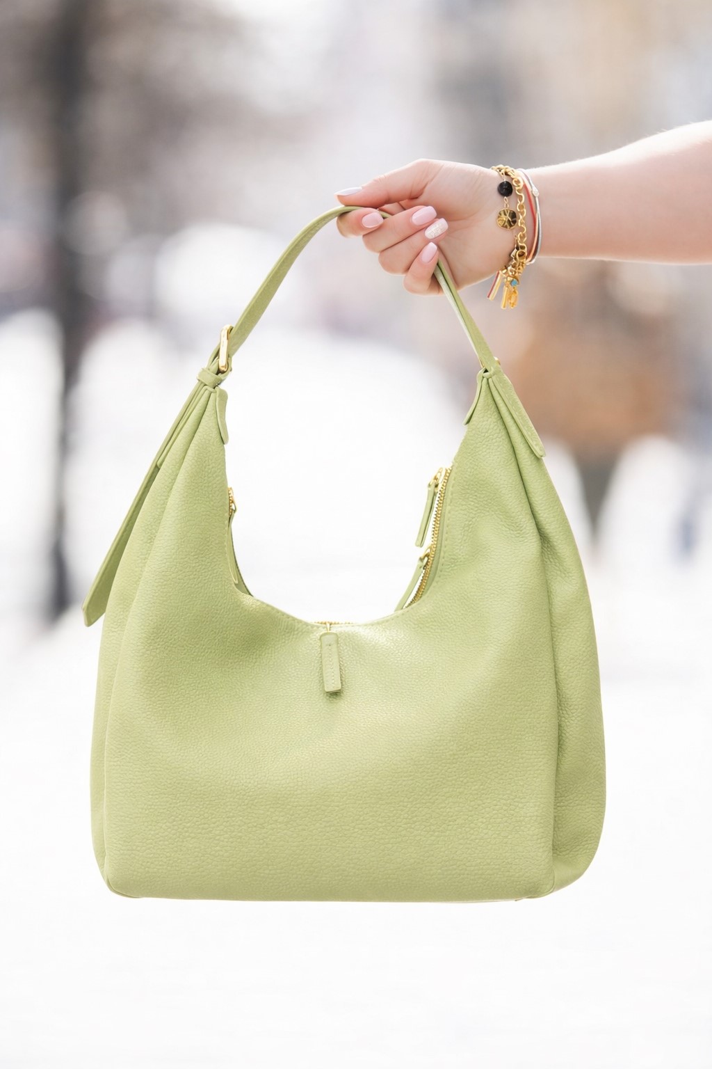 Модерен модел с непринудена елегантност и висока функционалност. Изработена от еко кожа с фина текстура, чантата се отличава с мек силует и удобна форма тип „торба“, която позволява свобода на движение. Регулируемата дръжка осигурява комфорт при носене през рамо, а двата ципа добавят практичност и сигурност. Подходящ избор за ежедневие, работа или пътуване в града