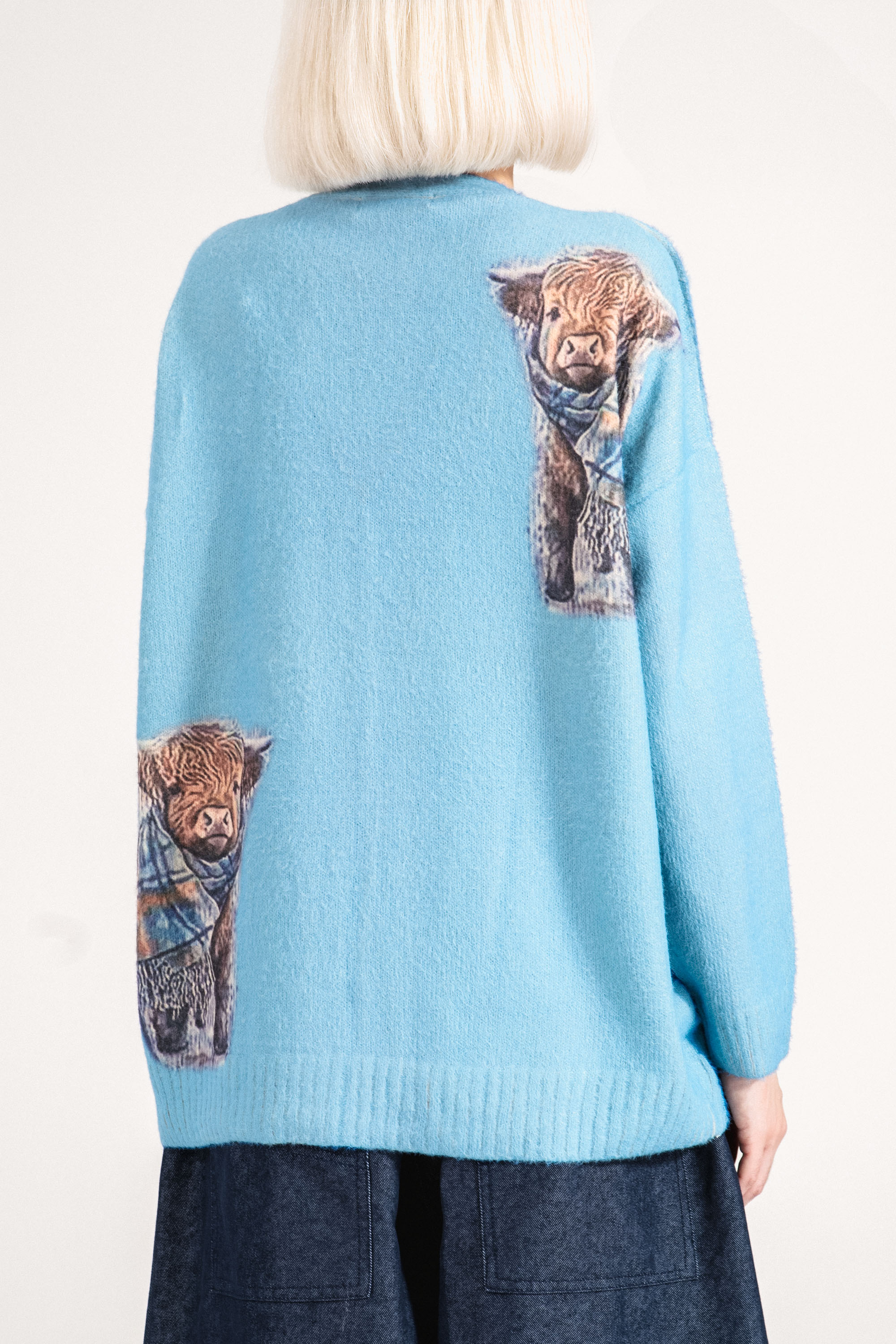 Дамска жилетка от меко плетиво в синьо с животински принт