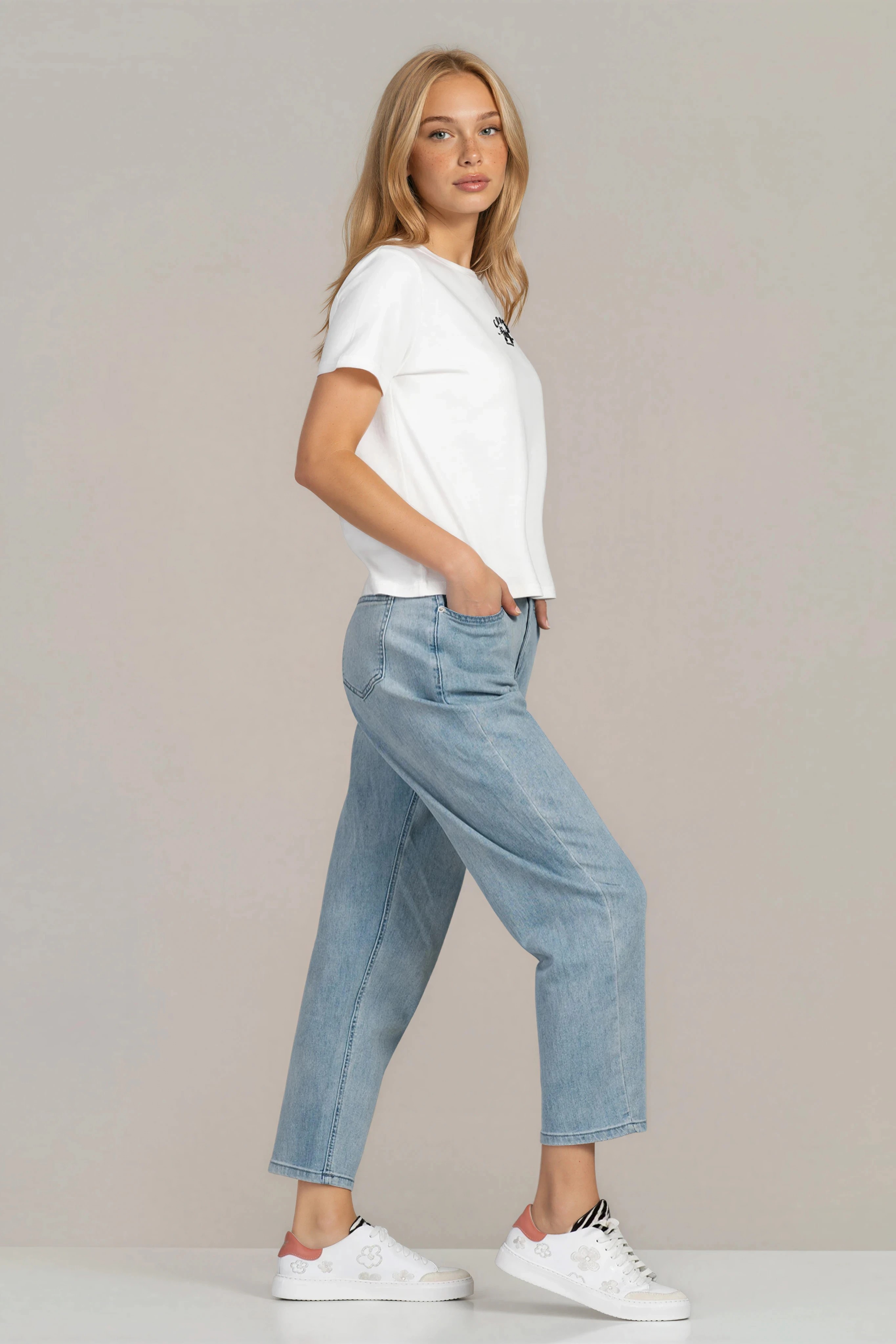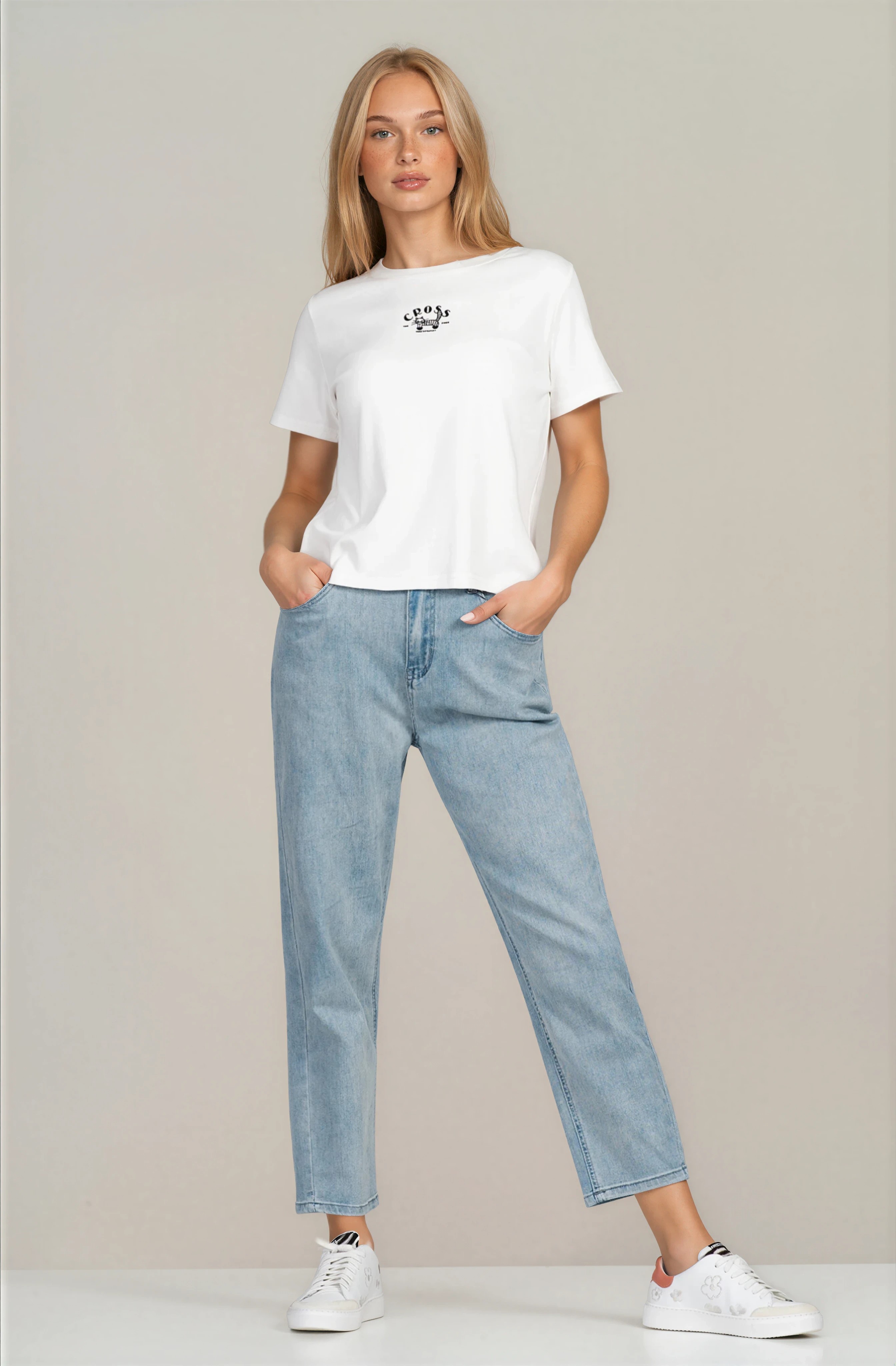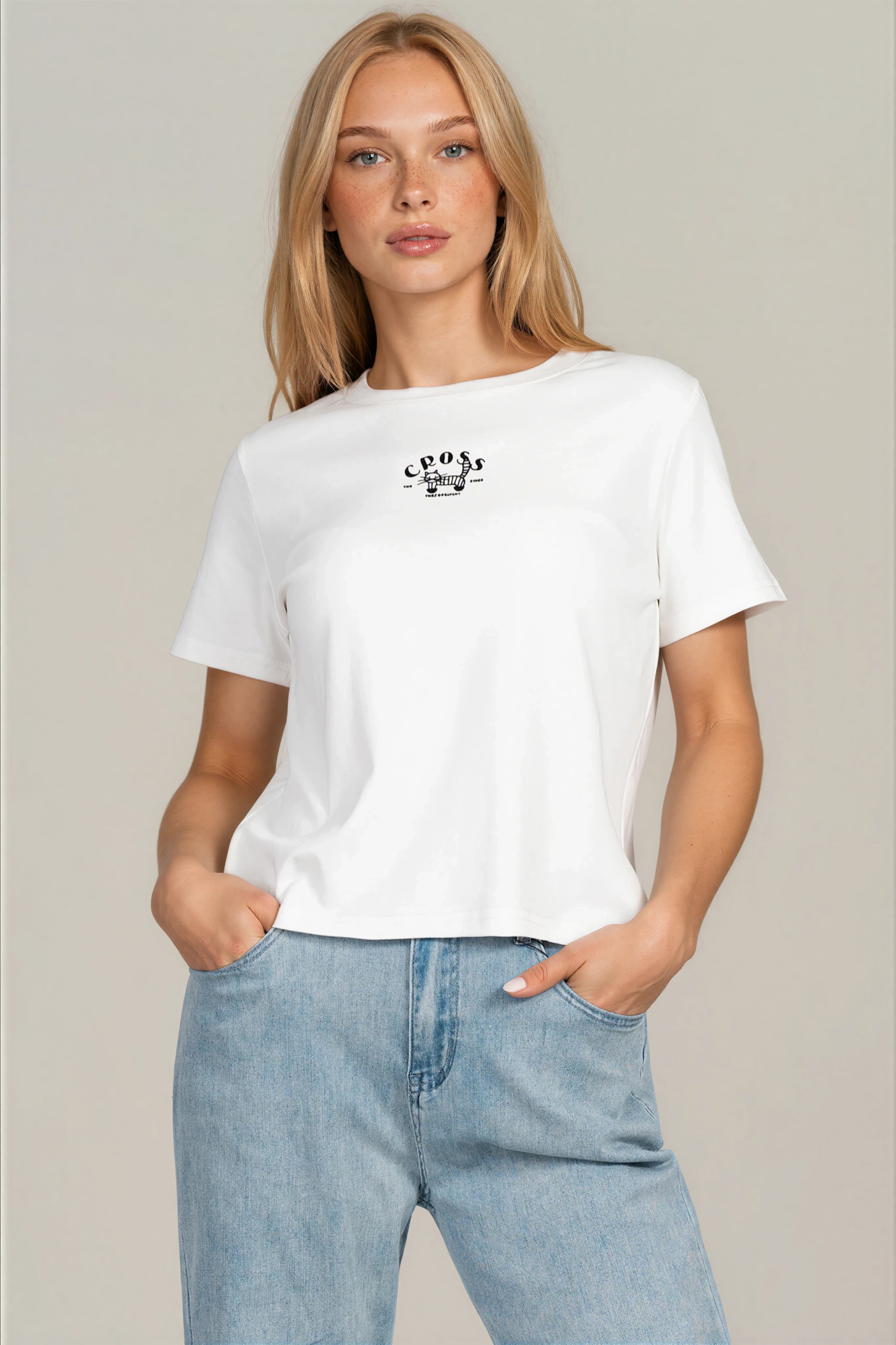 Ежедневна дамска тениска с изчистен дизайн и деликатен акцент с принт. Материята е дишаща и удобна, подходяща за продължително носене. Класическата линия осигурява свобода на движение и универсалност при комбиниране с дънки, панталони или поли. Практичен и стилен избор за динамичното ежедневие.