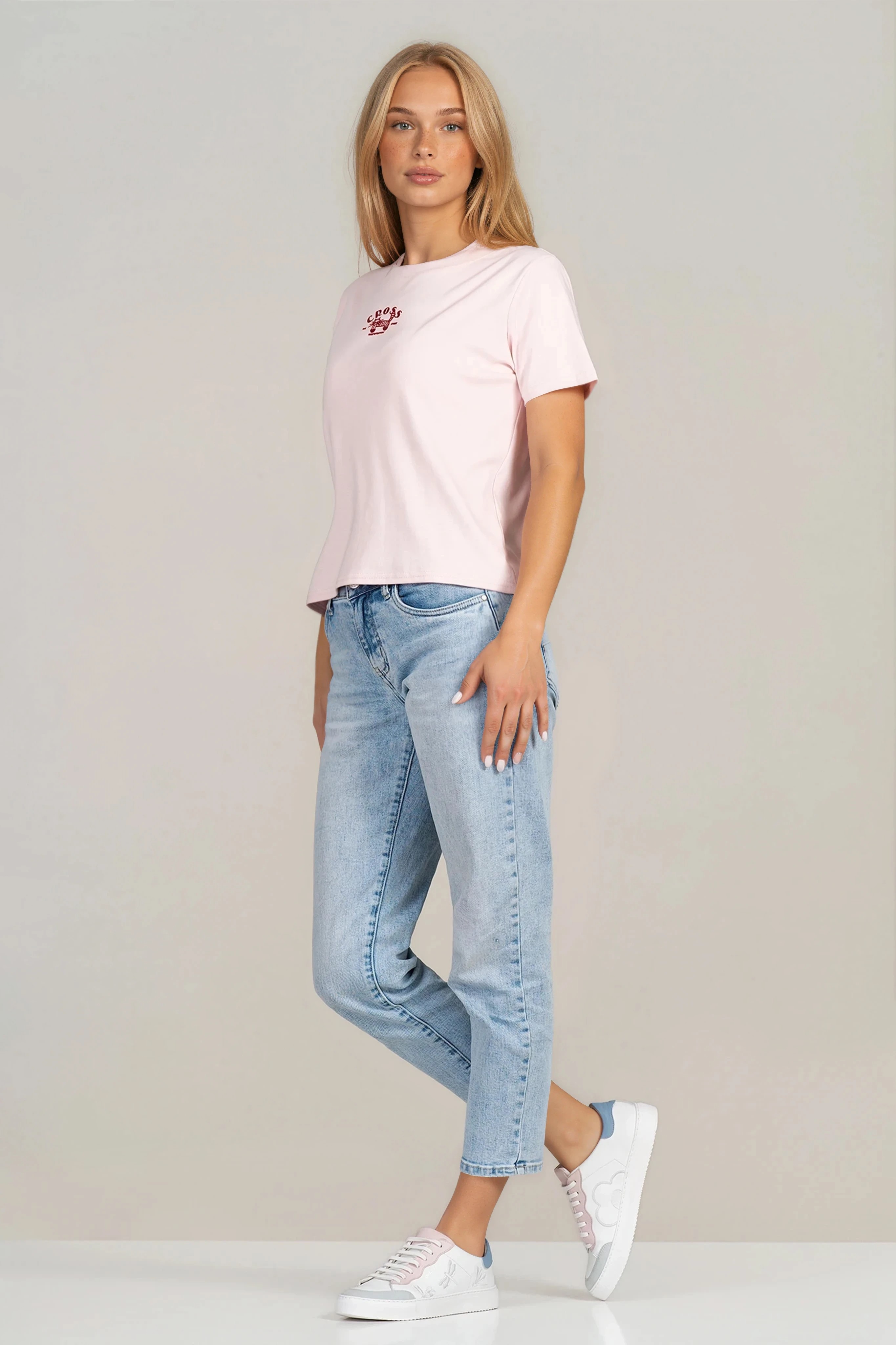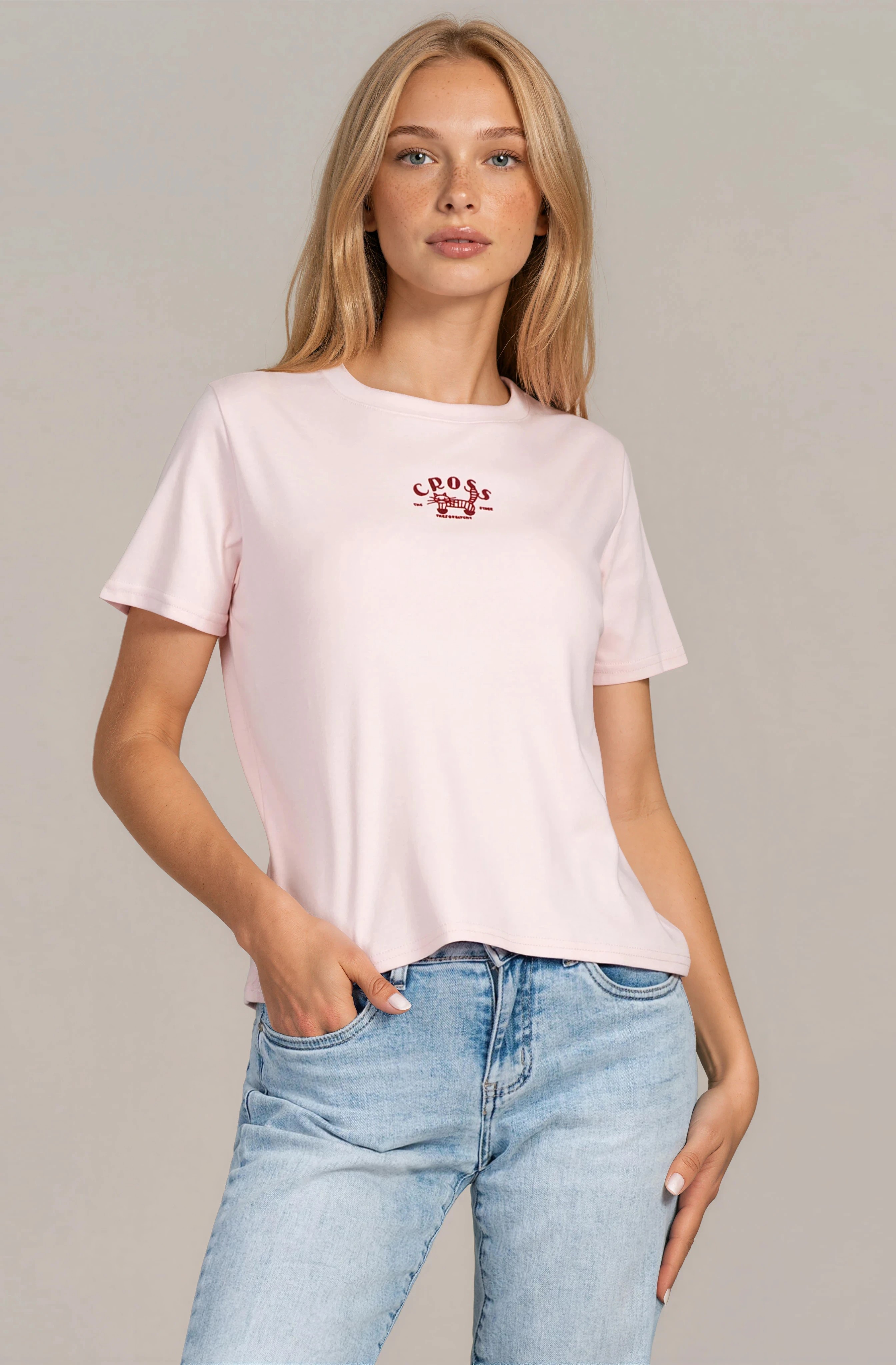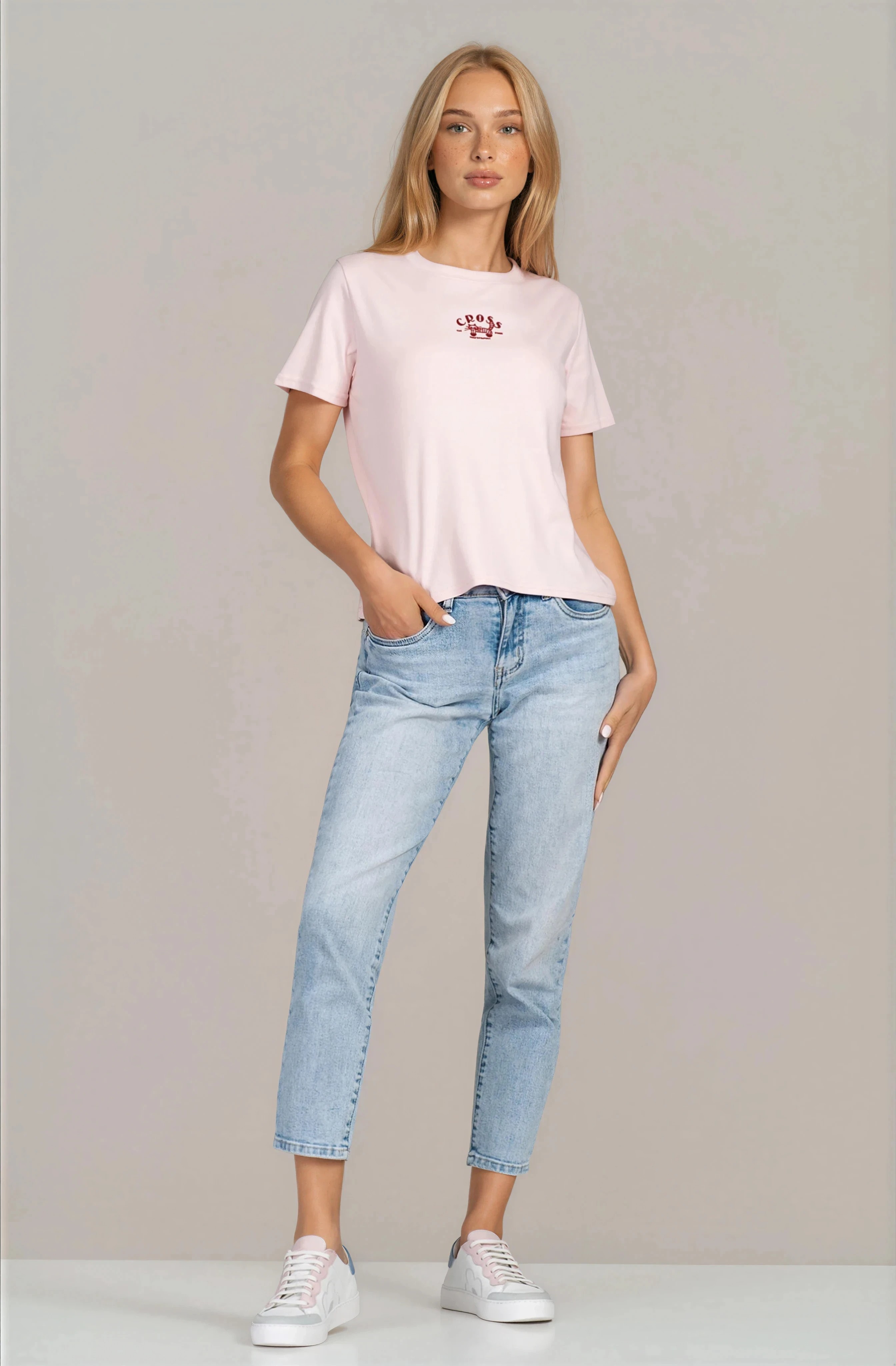 Ежедневна дамска тениска с изчистен дизайн и деликатен акцент с принт. Материята е дишаща и удобна, подходяща за продължително носене. Класическата линия осигурява свобода на движение и универсалност при комбиниране с дънки, панталони или поли. Практичен и стилен избор за динамичното ежедневие.