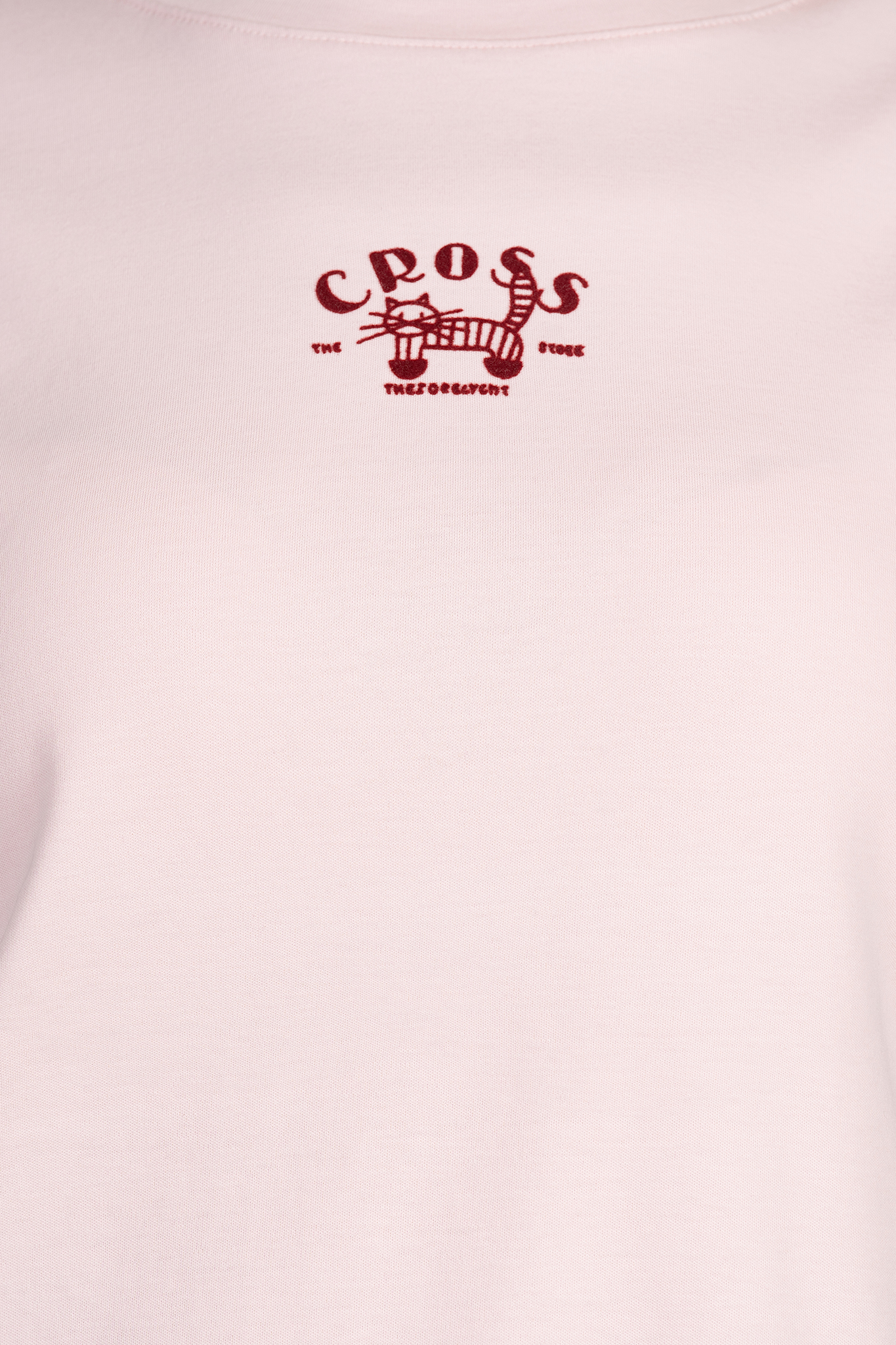 Дамска памучна тениска в розово с минималистична щампа с котка и надпис