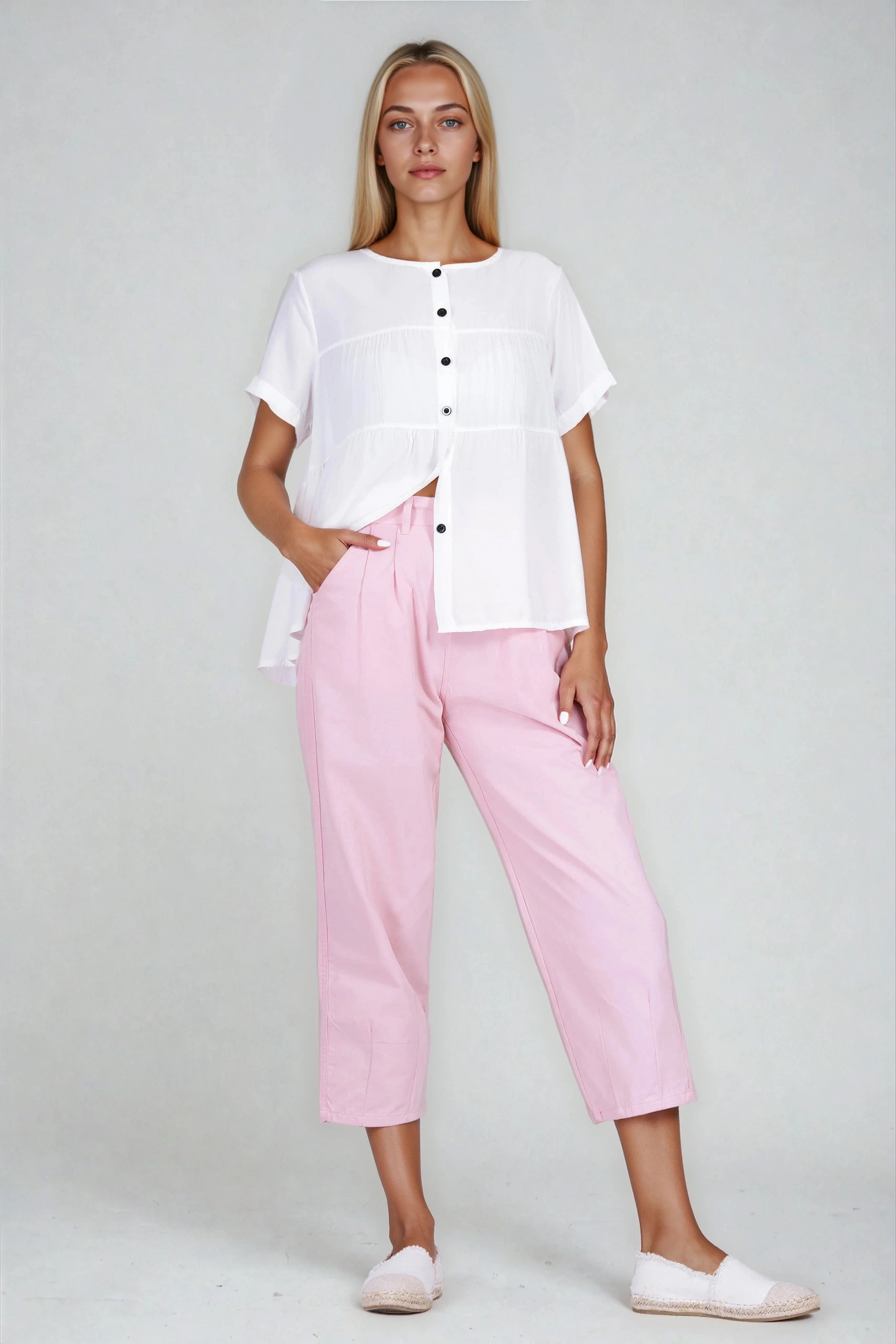 Лека и ефирна, тази бяла туника е създадена за комфорт през топлите месеци. Облото деколте, нежните копчета придават изисканост и свобода на движение. Меката вискозна материя носи усещане за прохлада и е подходяща както за ежедневието, така и за свободното време.
