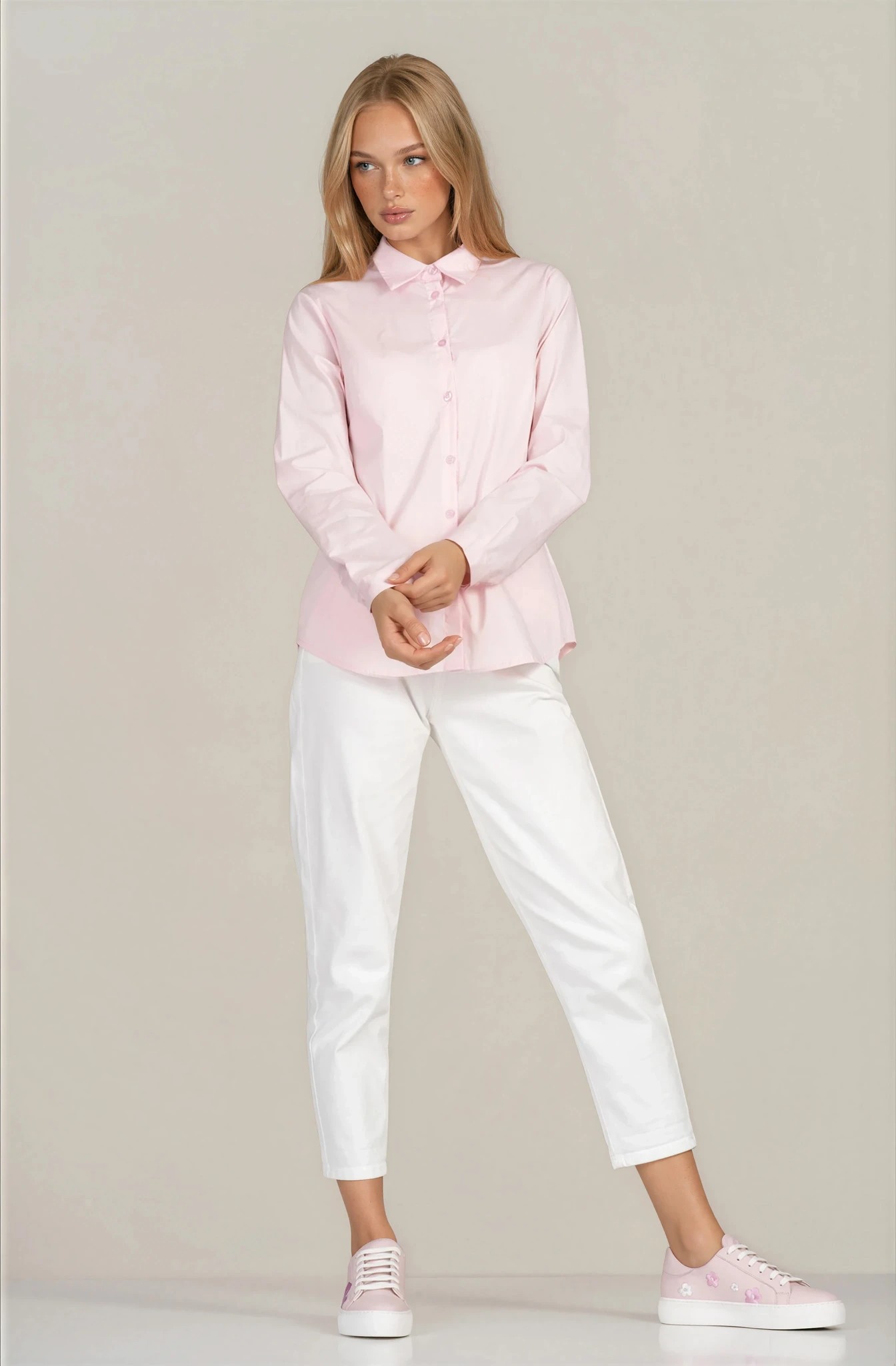 Елегантна и деликатна, тази риза от серията "Dragonfly" впечатлява с изчистен силует и мека цветова гама. Памучната материя осигурява комфорт, а добавеният еластан допринася за по-добро прилягане и свобода на движение. Класическата линия с яка и копчета я прави универсален избор за ежедневни и офис визии. Лесно се комбинира както с деним, така и с по-елегантни елементи за завършен градски стил.