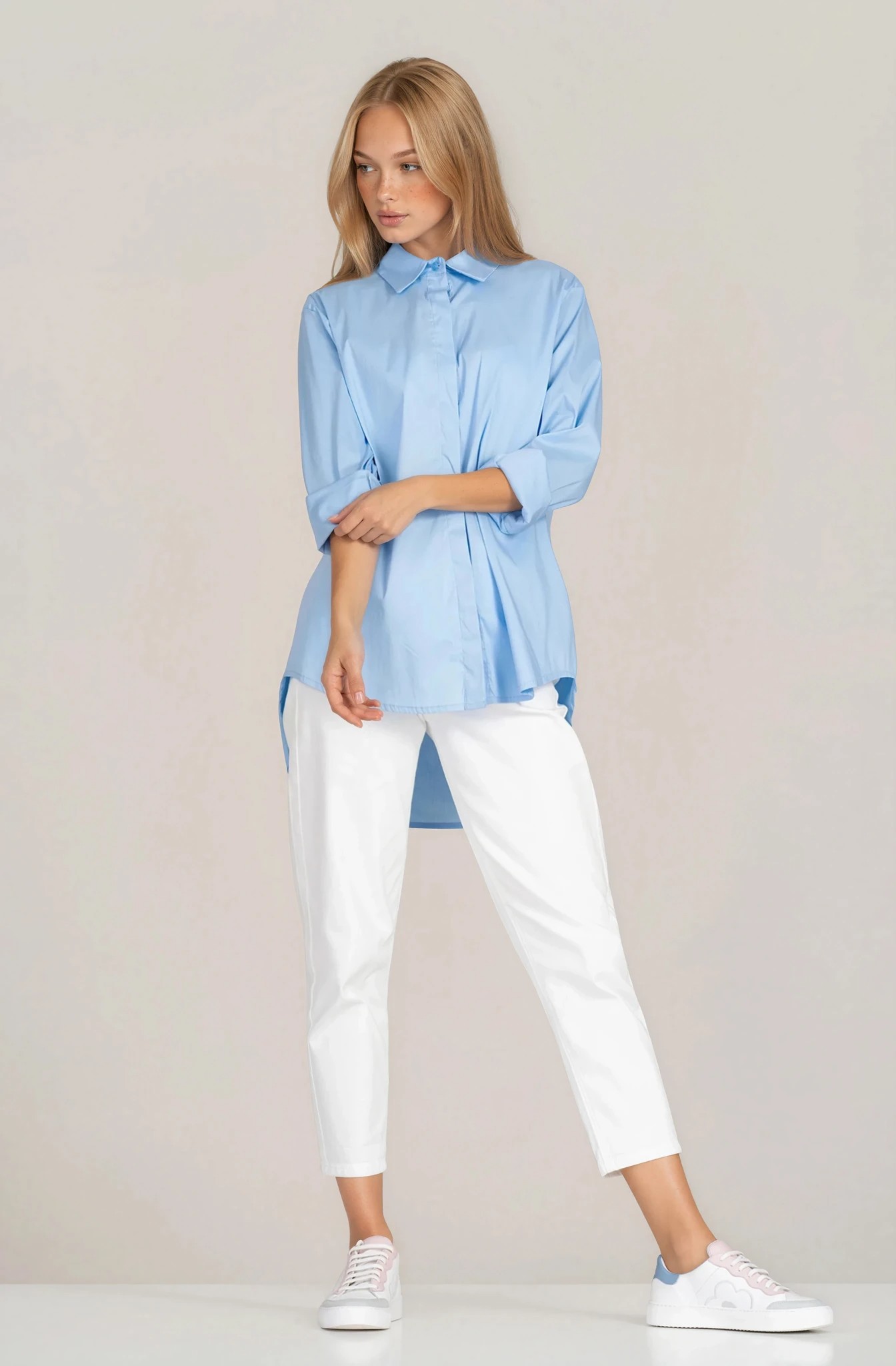 Изчистена и модерна, тази риза от серията "Dragonfly" е създадена за динамичното ежедневие с нотка на градски шик. Памучната материя осигурява комфорт, а добавеният еластан придава лека еластичност и свобода на движение. Скритото закопчаване подчертава минималистичната визия, докато издълженият гръб добавя стилен акцент и по-добро покритие. Подходящ избор както за офис визии, така и за небрежни комбинации.