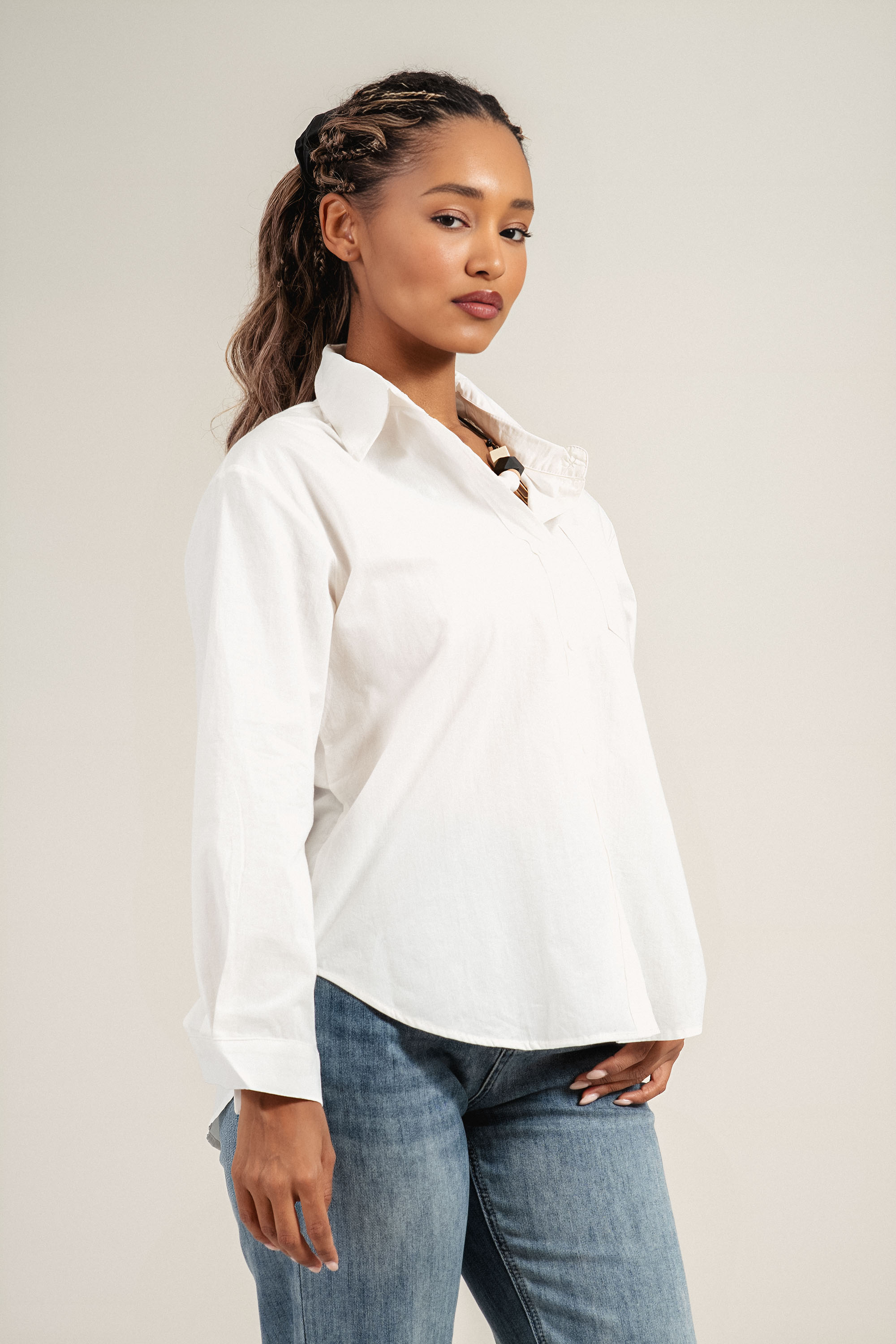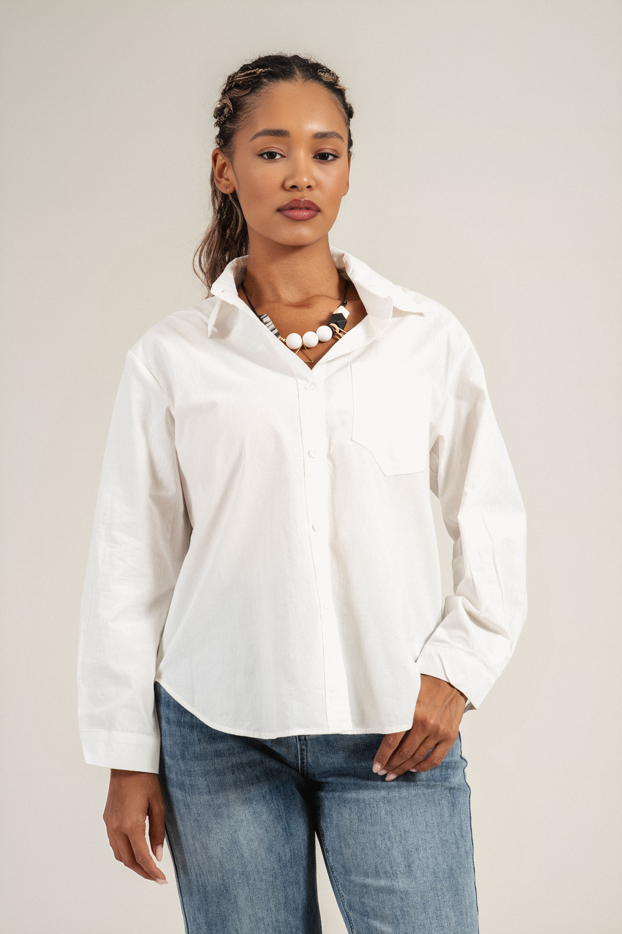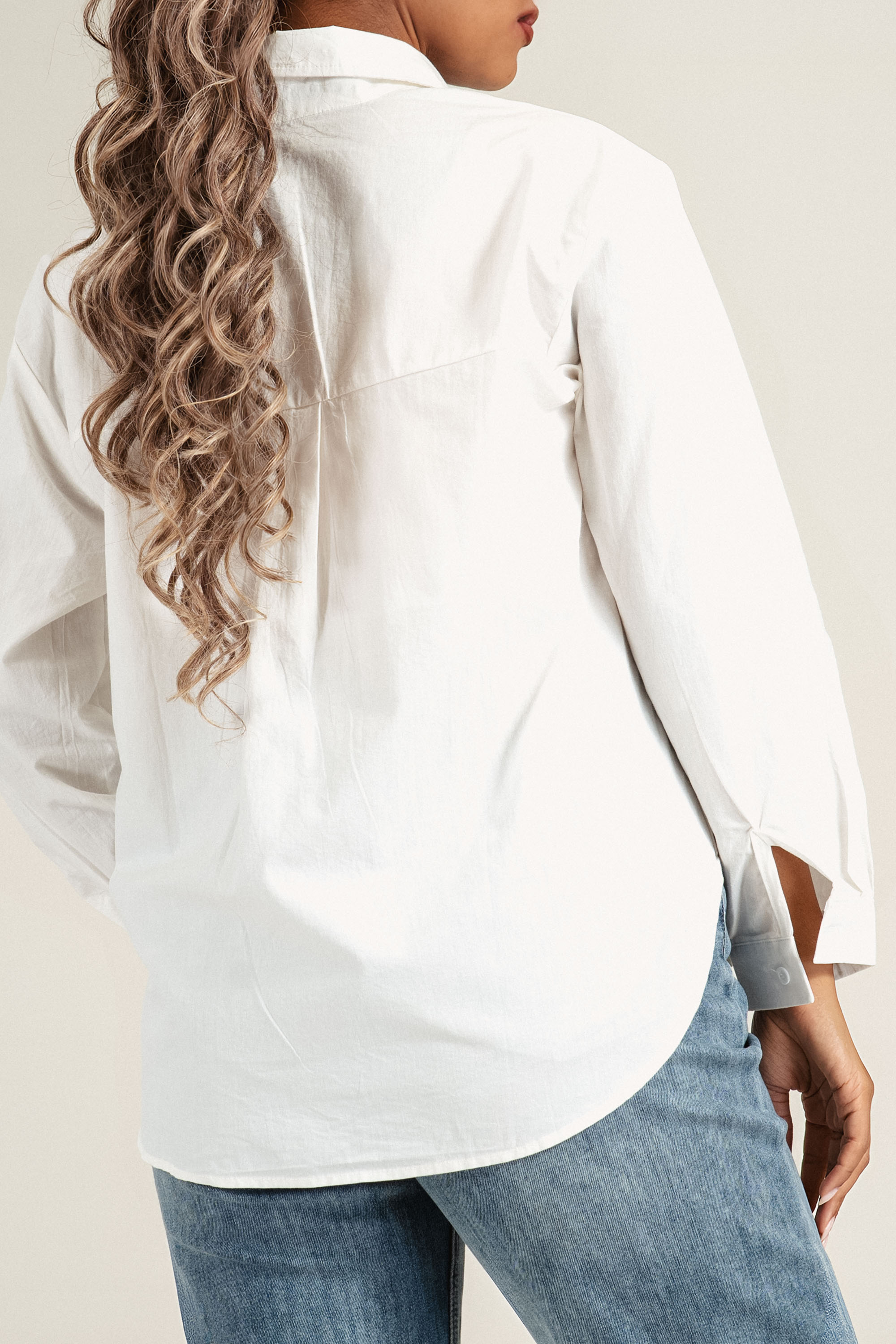 Особености: Закопчаване с копчета, един джоб на гърдите, дълъг ръкав с копче в края, оувърсайз модел, заоблени краища