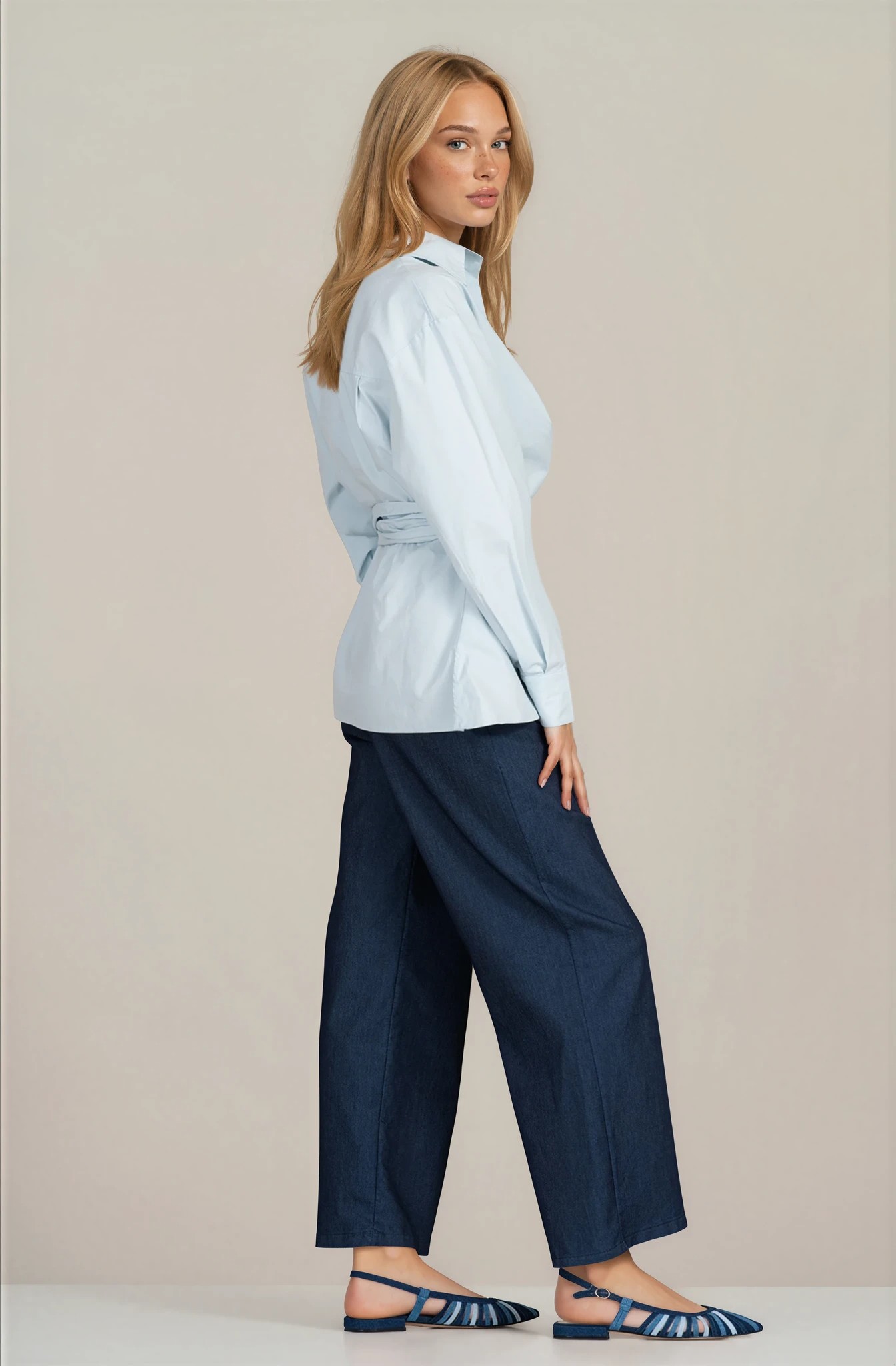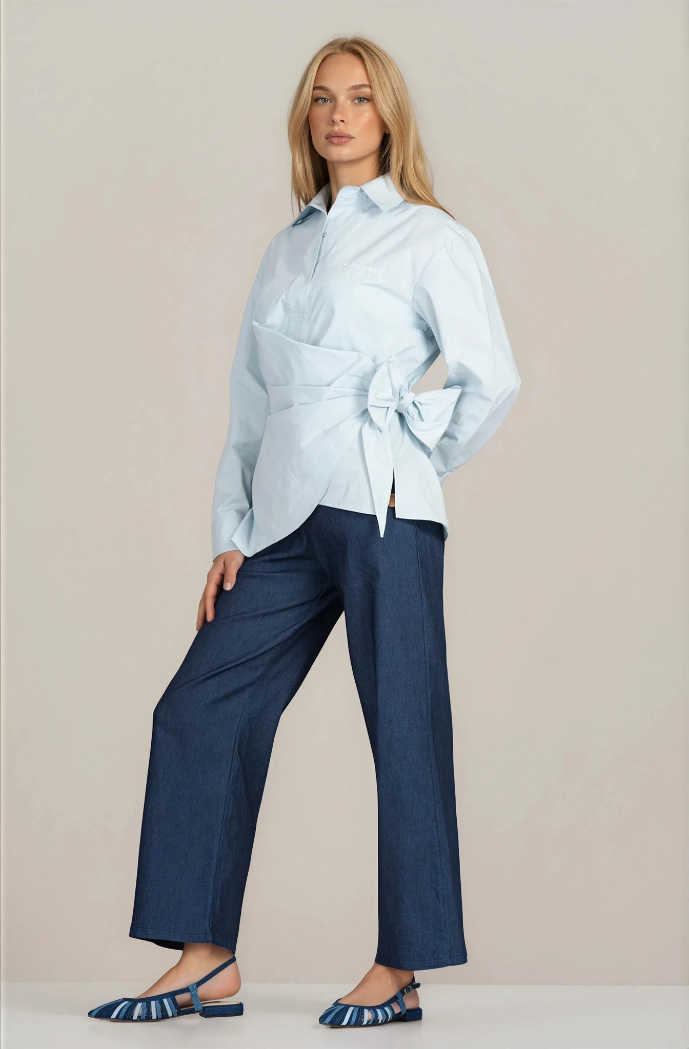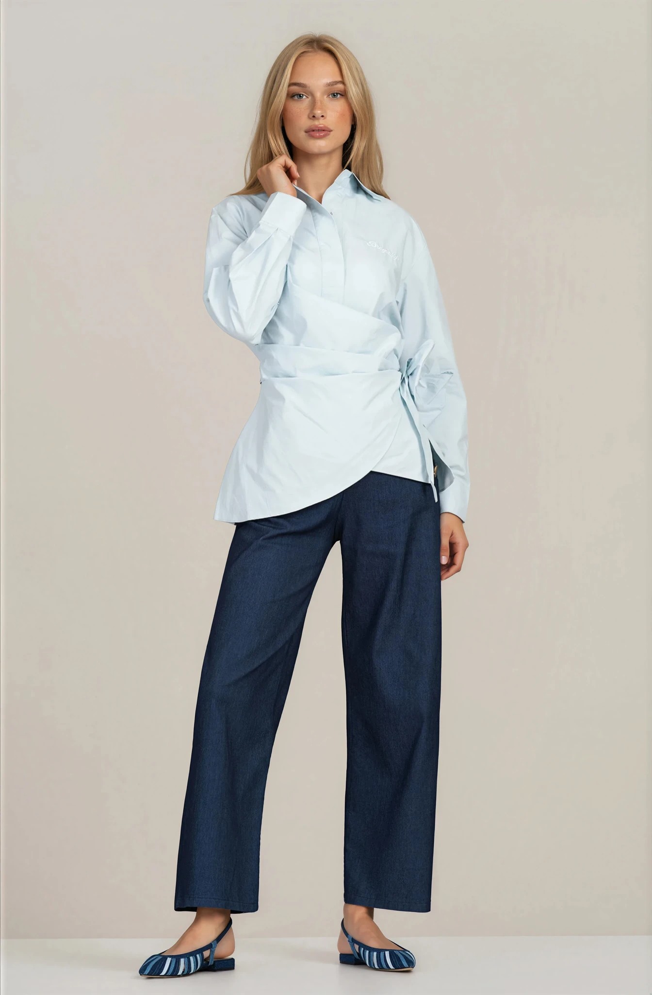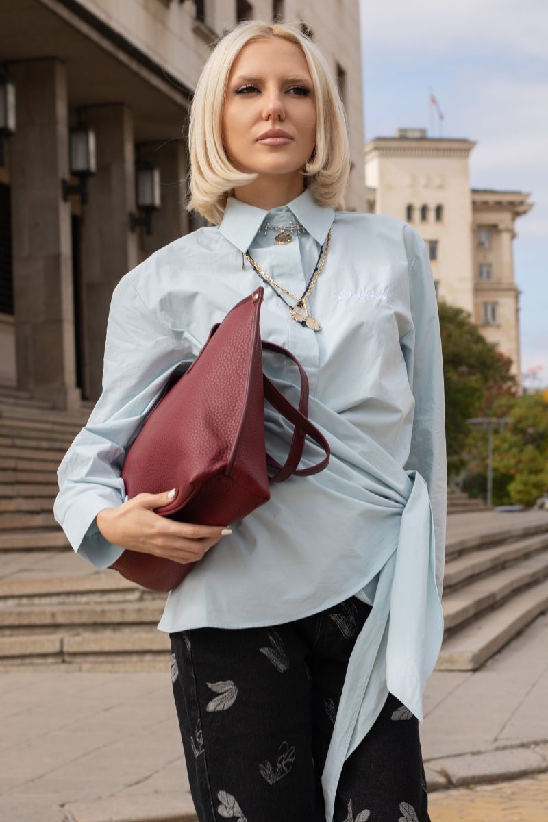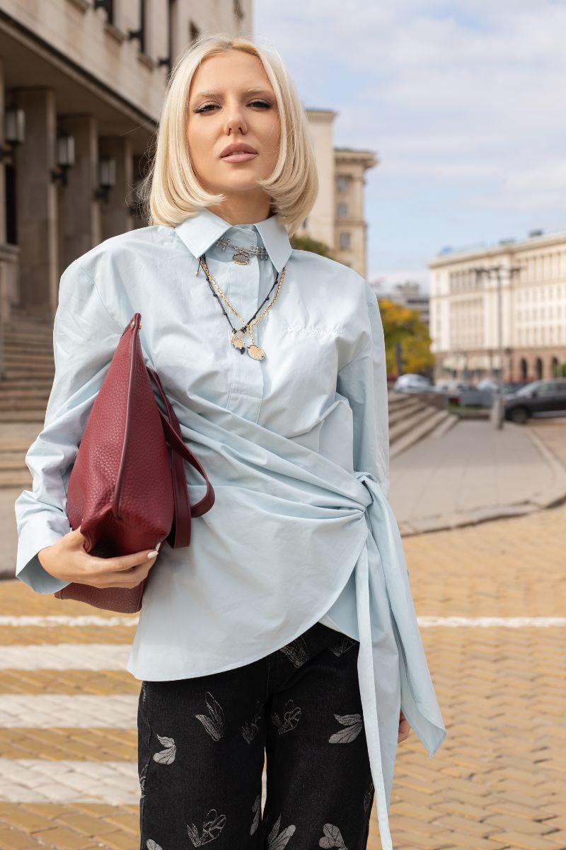 Дамска светлосиня памучна риза ''Dragonfly'' с ефектно завързване