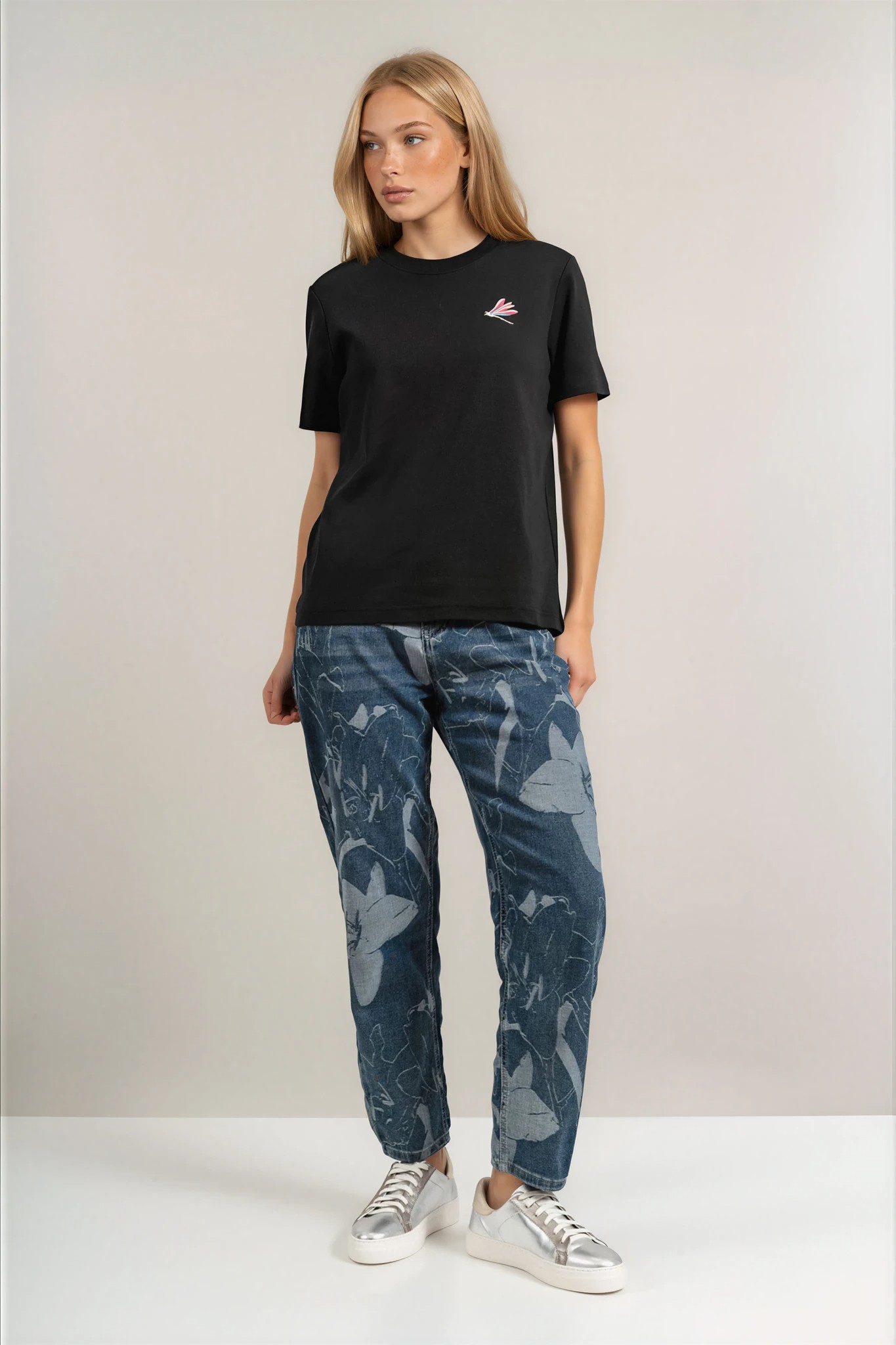 Тази тениска от колекция "Dragonfly" се отличава със стилна изчистена линия и впечатляващи бродерии отпред и на гърба. Меката материя от органичен памук осигурява естествен комфорт, а свободната кройка подчертава модерната непринуденост. Перфектна за градски стил и ежедневни комбинации с деним. Произведена специално за GANG с внимание към всеки детайл.