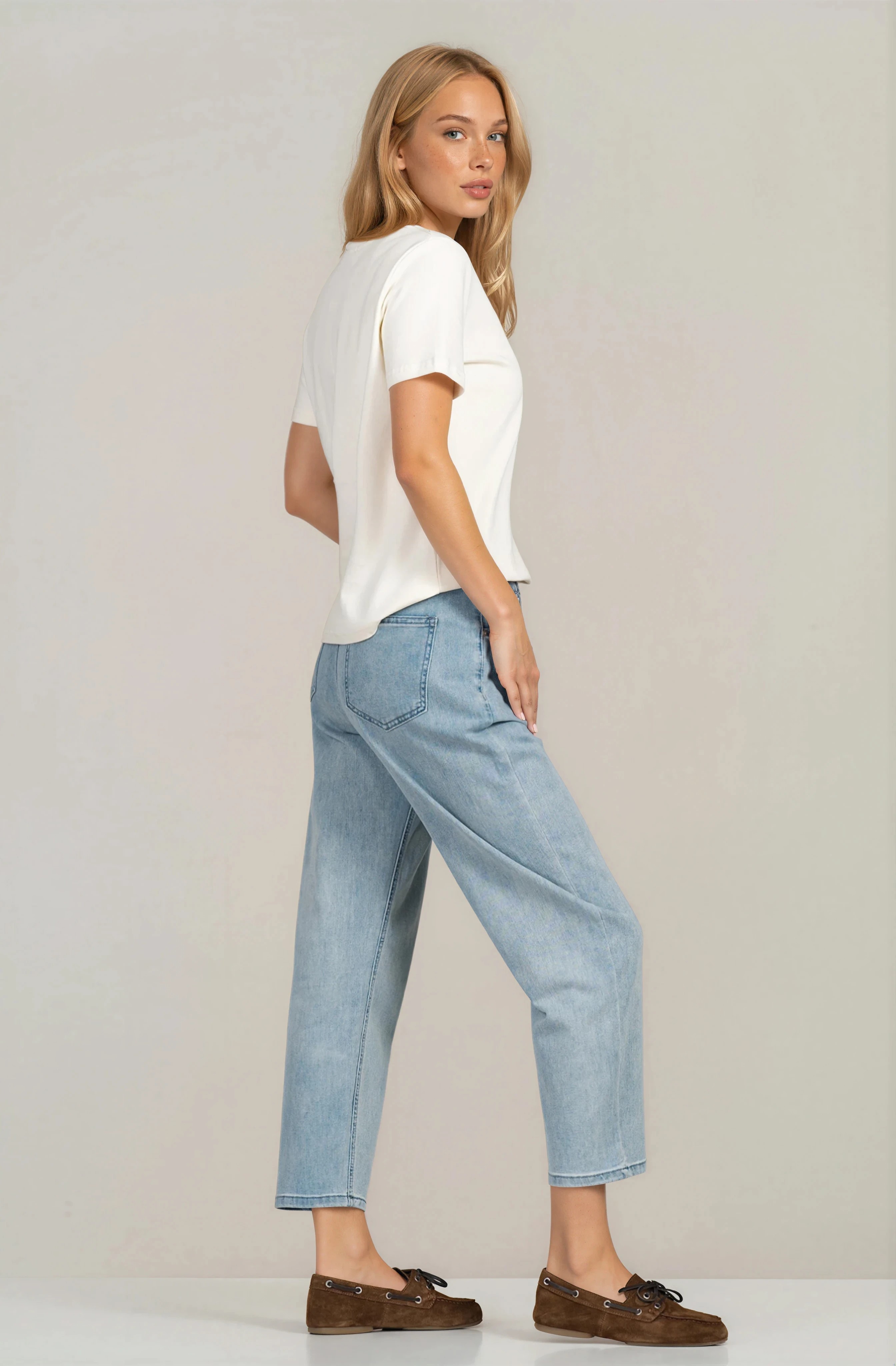 Свежа дамска тениска в светложълт нюанс с деликатен надпис, която носи леко и позитивно излъчване. Памучната материя е мека, дишаща и подходяща за ежедневно носене през топлите дни. Класическата кройка с обло деколте осигурява удобство и лесно комбиниране с различни визии. Идеален избор за небрежен градски стил.
