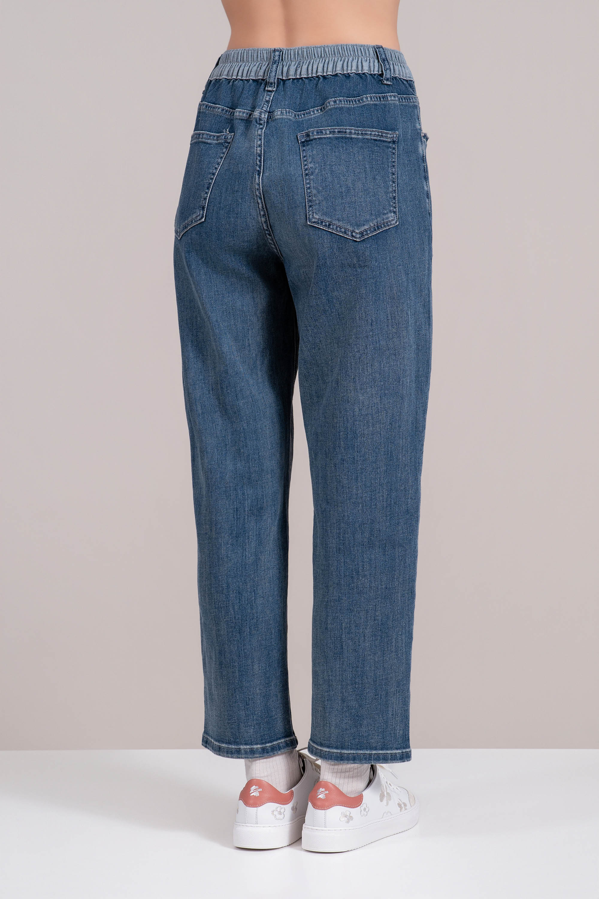 Меки и удобни дънки в класически син цвят, съчетани със сива ластична талия за модерен акцент и повече комфорт. Бойфренд силуетът осигурява лекота при носене и подчертава небрежната елегантност. Подходящи за пролет, есен и всяко ежедневно излизане.