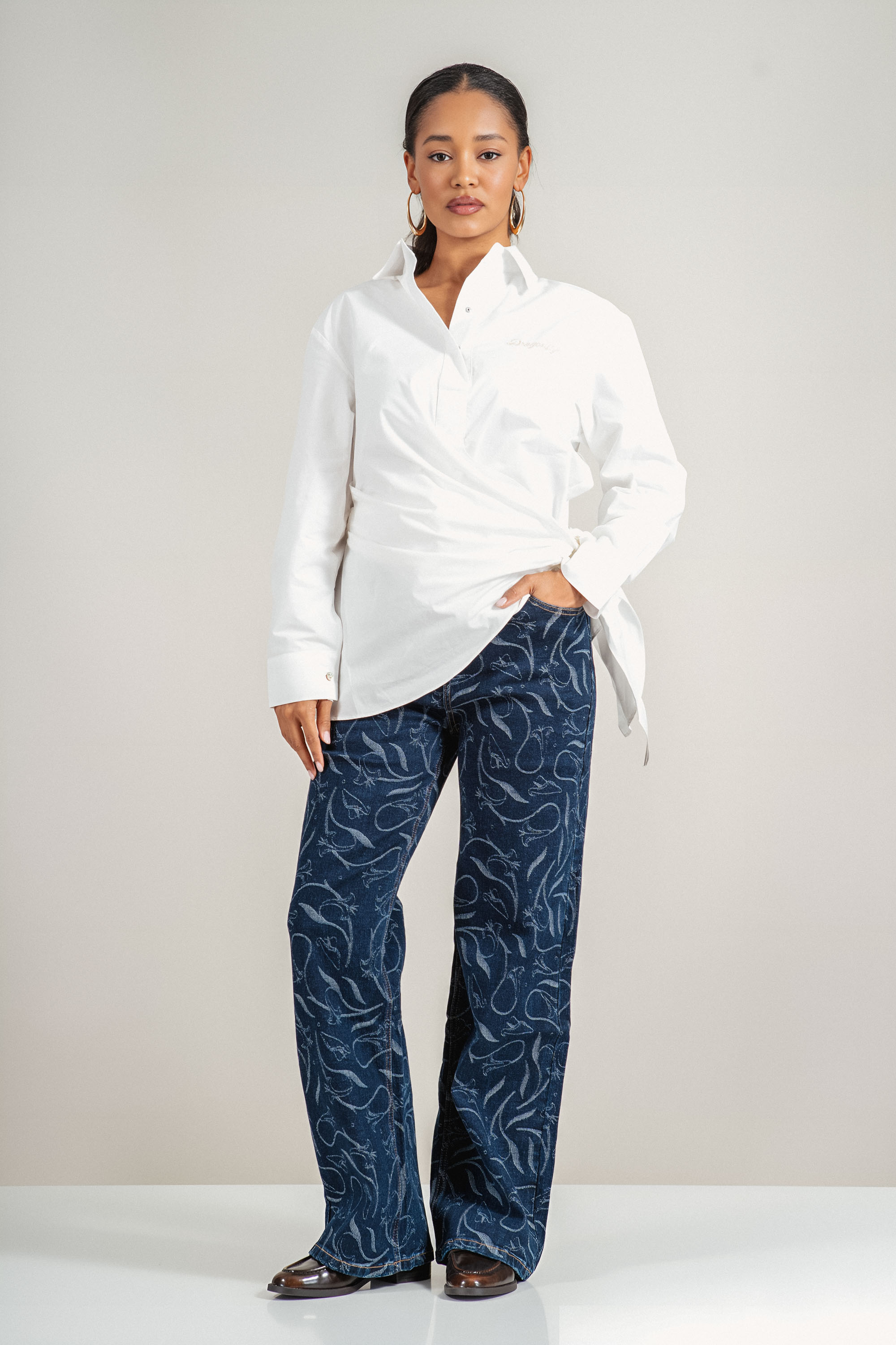 Тези дънки от серията "Dragonfly" впечатляват с модерен силует и детайлна визия. Изработени от висококачествен памук с добавен еластан, те осигуряват комфорт и гъвкавост при движение. Моделът е с класически син цвят, украсен със светли цветя, които добавят деликатен акцент. Перфектен избор за градски аутфит през зимата.