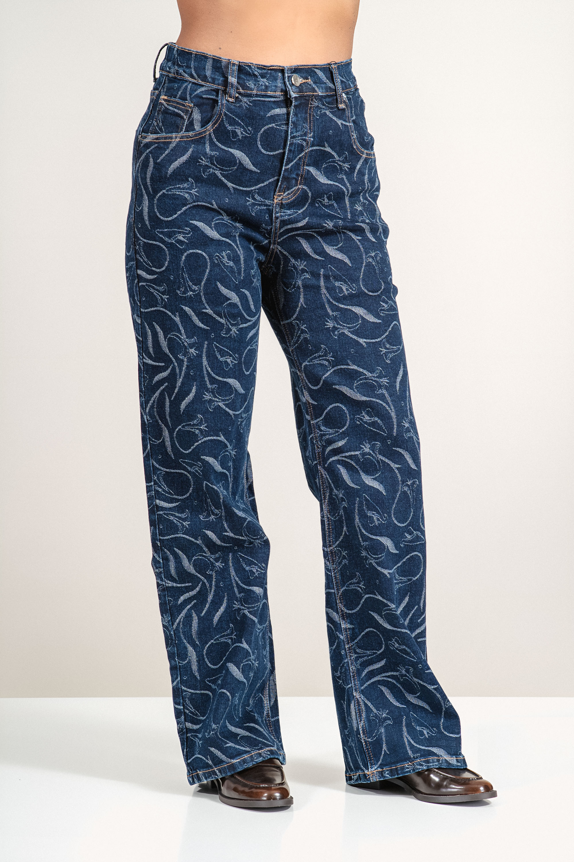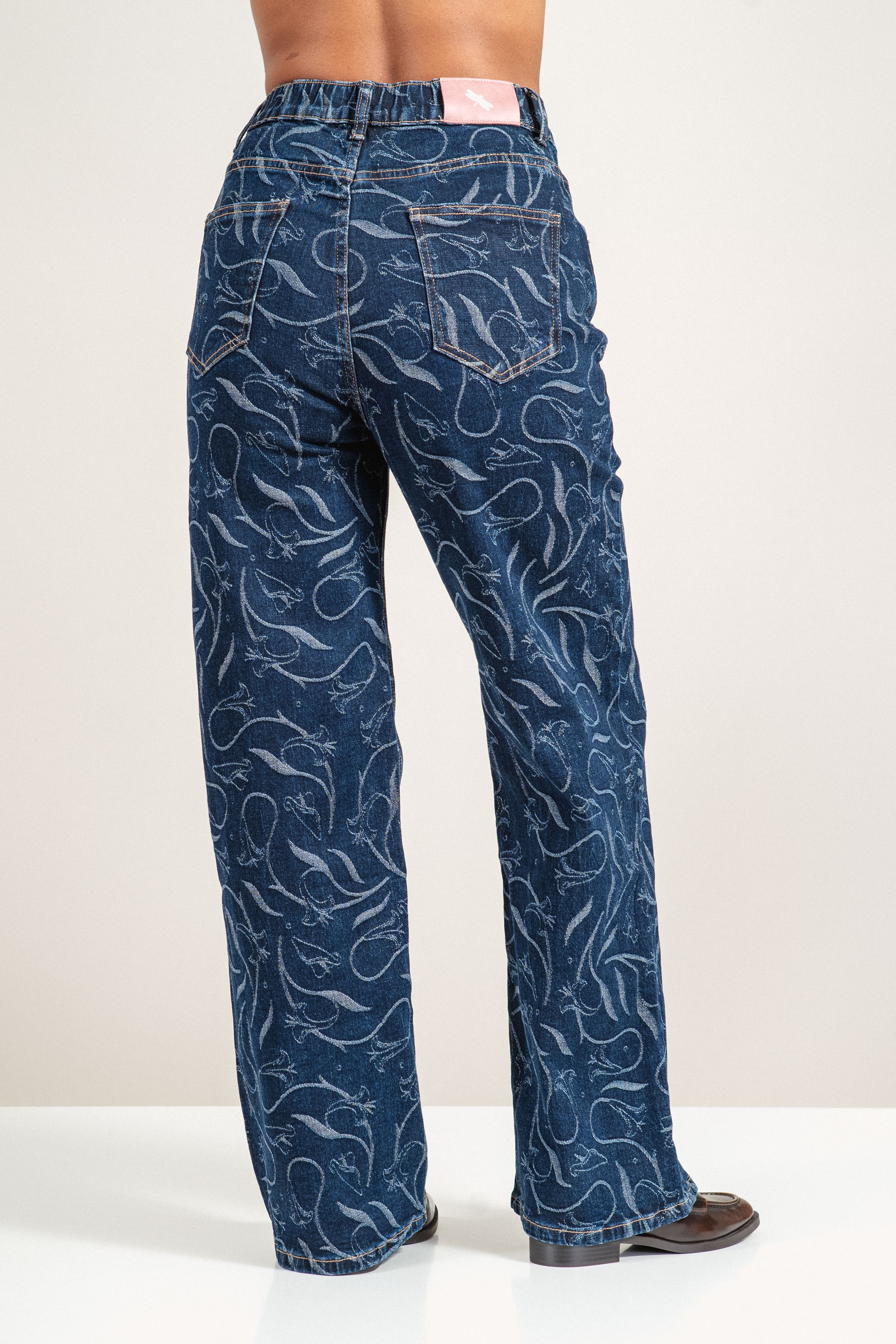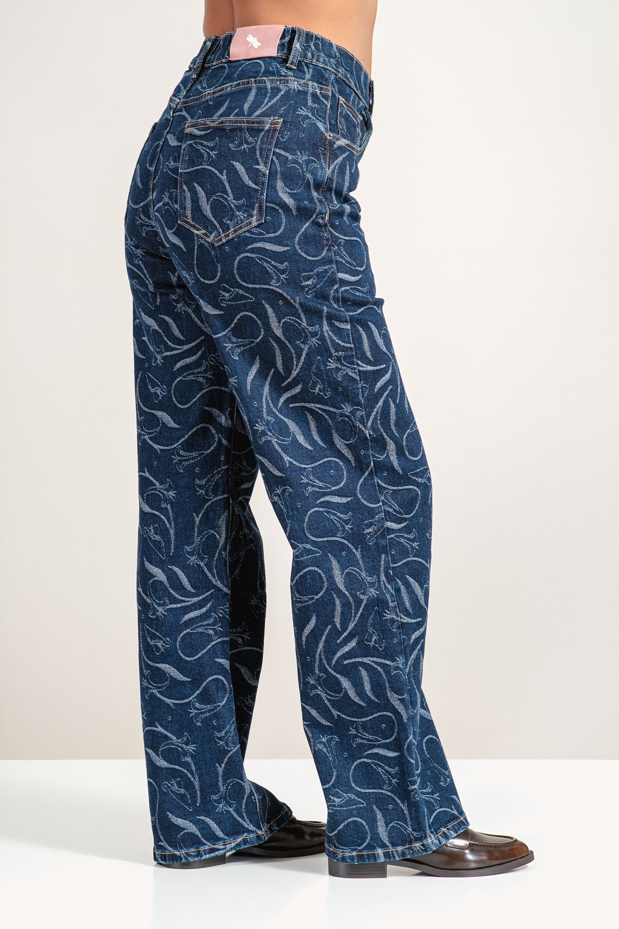 Дамски дънки "Dragonfly" в тъмносиньо със светъл флорален принт