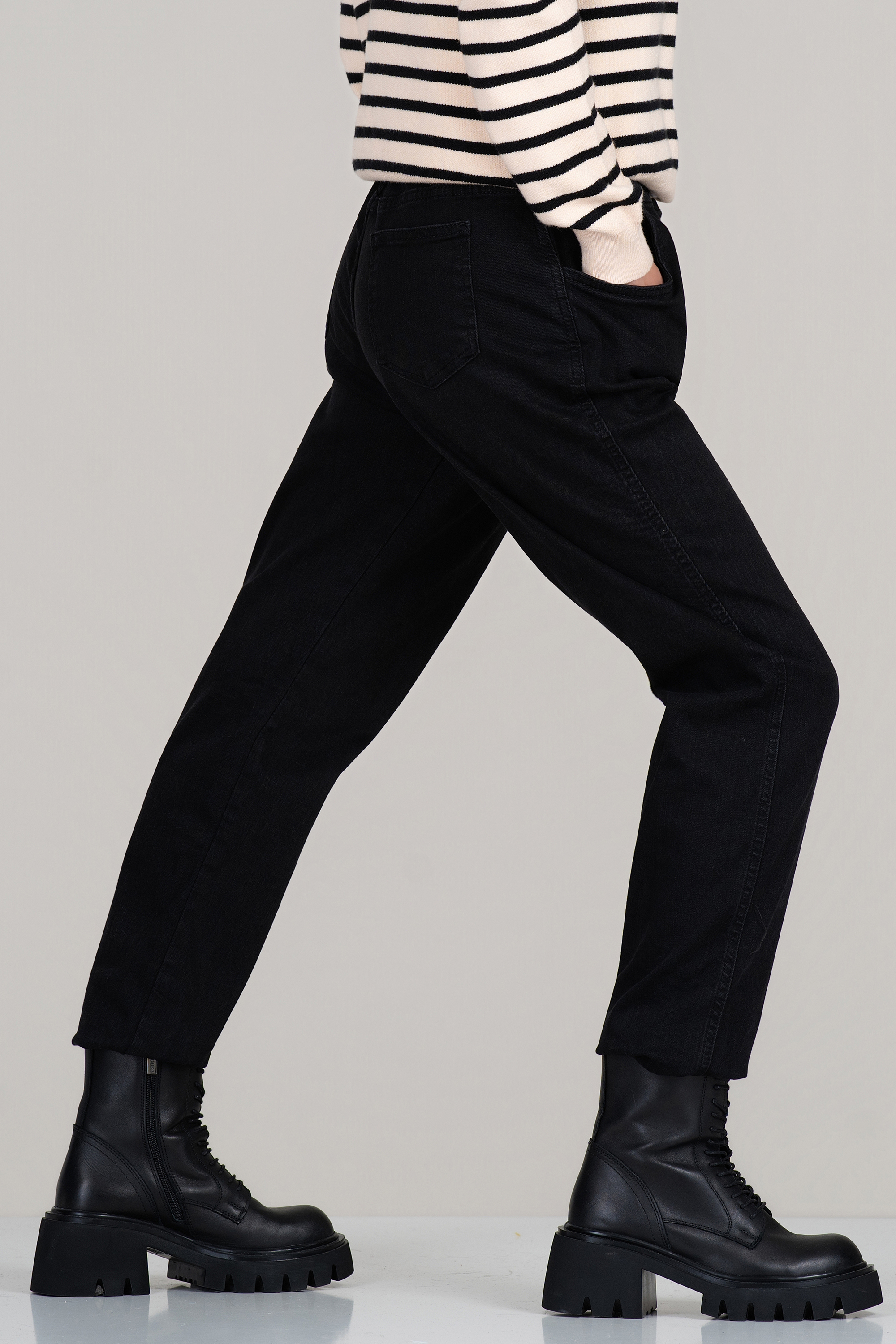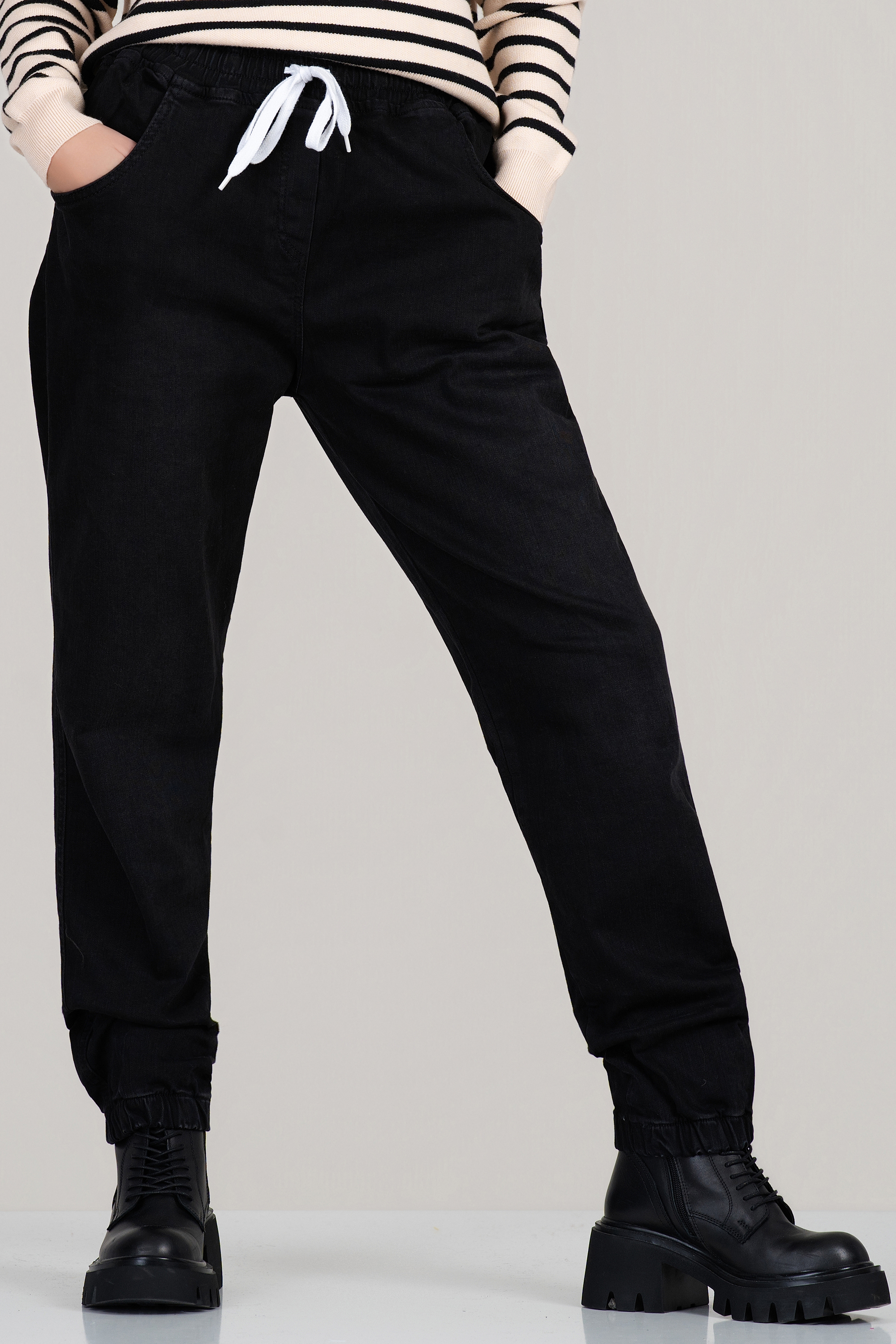 Мека материя, комфортна талия с ластик и елегантен прав силует – това са отличителните черти на този модел дънки. Черният деним придава завършеност на визията, докато белите връзки добавят лек акцент. Перфектен избор за натоварен градски ритъм и комфорт през целия де