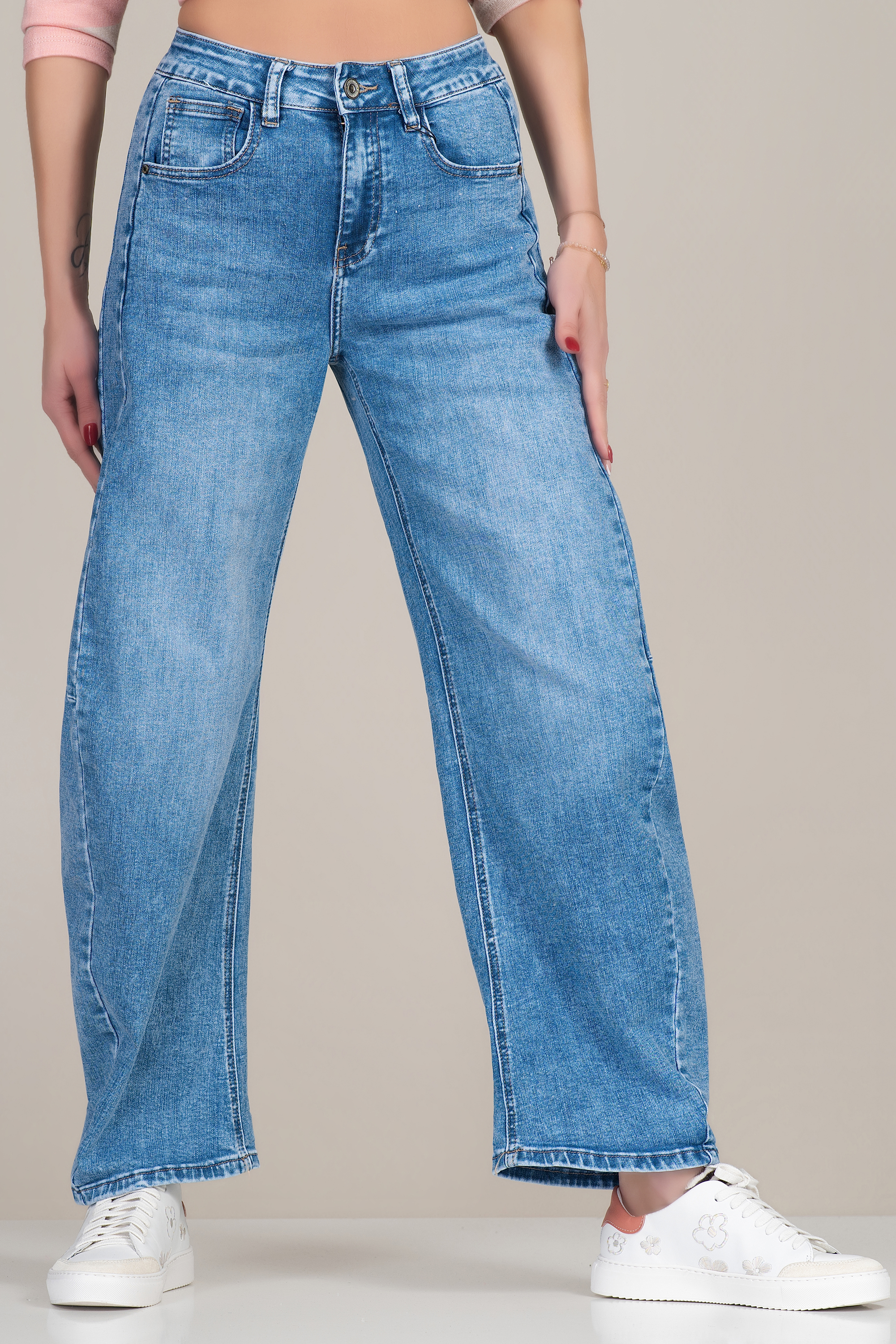 Стилни дънки със свободно падащ широк силует, който издължава оптически краката и придава балансирана линия на фигурата. Денимът е мек на допир и устойчив при носене, а леката еластичност гарантира удобство през целия ден. Класическите джобове и изчистеният дизайн позволяват лесно комбиниране както с риза и сако, така и с тениска за по-непринудена визия. Универсален модел за динамичното ежедневие.