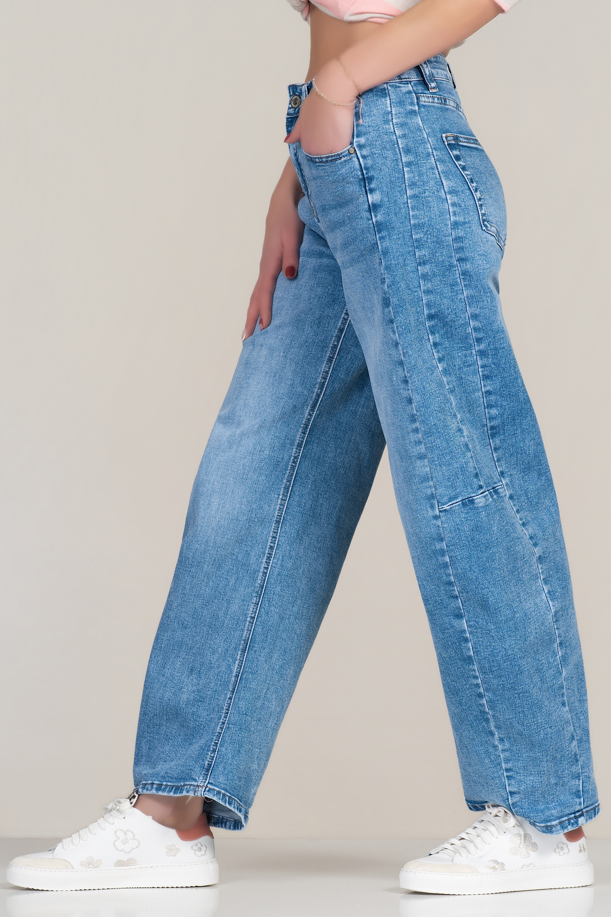 Дамски дънки в син цвят с широк силует и стандартна талия