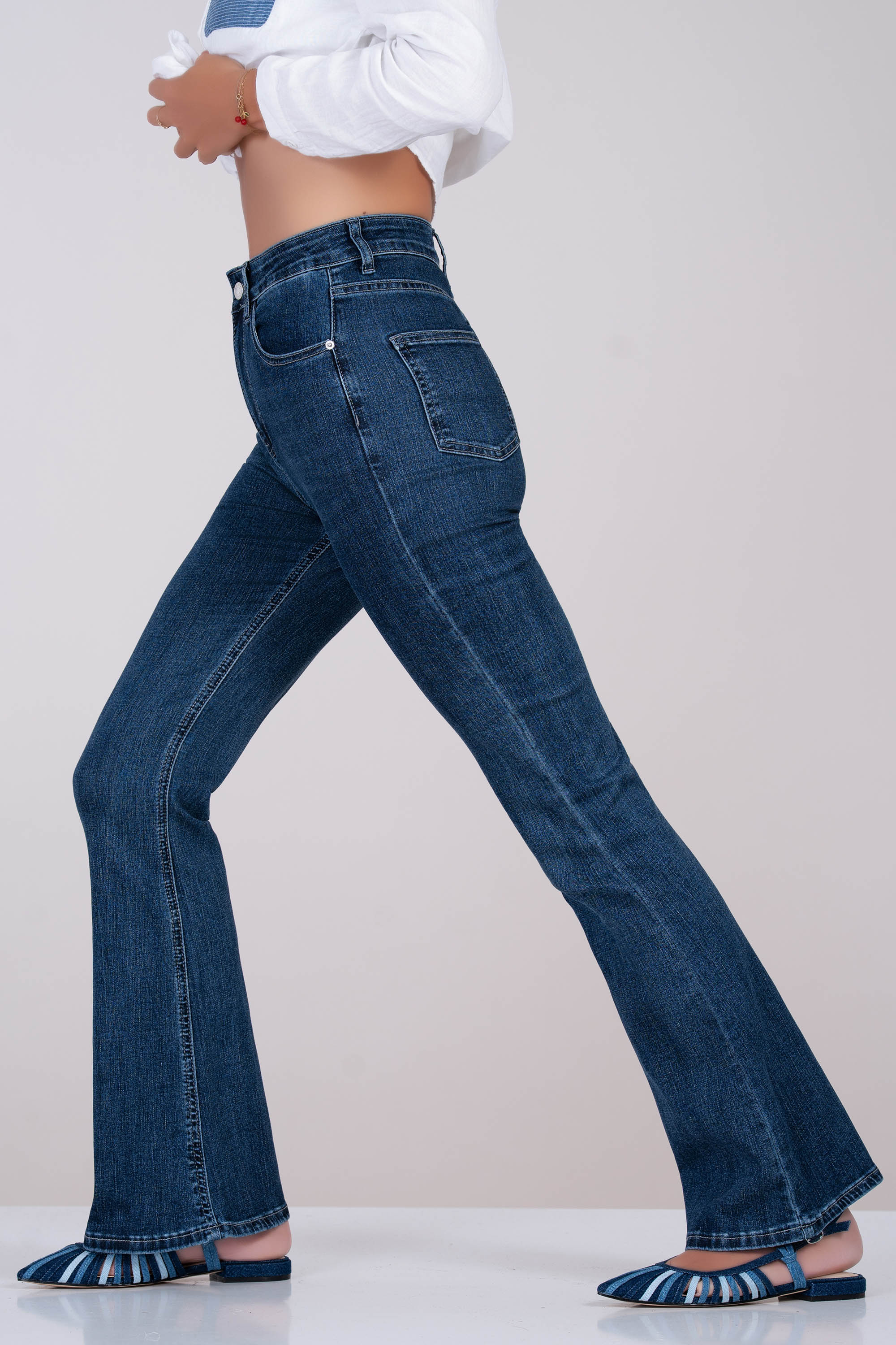 Дамски еластични дънки в класически син цвят тип чарлстон