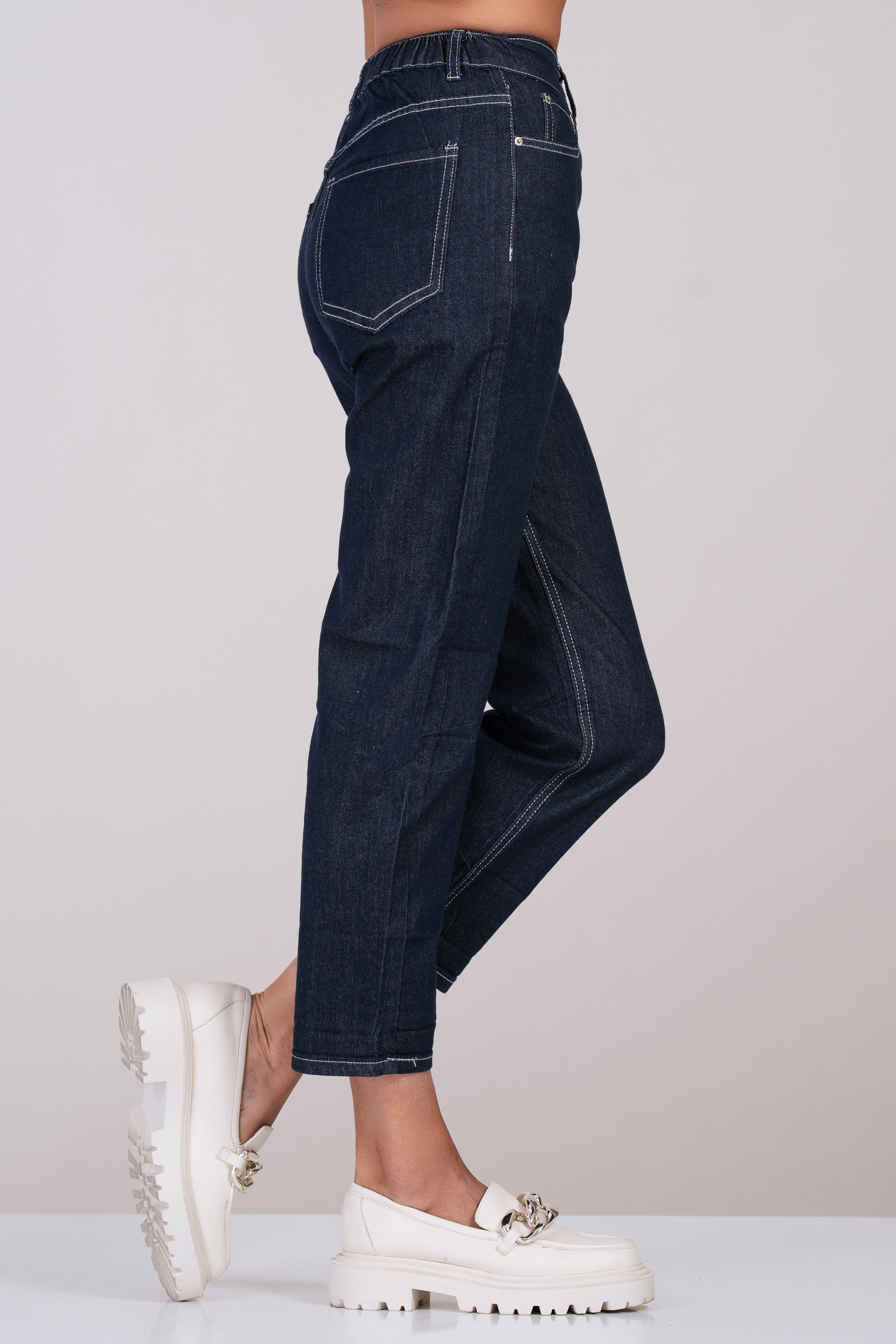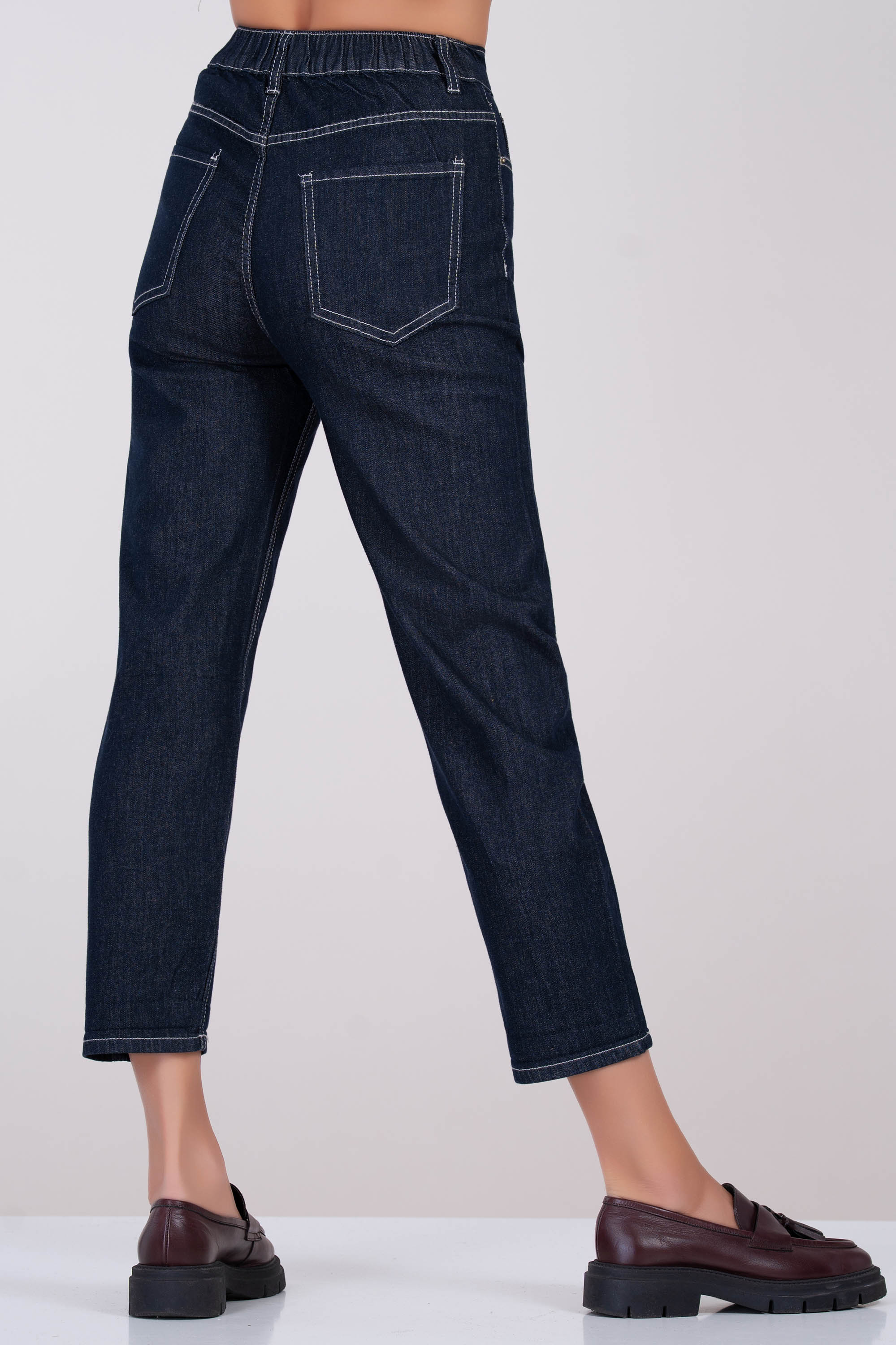 Дамски еластични дънки в тъмносиньо с ластик на талията