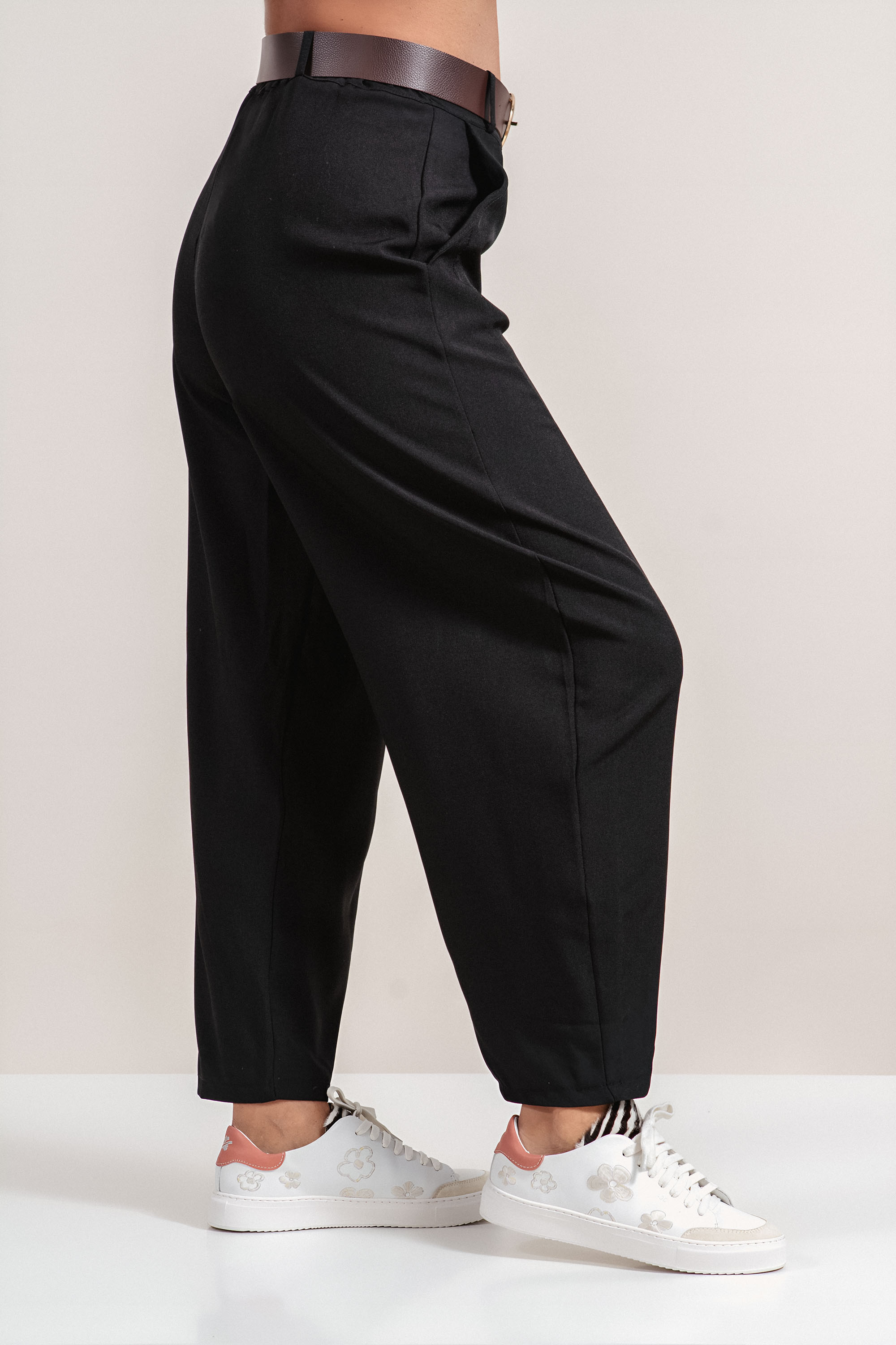 Дамски елегантен панталон в черно с колан и свободена кройка