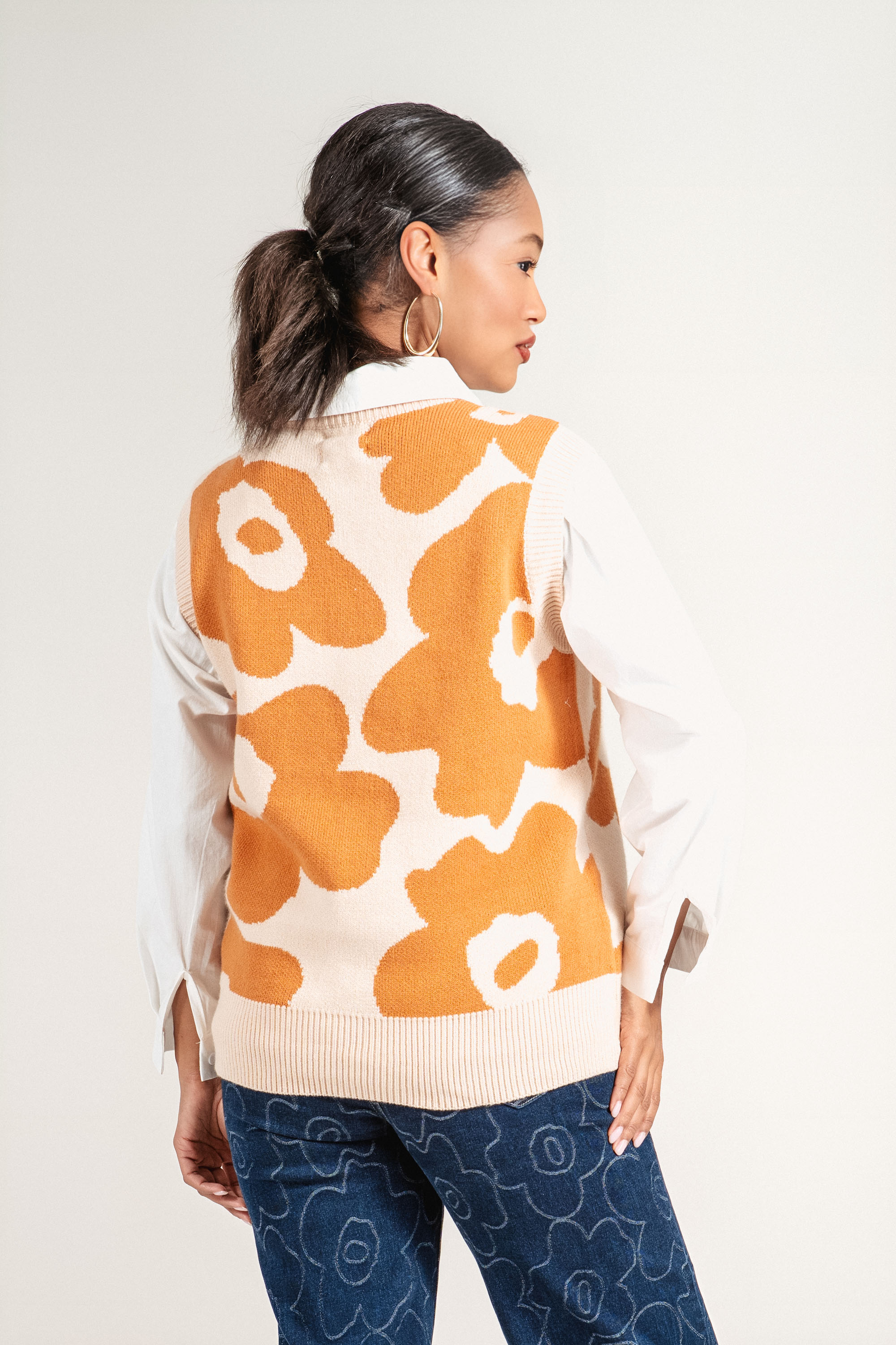 Дамски елек ''Dragonfly'' от фино плетиво с оранжев флорален принт