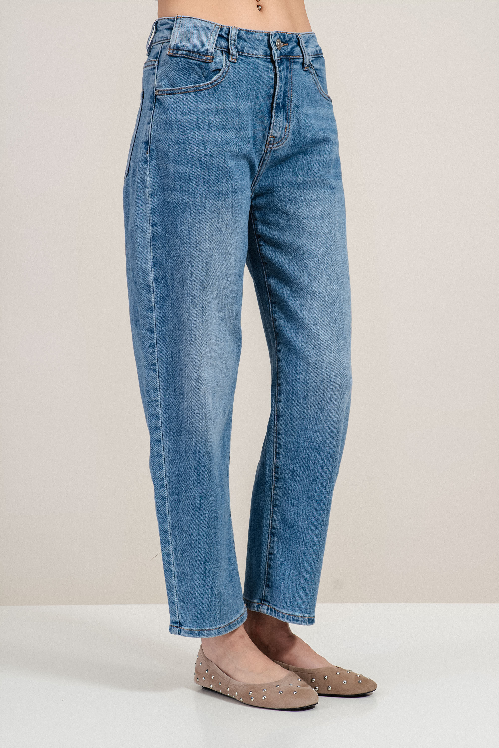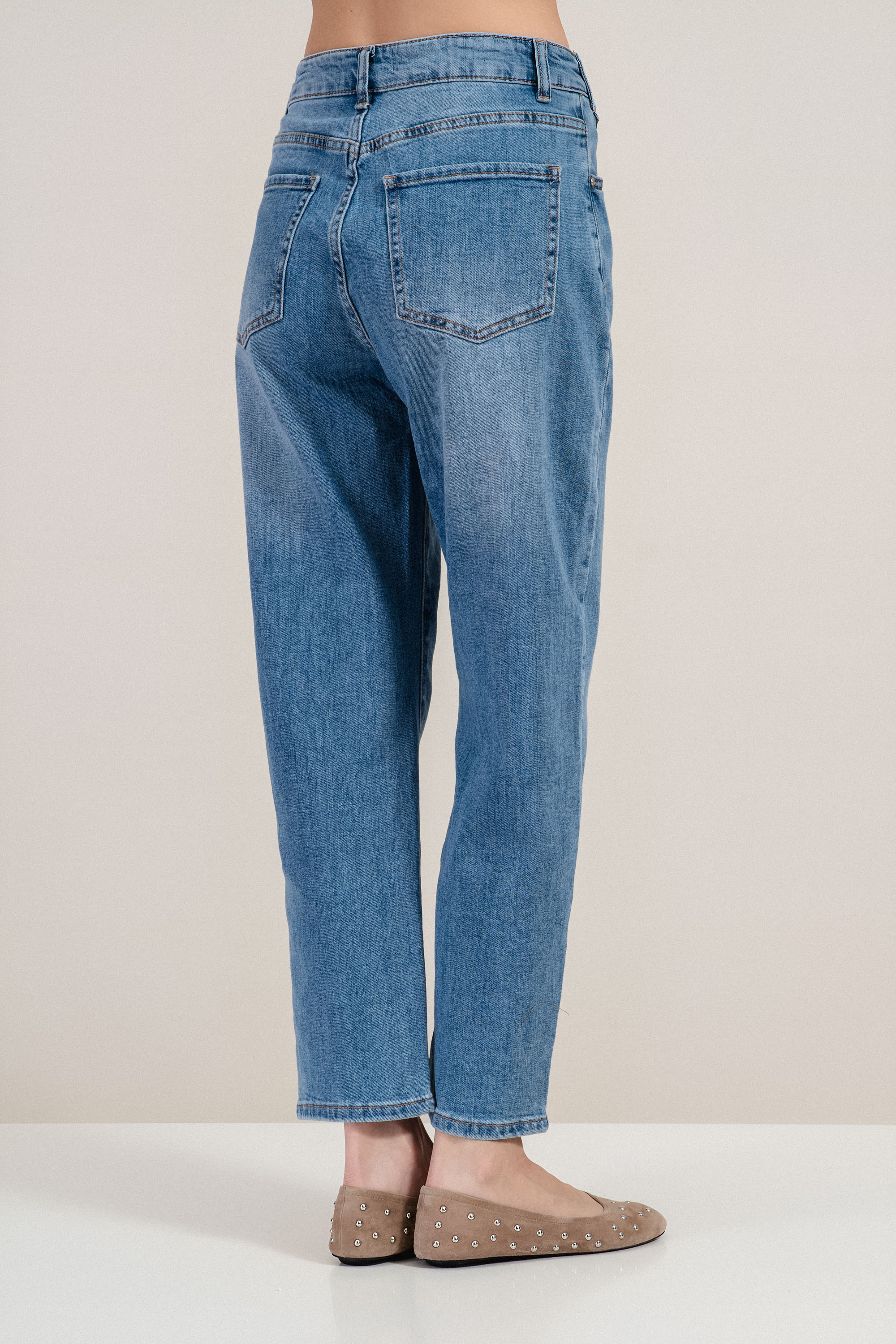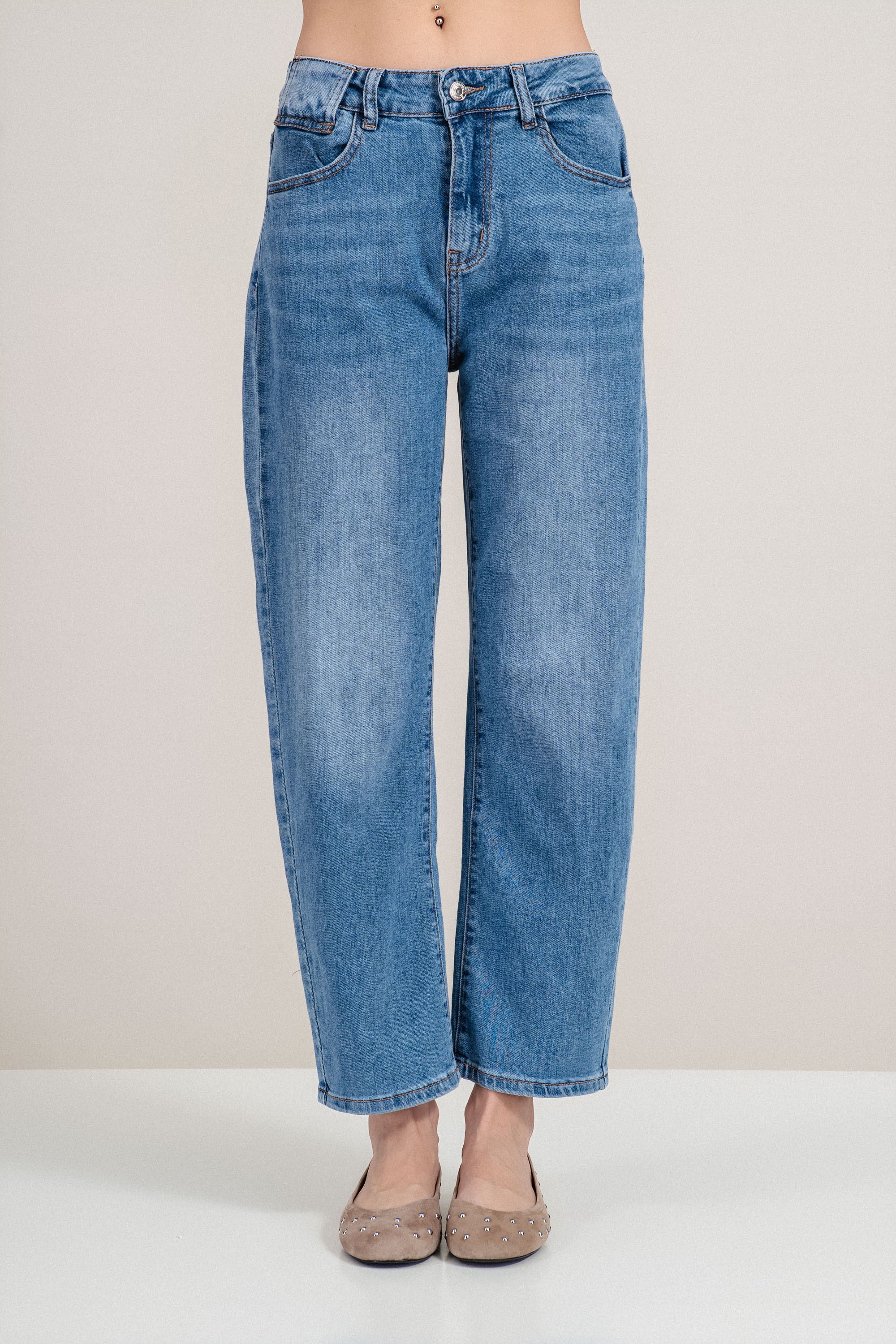 Класически дънки от син деним, създадени за комфорт и универсален стил. Материята е здрава и приятна на допир, като осигурява удобство при носене през целия ден. Моделът е с прав крачол и стандартна талия, което оформя изчистен силует и позволява лесно комбиниране с ризи, блузи или тениски. Лекото изсветляване на денима добавя модерна визия и прави модела подходящ както за ежедневни, така и за по-елегантни комбинации.