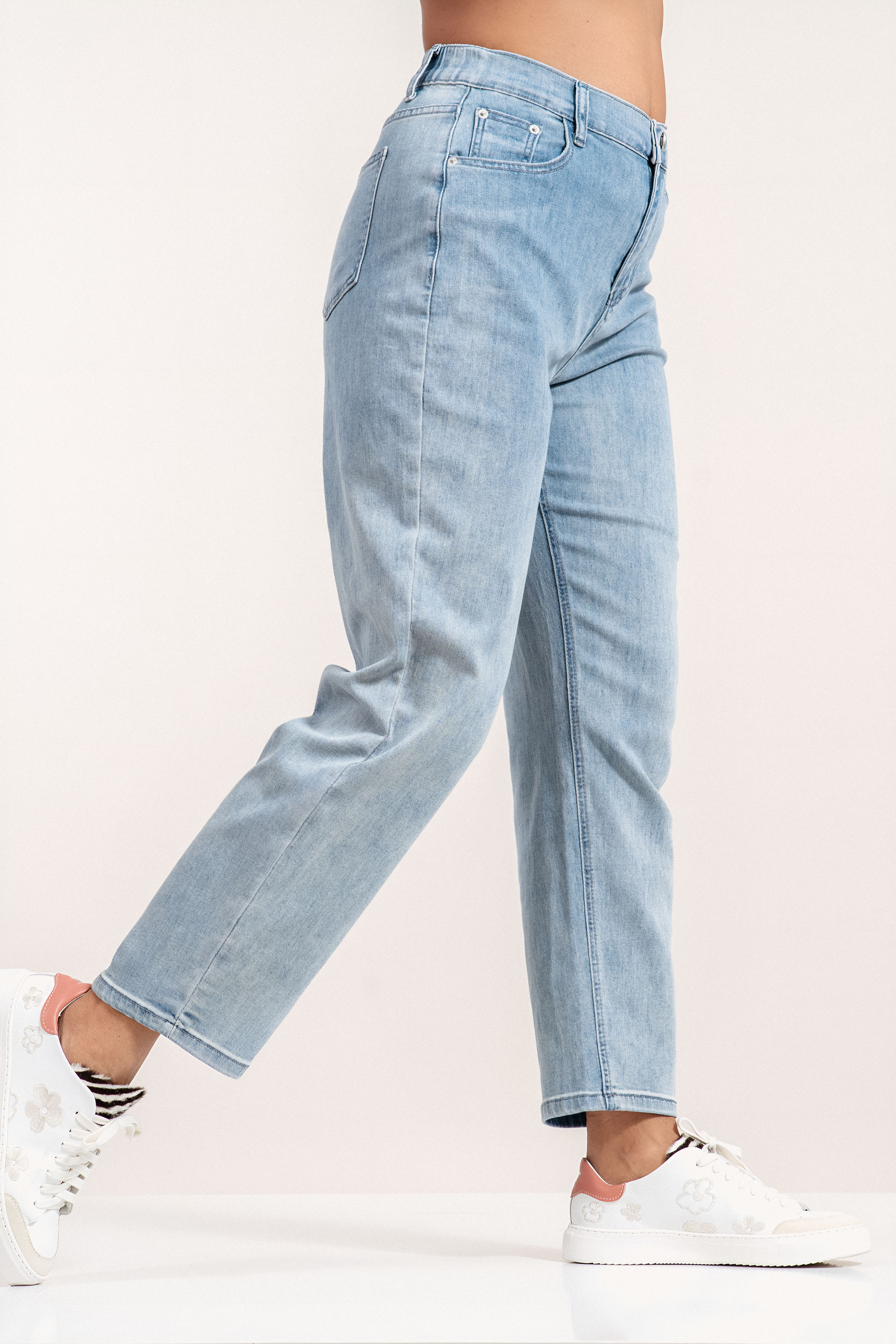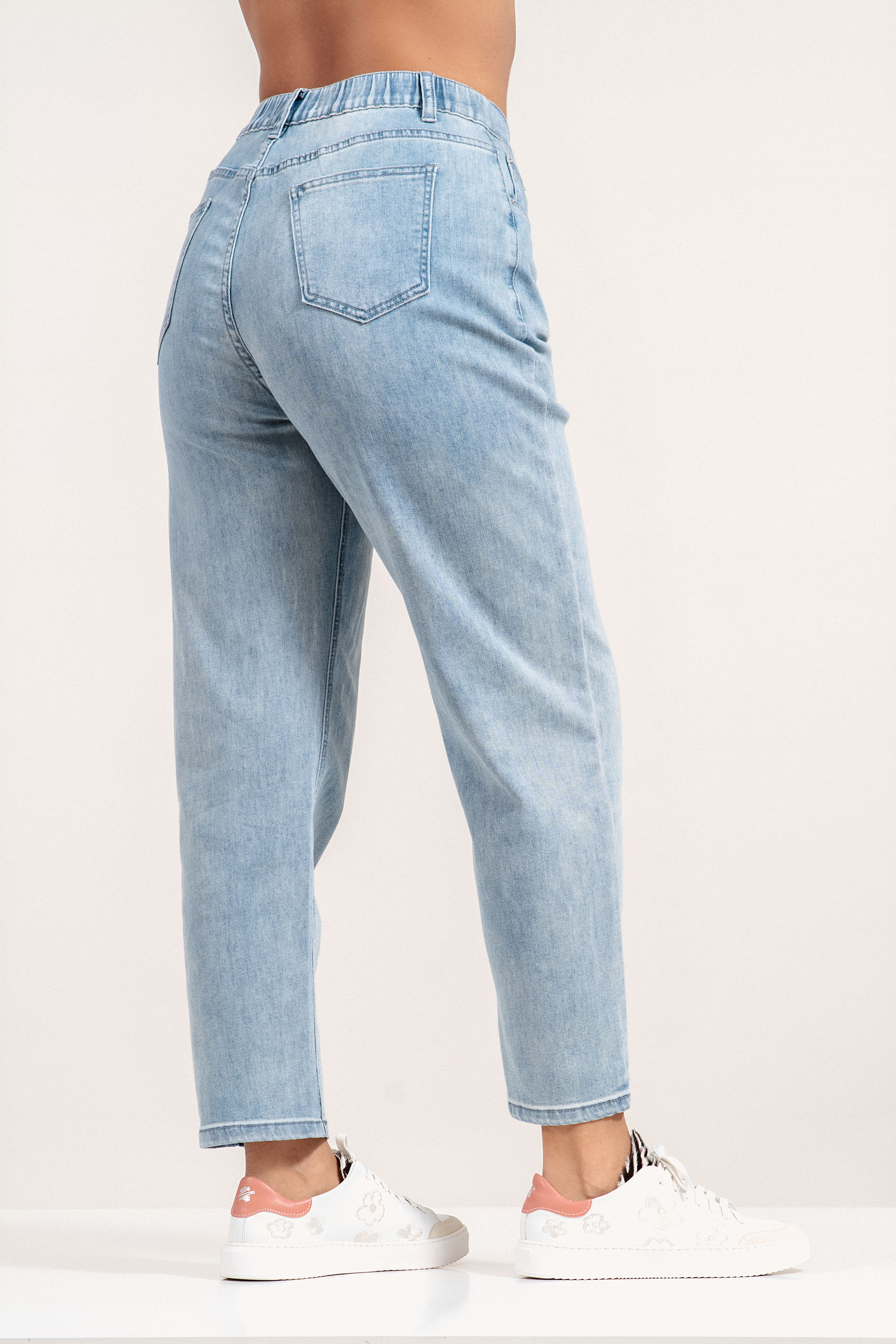 Комфортни дънки от мек деним, създадени за ежедневна лекота и практичност. Материята е приятна на допир и осигурява удобство при носене през целия ден. Моделът е с ластична талия, която гарантира добро прилягане без напрежение. Изчистеният дизайн позволява лесно комбиниране с различни визии, а дискретният омбре ефект при джобовете добавя фин стилен акцент. Подходящи за динамично ежедневие и градски стил.