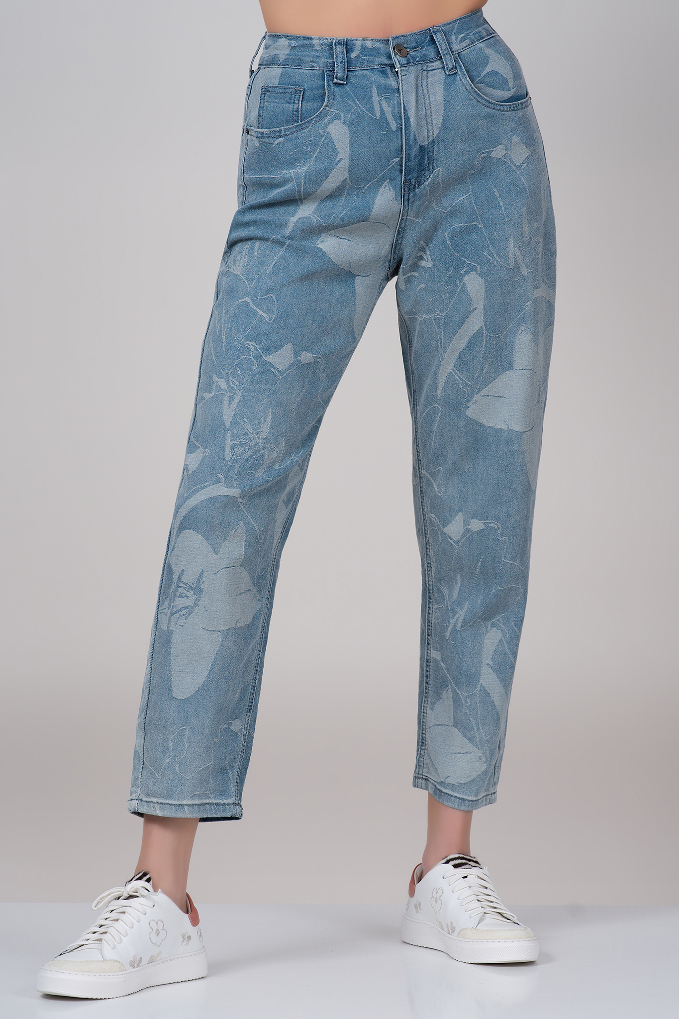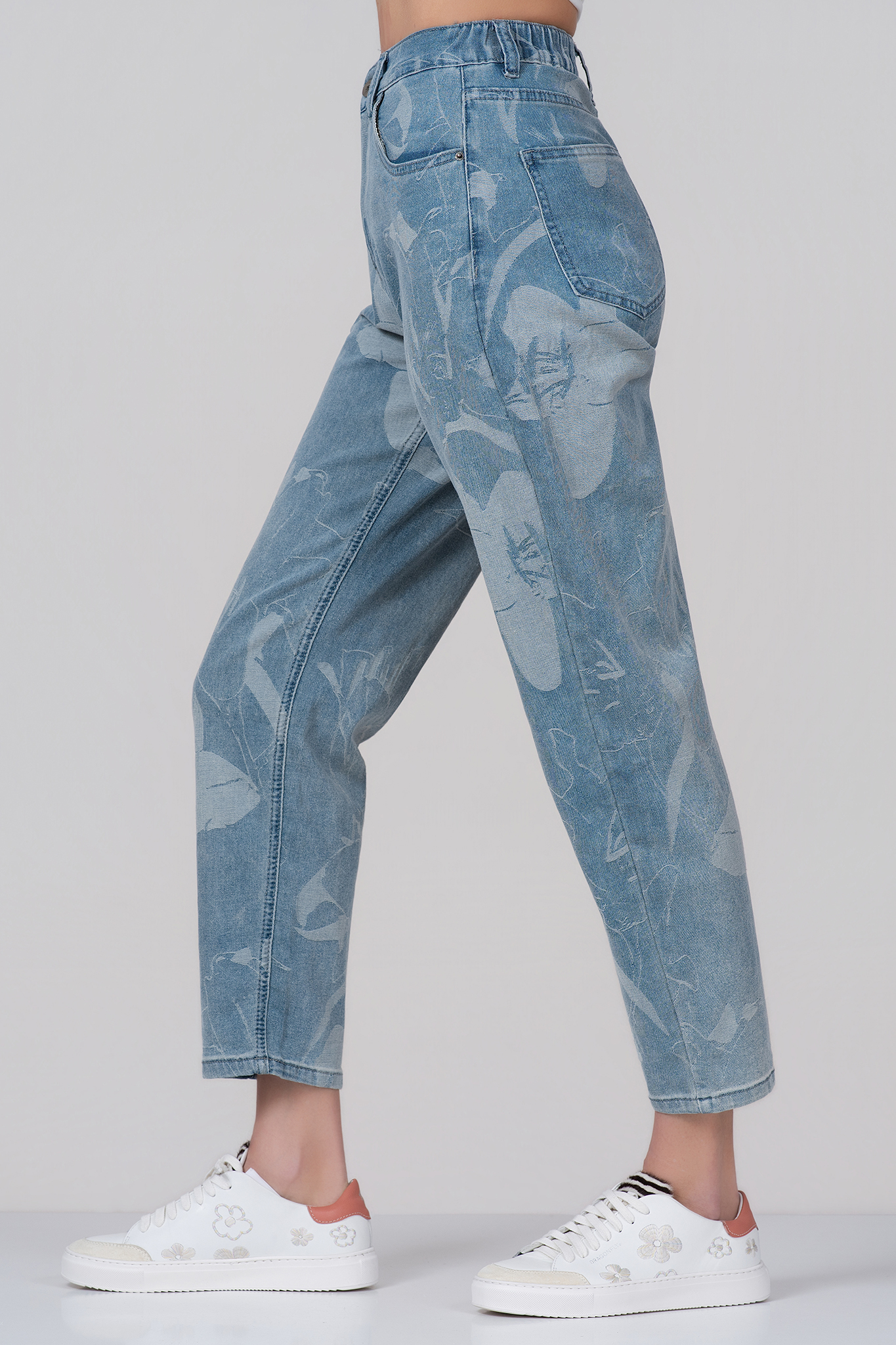 Дамски летни дънки "Dragonfly"с ластик в талията и принт светли цветя