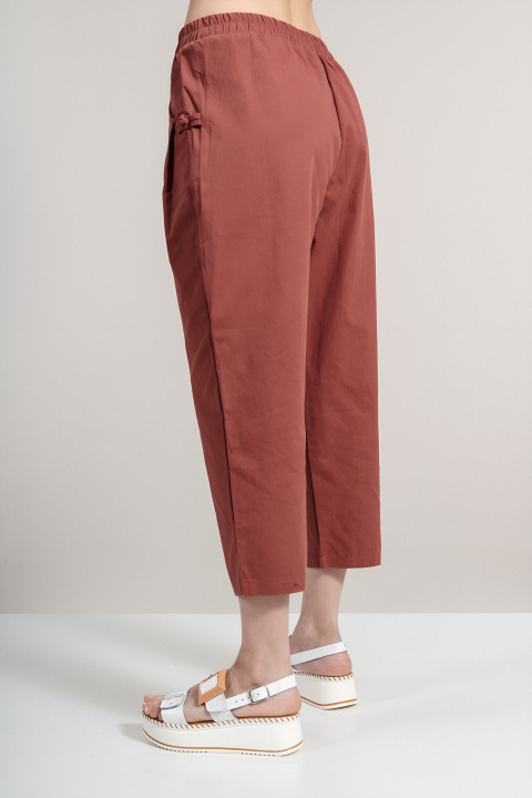 Дамски панталон от памук в керемиден цвят със странични гайки и джобове