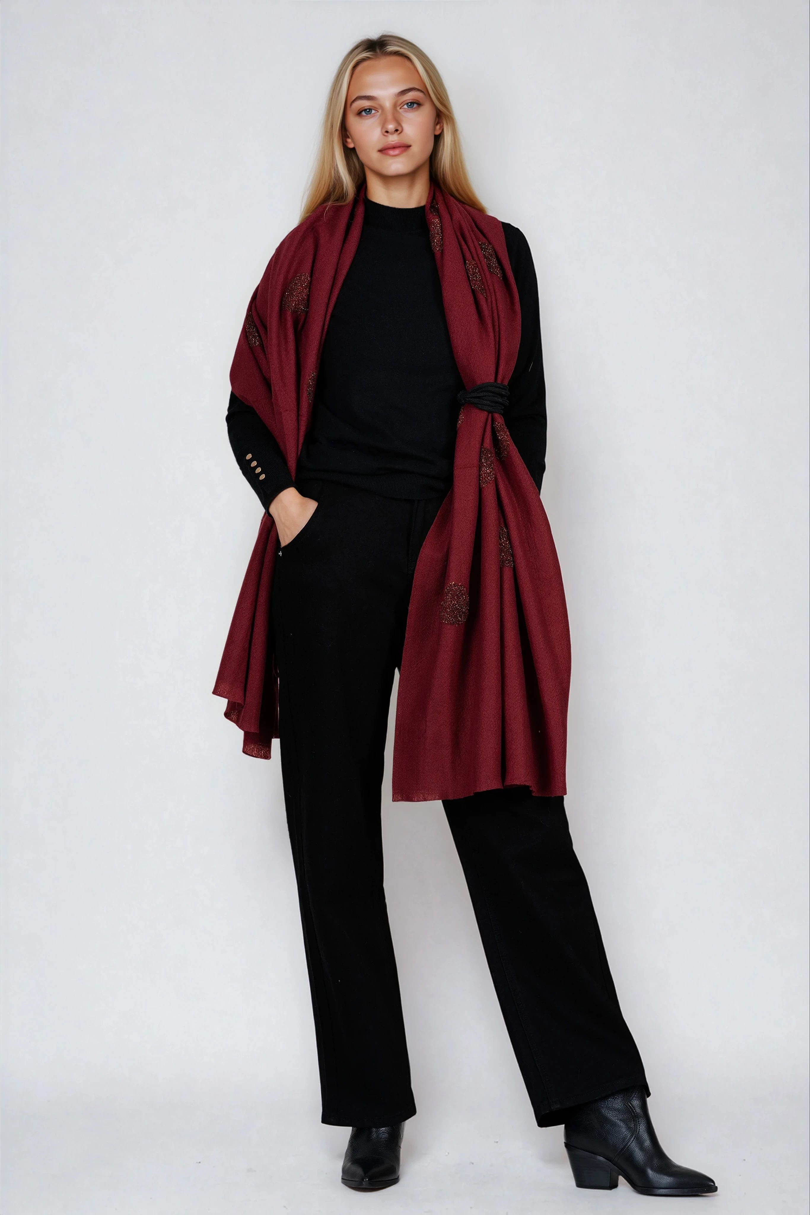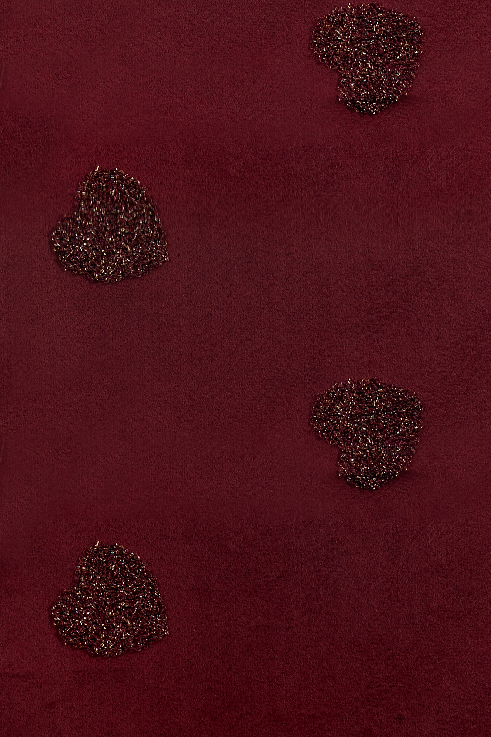 Дамски топъл шал в цвят бордо с лъскави сърца
