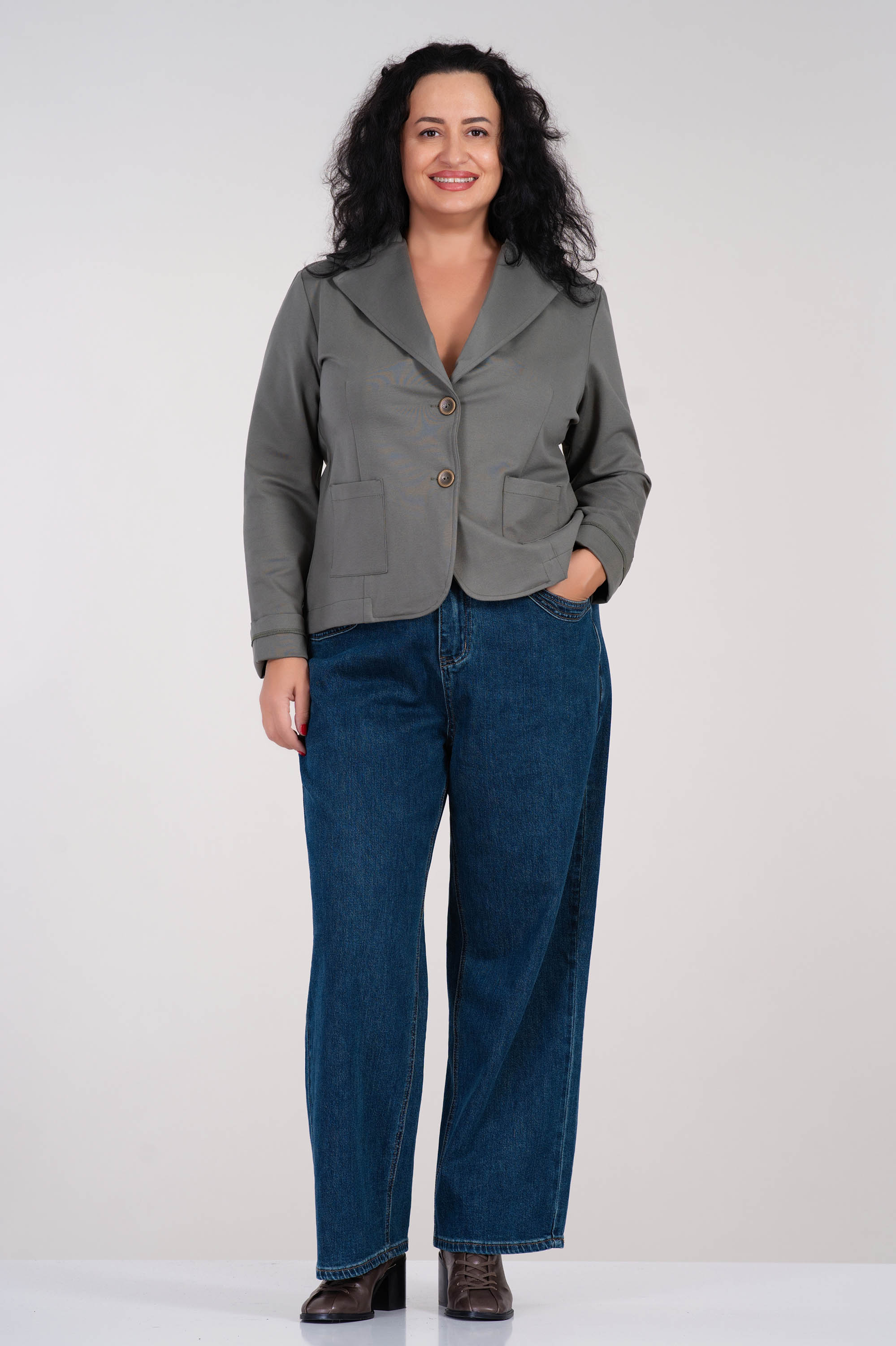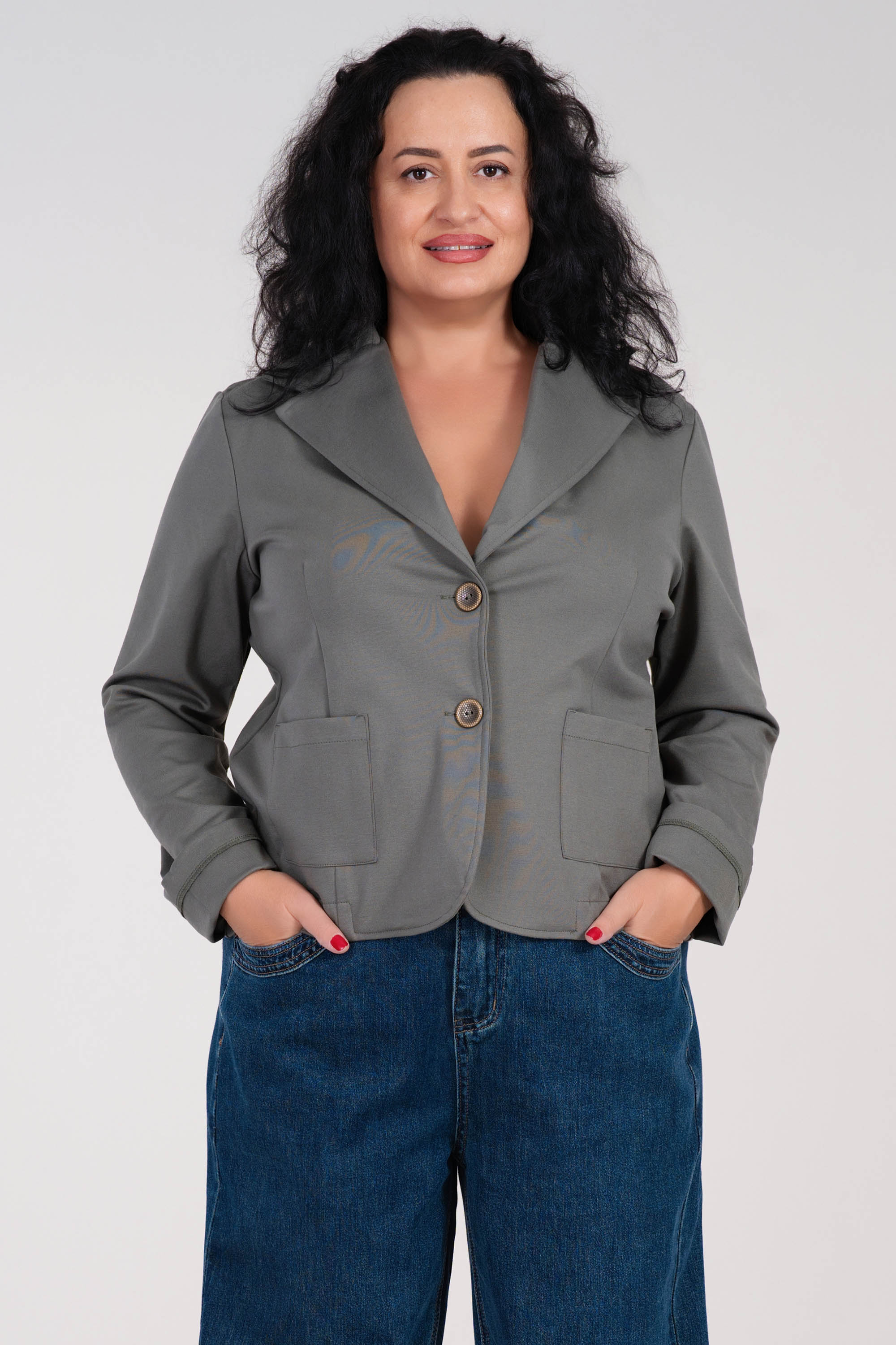 Дамско еластично сако от памук в цвят милитъри