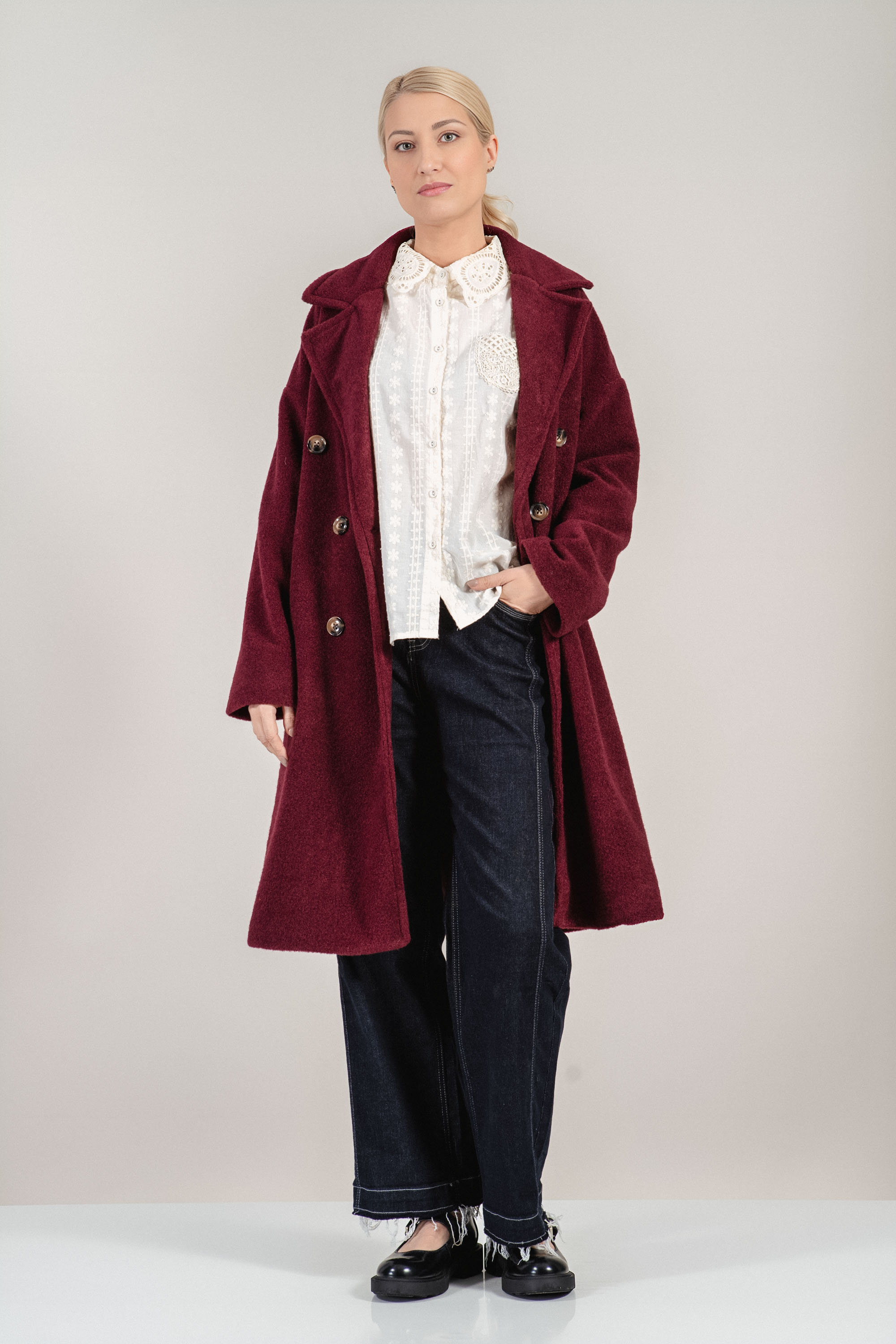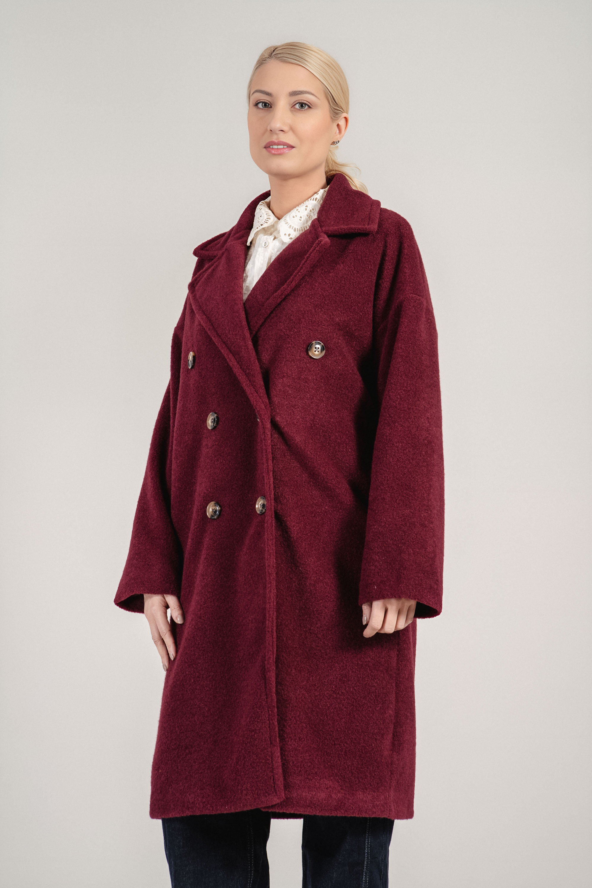 Това палто впечатлява с класическата си визия отвън и неочаквания акцент отвътре – стилен сатиниран хастар. Кройката е издължена, с изчистен силует, подходящ за ежедневна и делова визия. Материята е плътна и подходяща за есенно-зимния сезон. Закопчаването е едноредово, а двете копчета и скритите джобове допълват елегантния завършек.