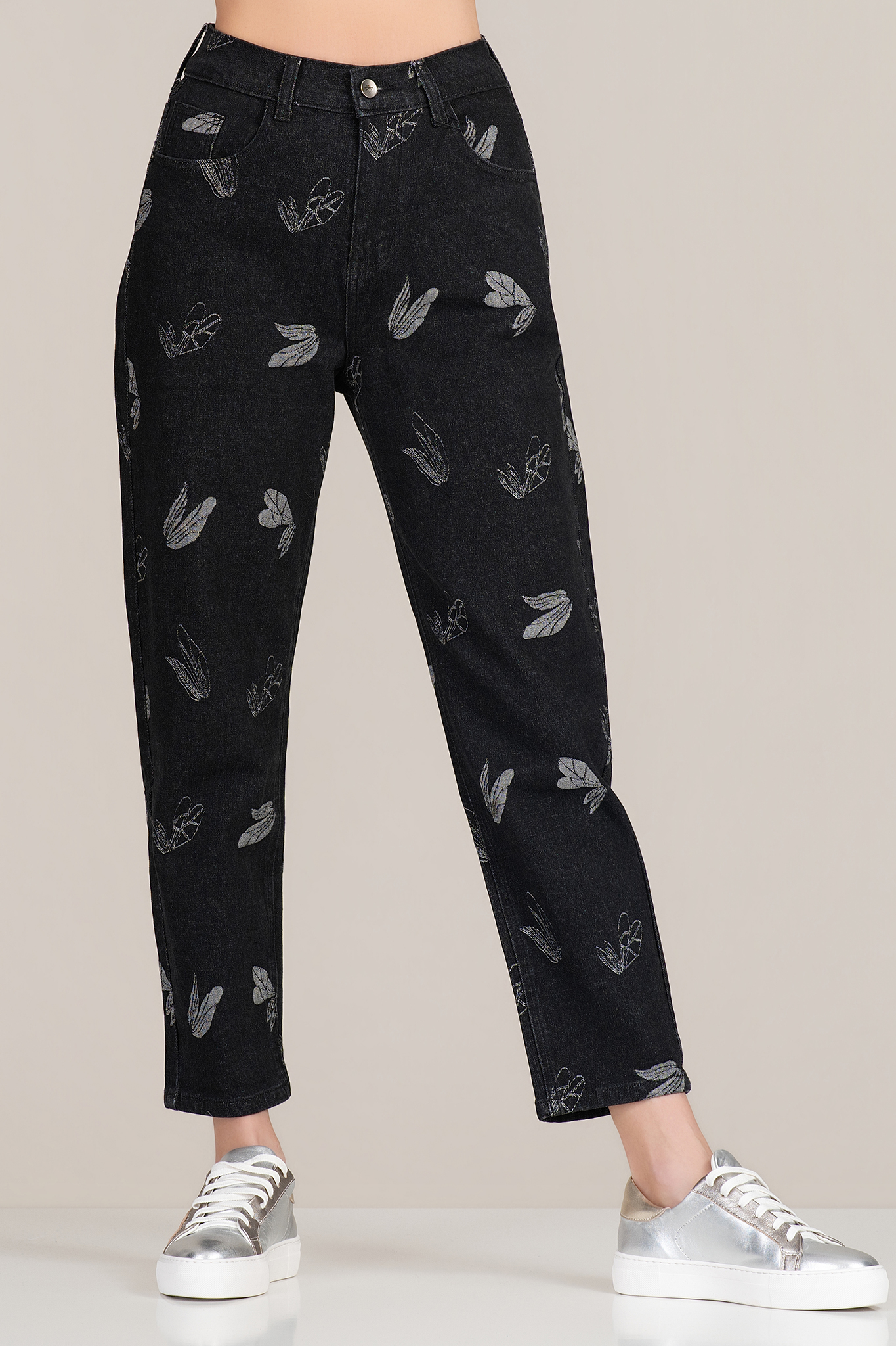 Този модел от серията ''Dragonfly'' се отличава с модерен градски силует и подчертана индивидуалност. Черният еластичен деним е комбиниран с деликатен принт на цветя, който добавя артистично излъчване. Удобният ластик в талията и кожената емблема в кафяво подчертават стила, без да компрометират удобството. Подходящи за есенно-зимния сезон, тези дънки са универсален избор за ежедневна визия с характер.