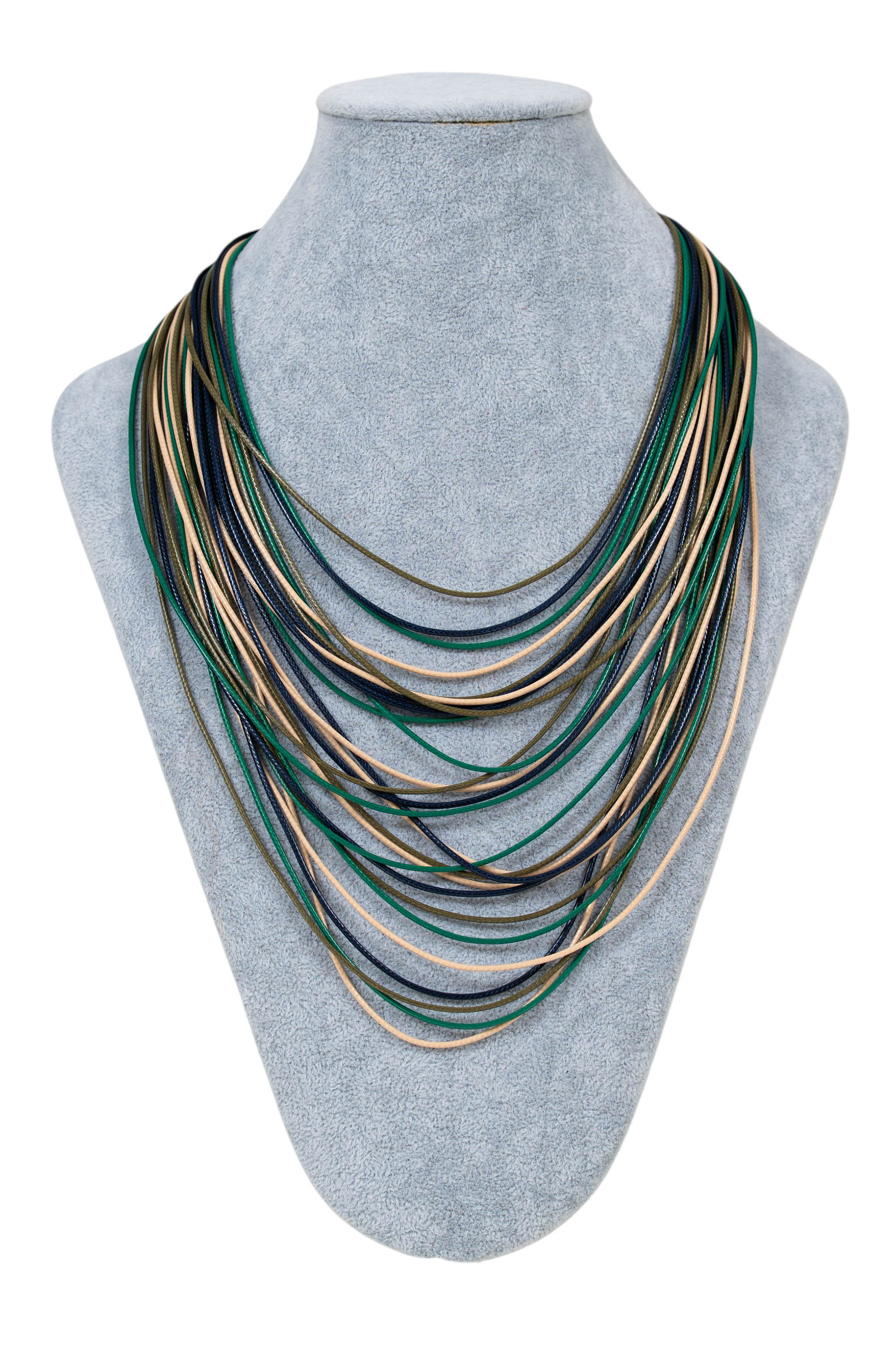 Ефектно многопластово колие в преобладаващ зелен цвят
