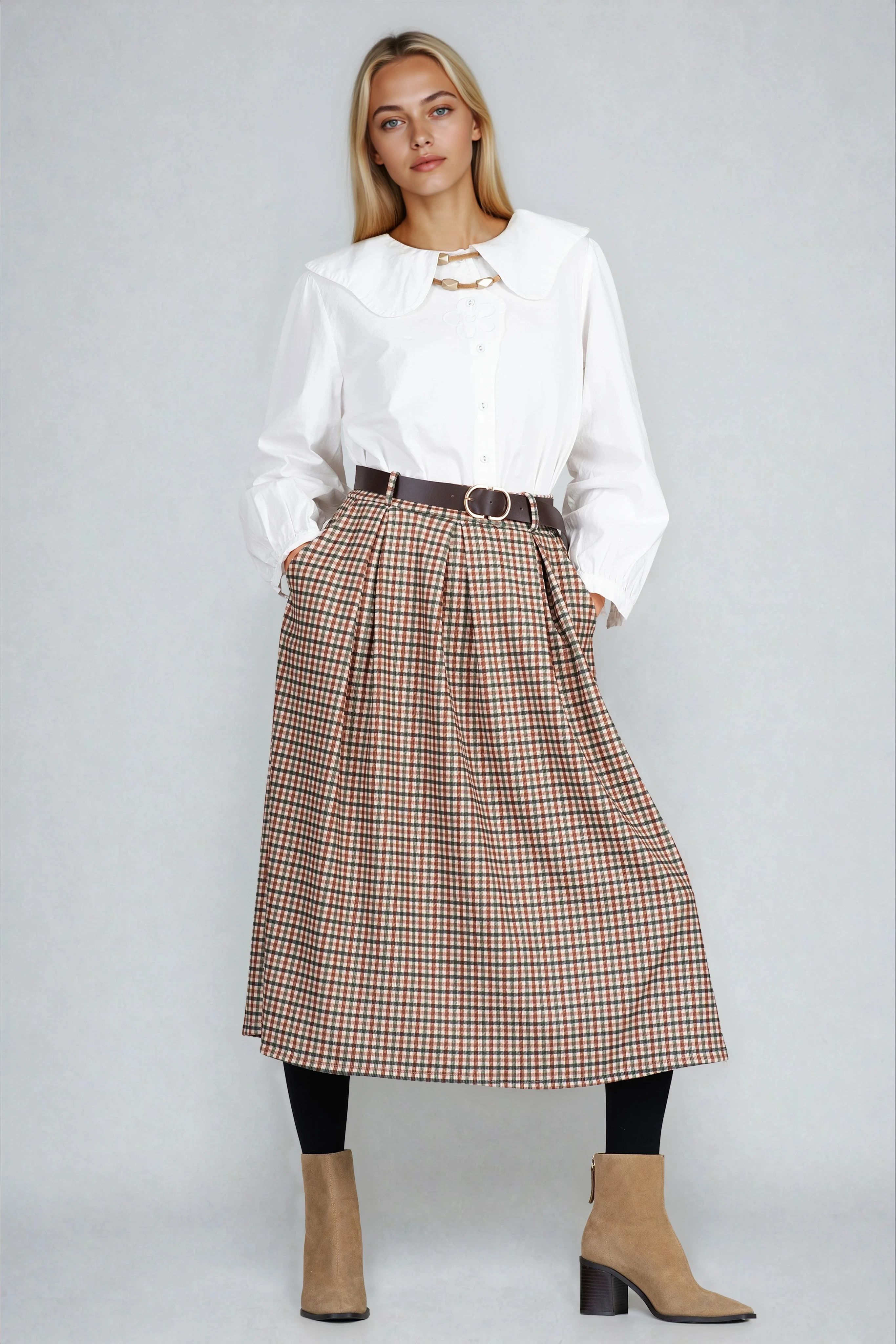 Пола със стилна визия и удобна дължина, изработена от италианска материя в актуално зелено каре. Моделът разполага с джобове и колан от еко кожа, който придава завършеност и акцент на талията. Идеален избор за есенни и зимни визии в съчетание с пуловер и боти.