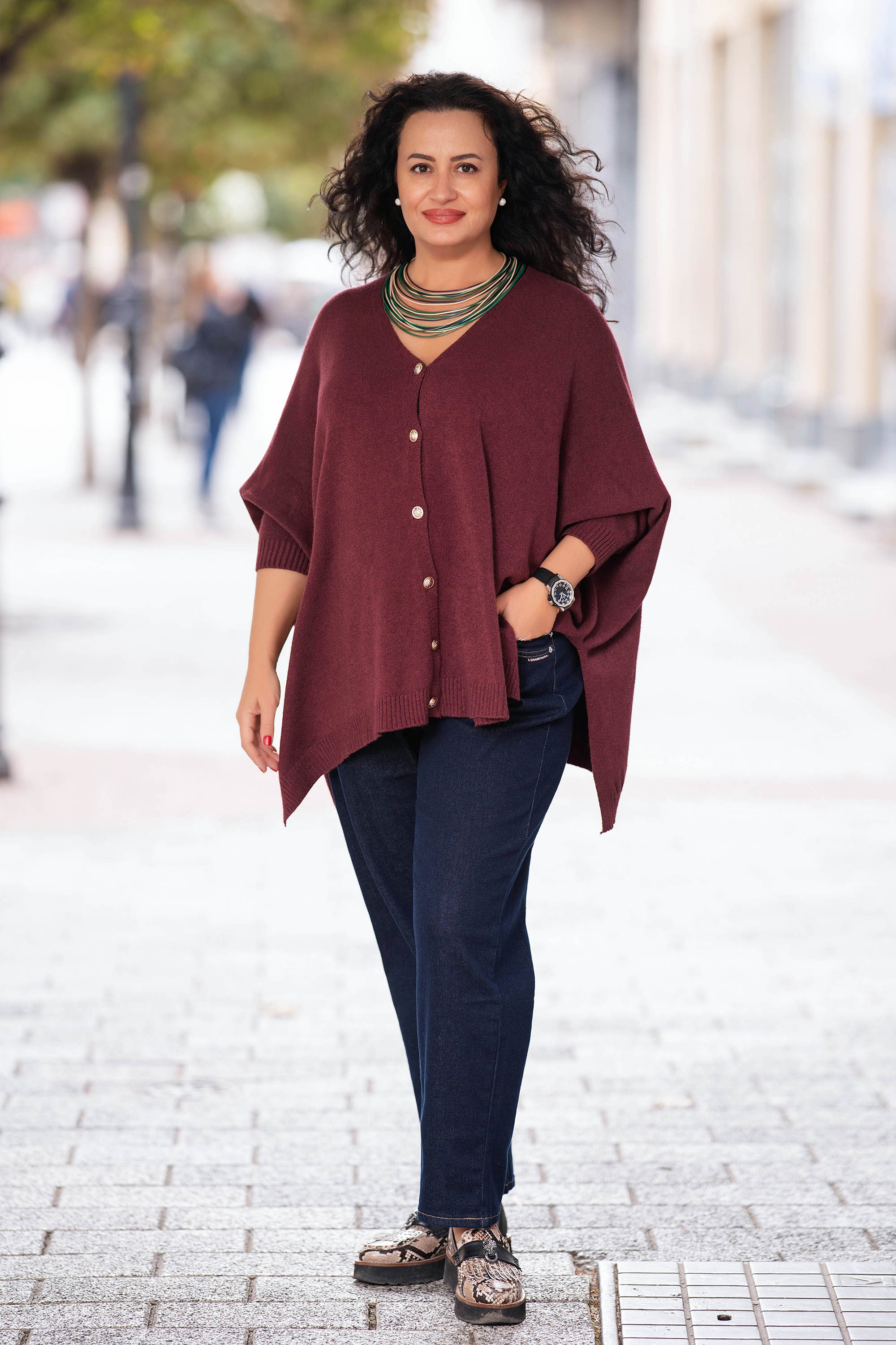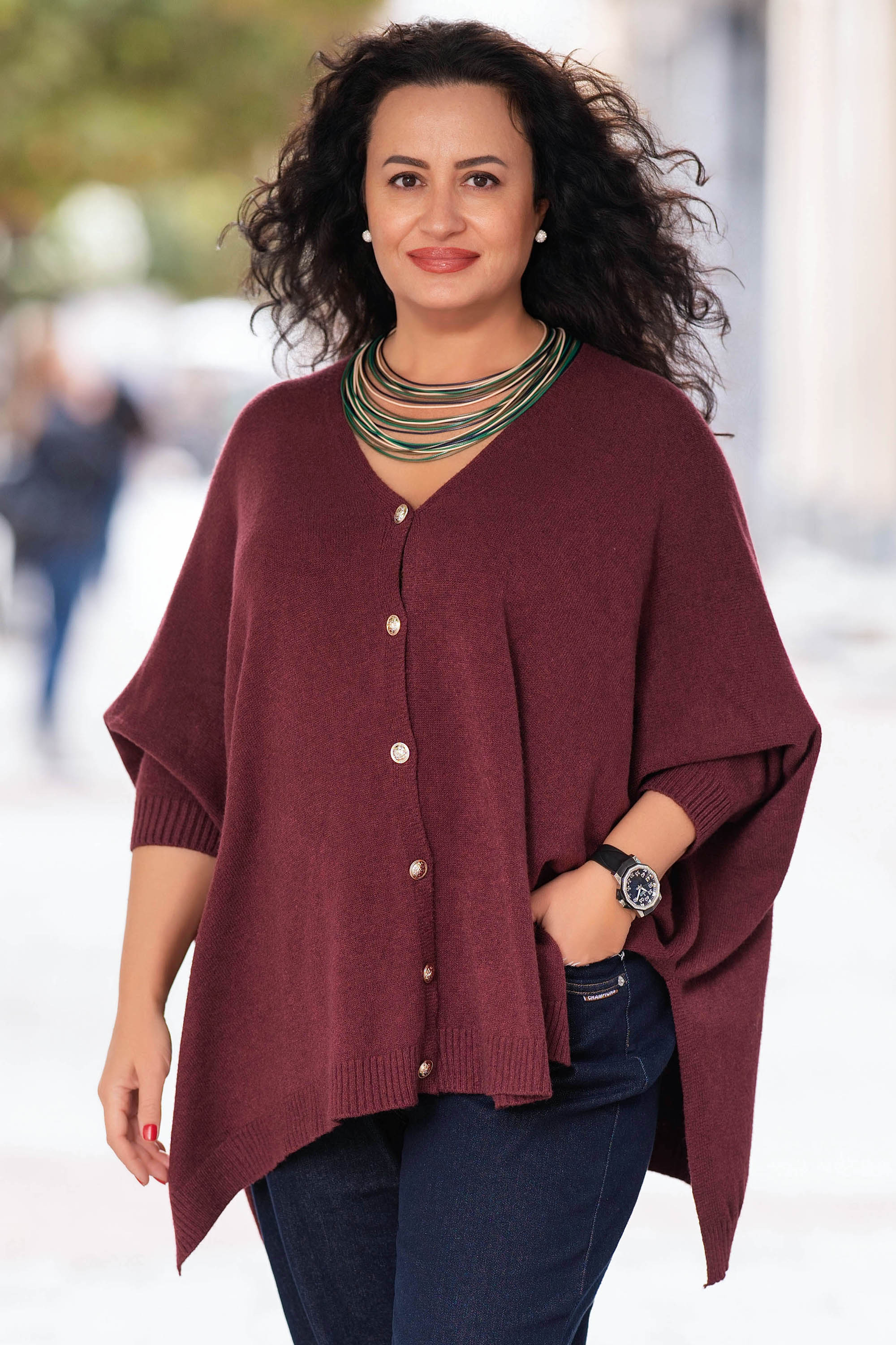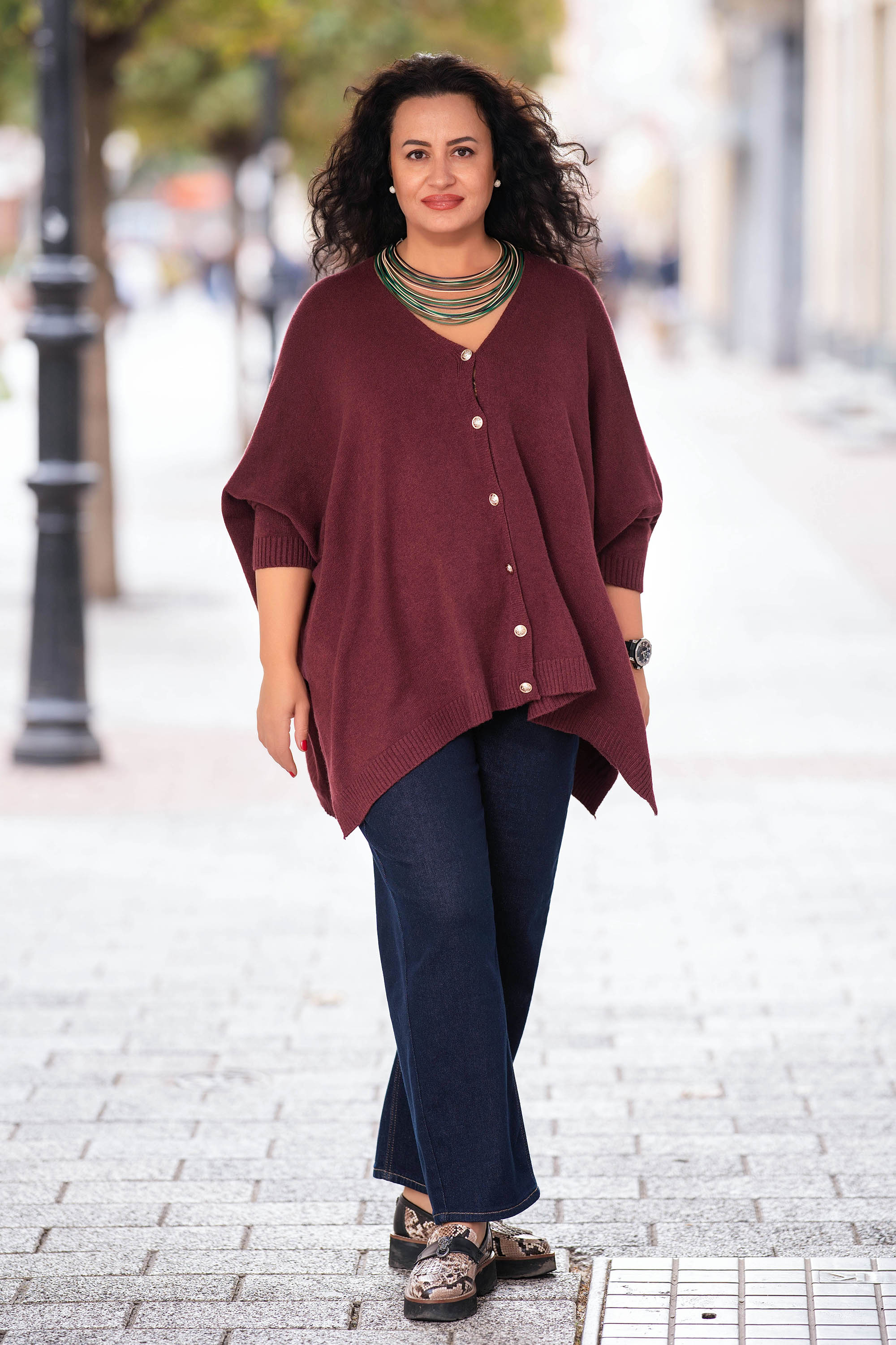МАКСИ асиметрична жилетка в в цвят бордо с копчета
