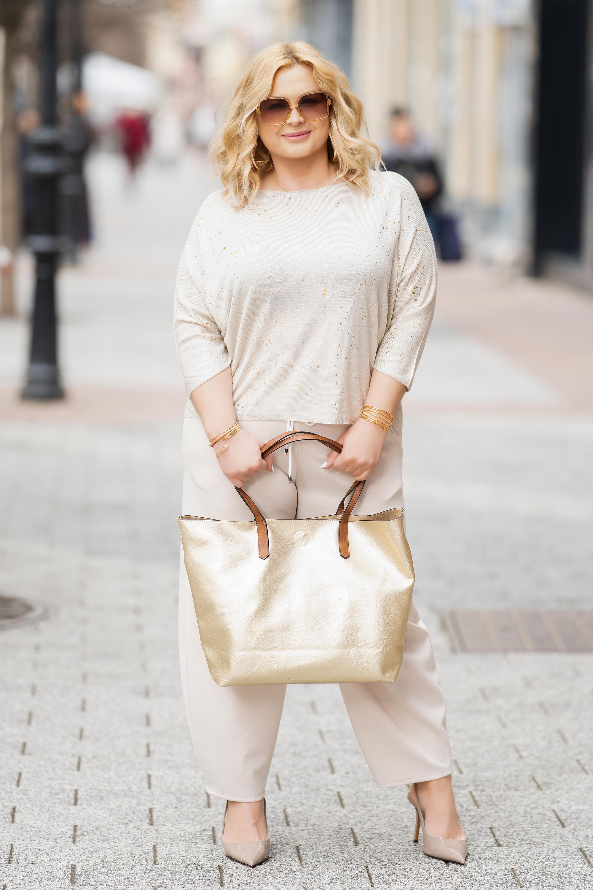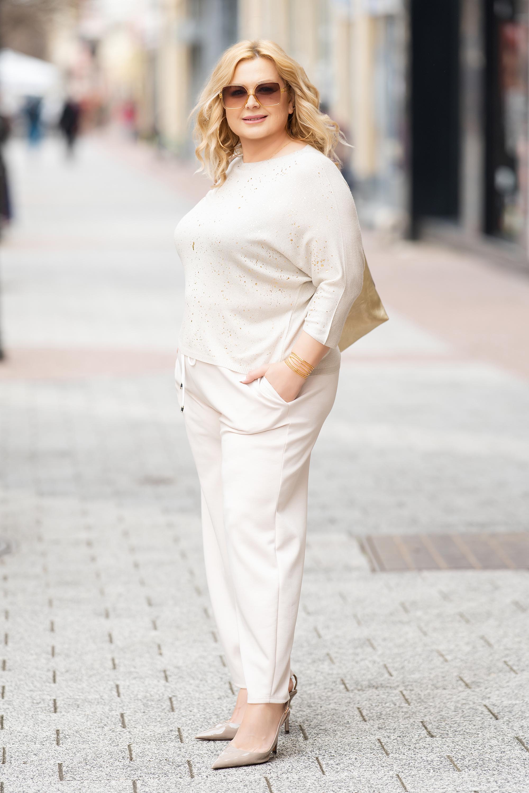 МАКСИ блуза "Dragonfly" от фино плетиво в светлобежово с фектни пръски