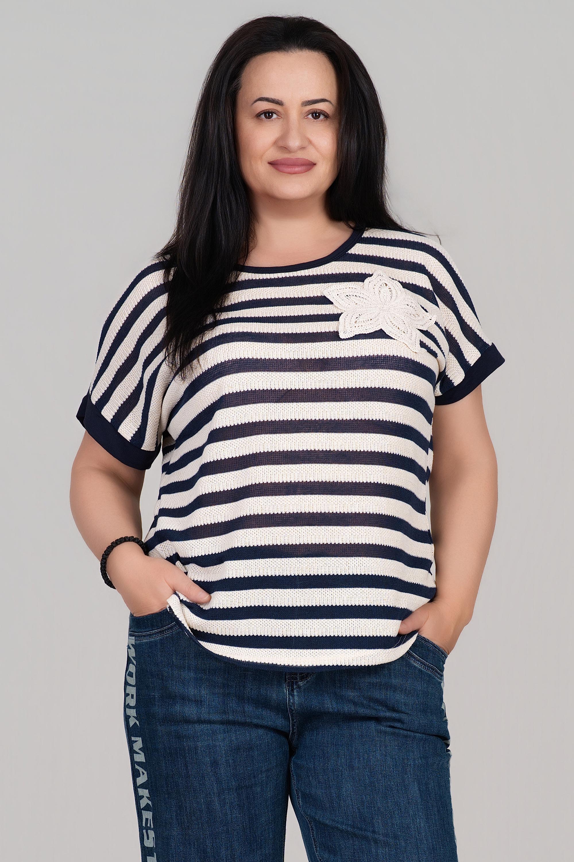 Лека и комфортна макси туника, създадена от фино плетиво с високо съдържание на вискоза. Материята е мека, дишаща и приятна към кожата, което я прави идеална за ежедневието през по-топлите месеци. Свободната кройка осигурява удобство и свобода на движение, а райето в комбинация с бродирания флорален акцент добавя стилен завършек. Подходящ модел за комбиниране с дънки или панталон за небрежно-елегантна визия.