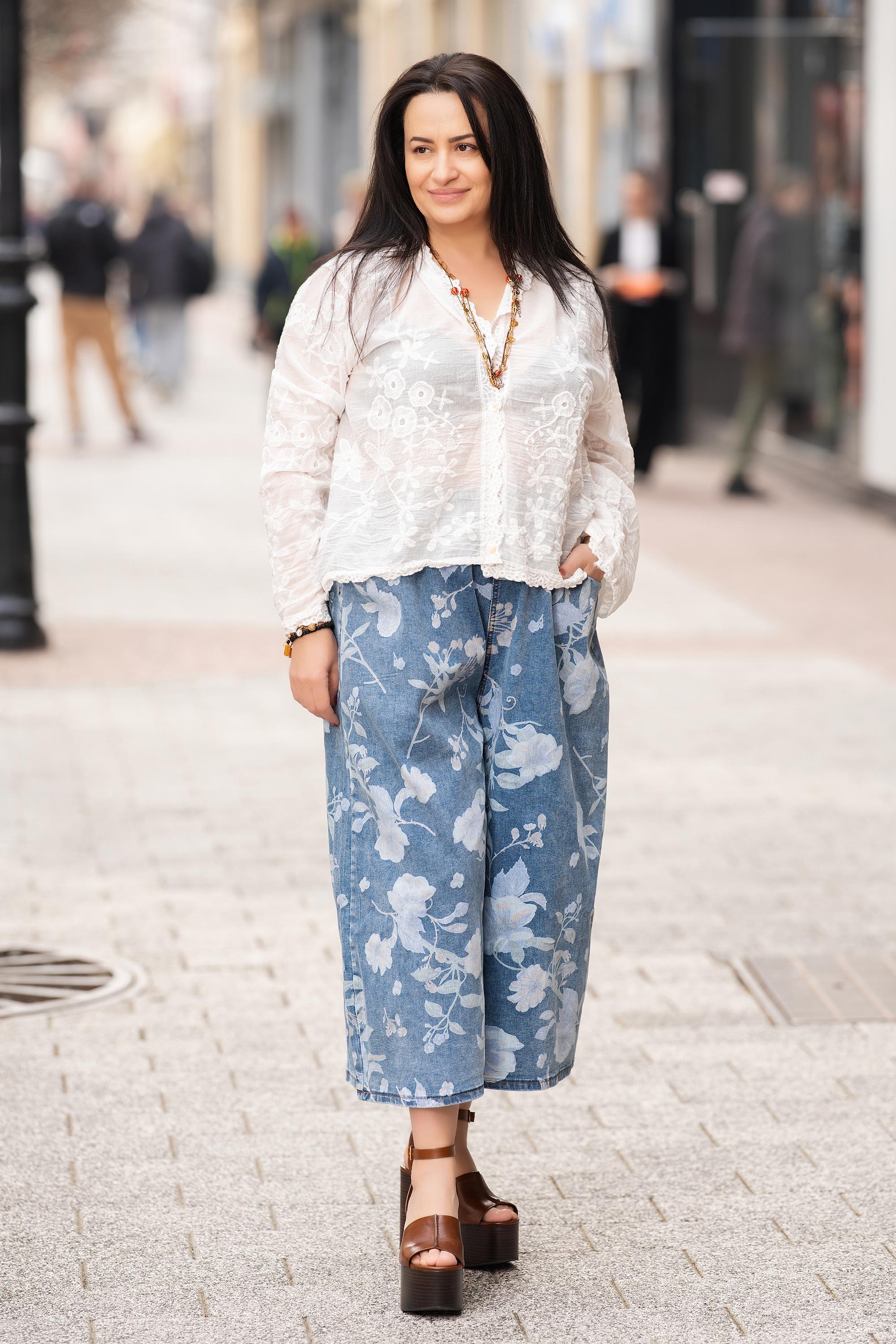 Лека памучна макси блуза туника, създадена за комфорт и естествено движение през топлите дни. Материята от 100% памук позволява на кожата да диша и осигурява приятно усещане през целия ден. Моделът е с качулка, остро деколте и закопчаване с копчета, а деликатната бродерия на цветя придава женствен акцент. Свободната кройка пада леко по тялото и създава усещане за лекота, което прави модела подходящ както за ежедневието, така и за небрежни градски визии.