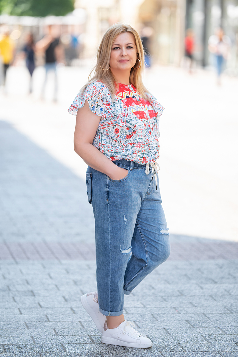 Модел: Моделът е висок 165см. и е облечен с размер 46/48