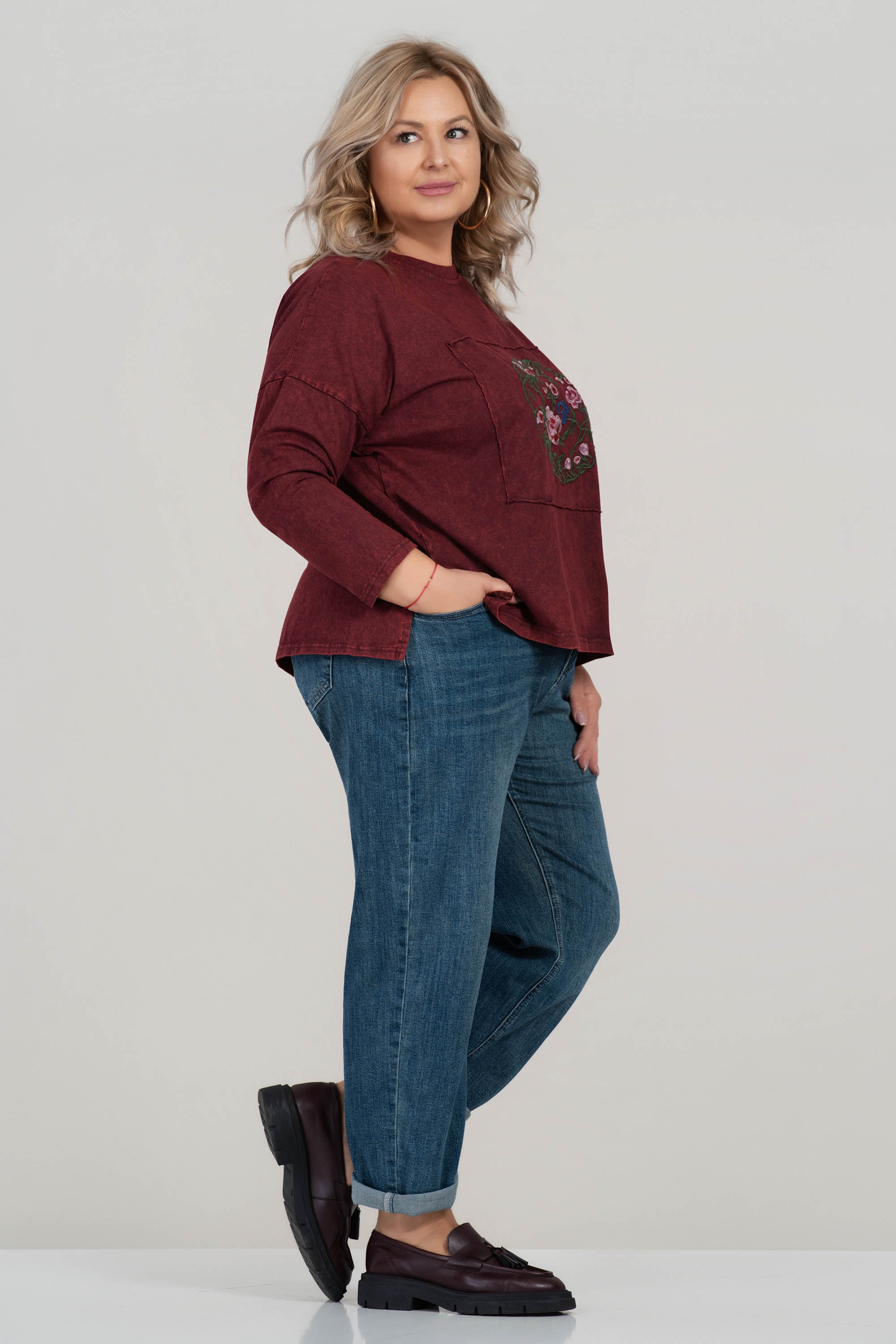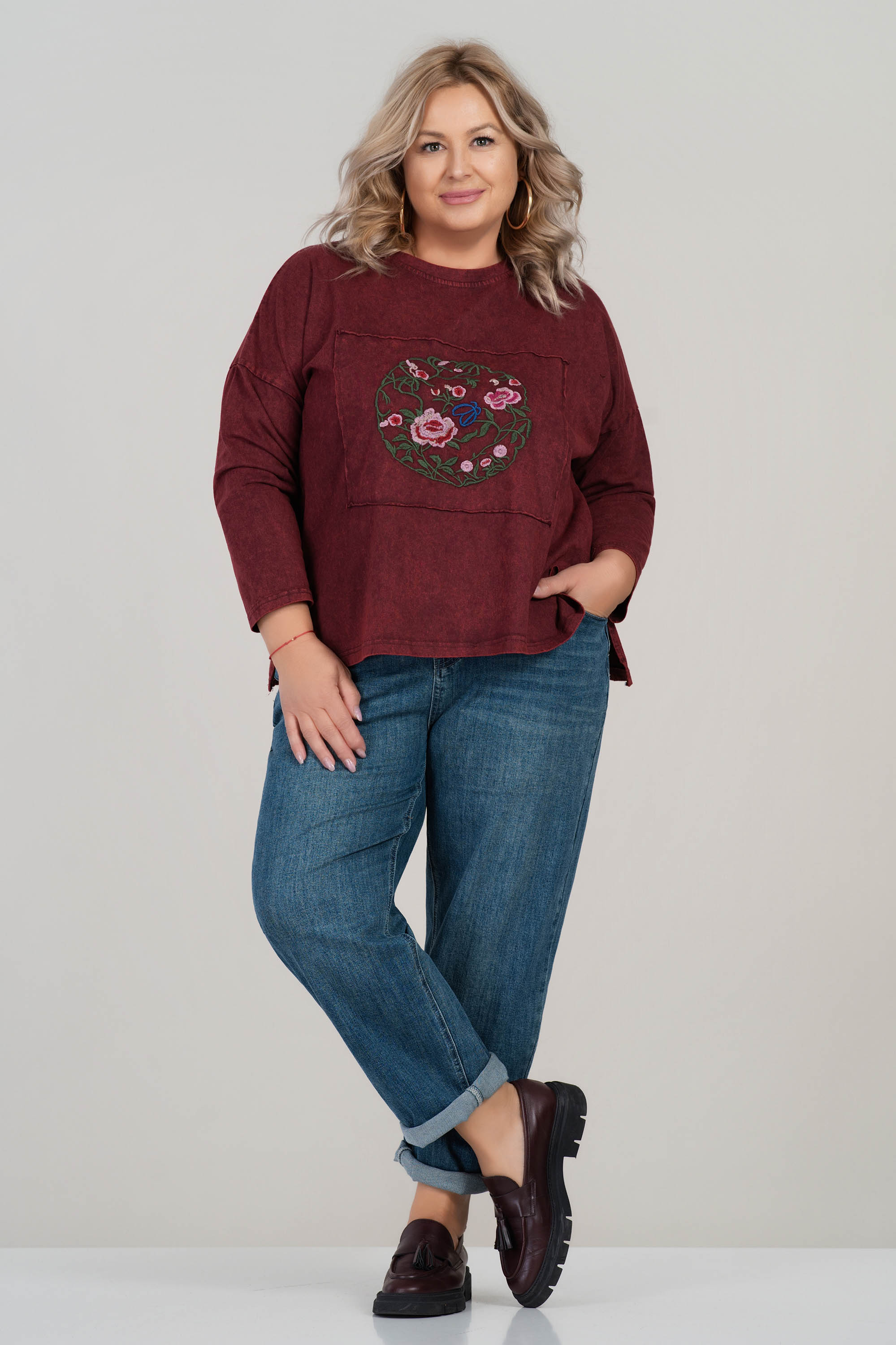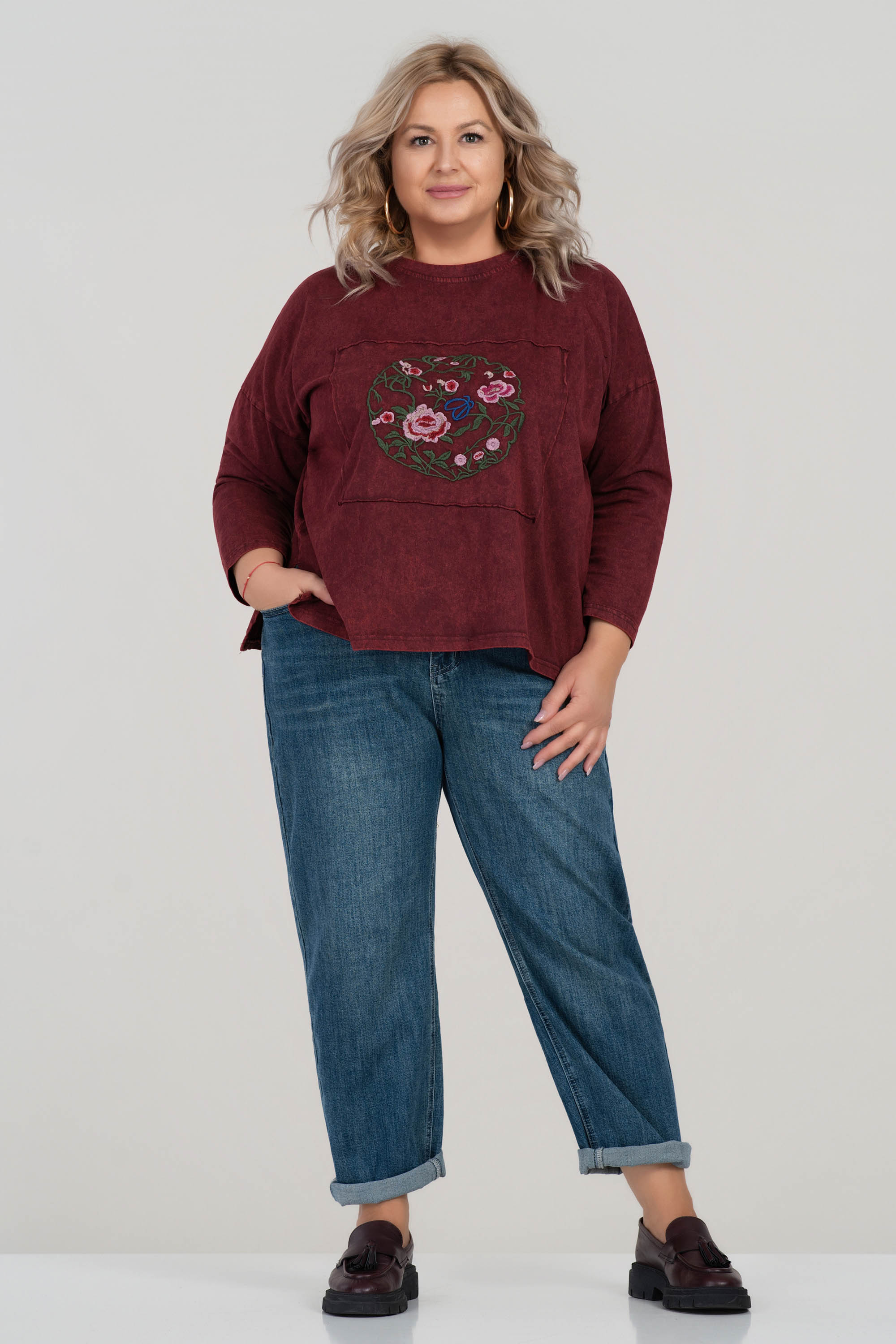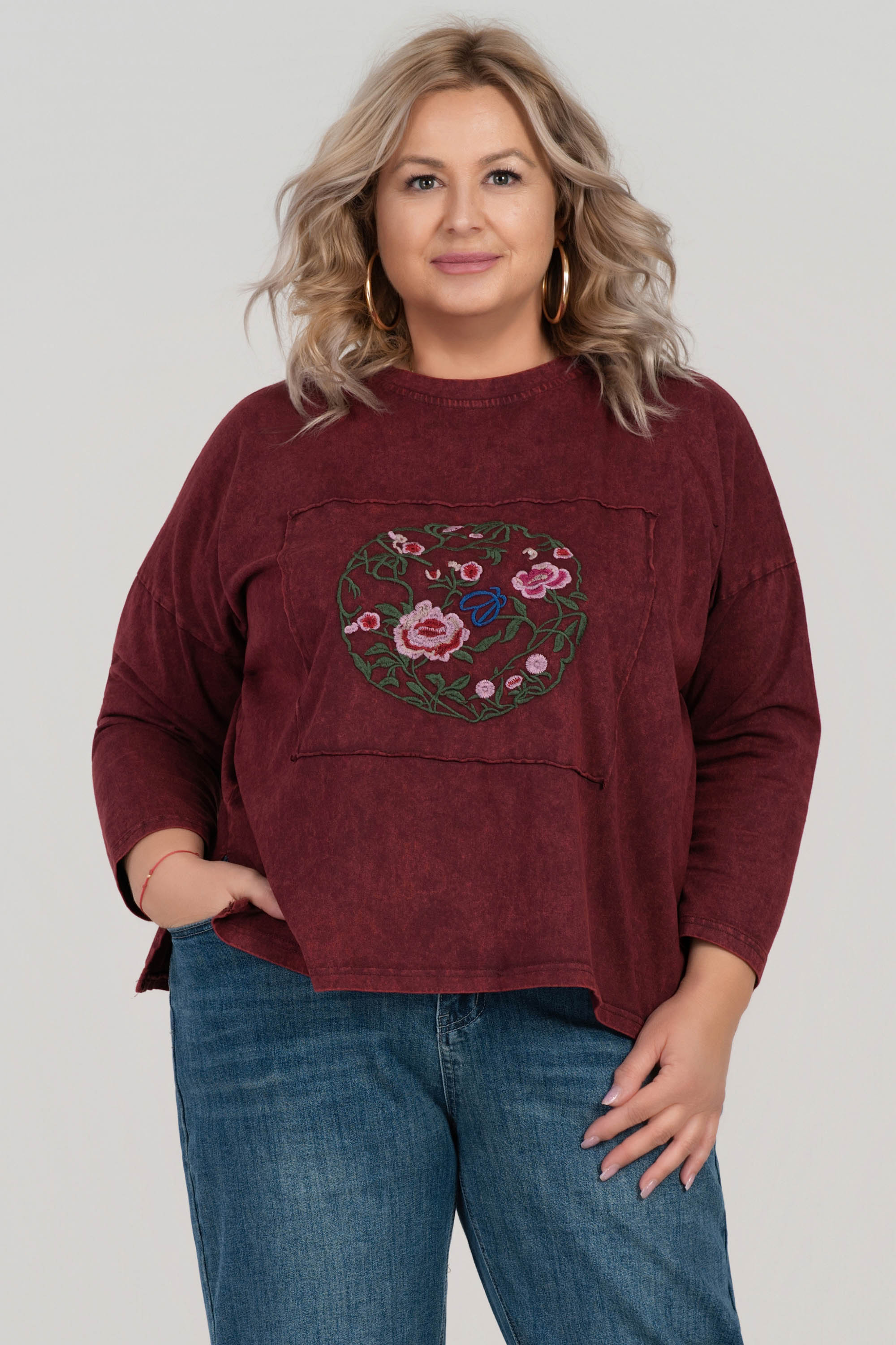 МАКСИ блуза с артистично излъчване, изработена от естествен памук за максимален комфорт. Свободната кройка и падналото рамо създават усещане за лекота, а ефектната бродерия отпред придава характер и цветен акцент. Идеална за съчетание с дънки или панталони в неутрални тонове.