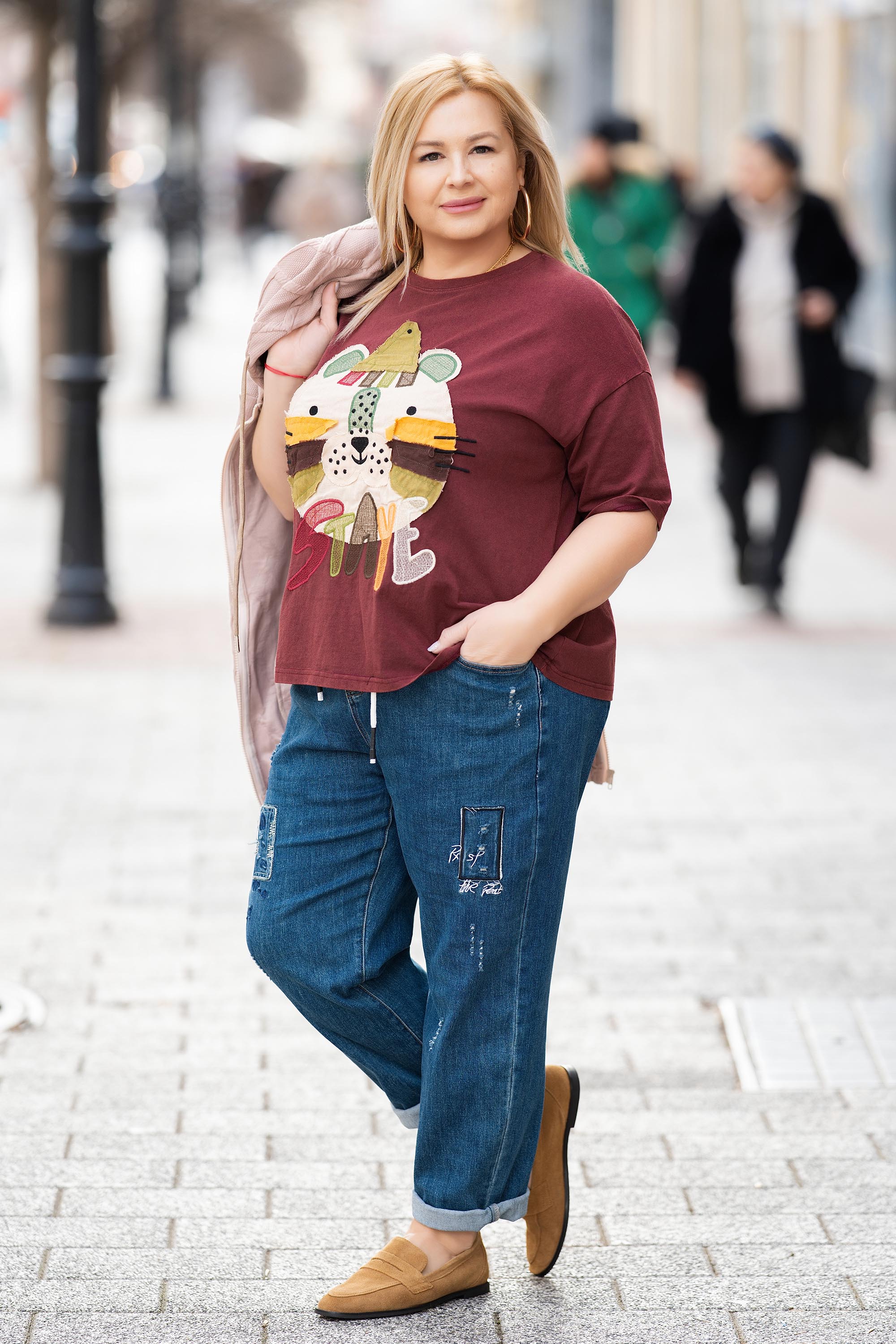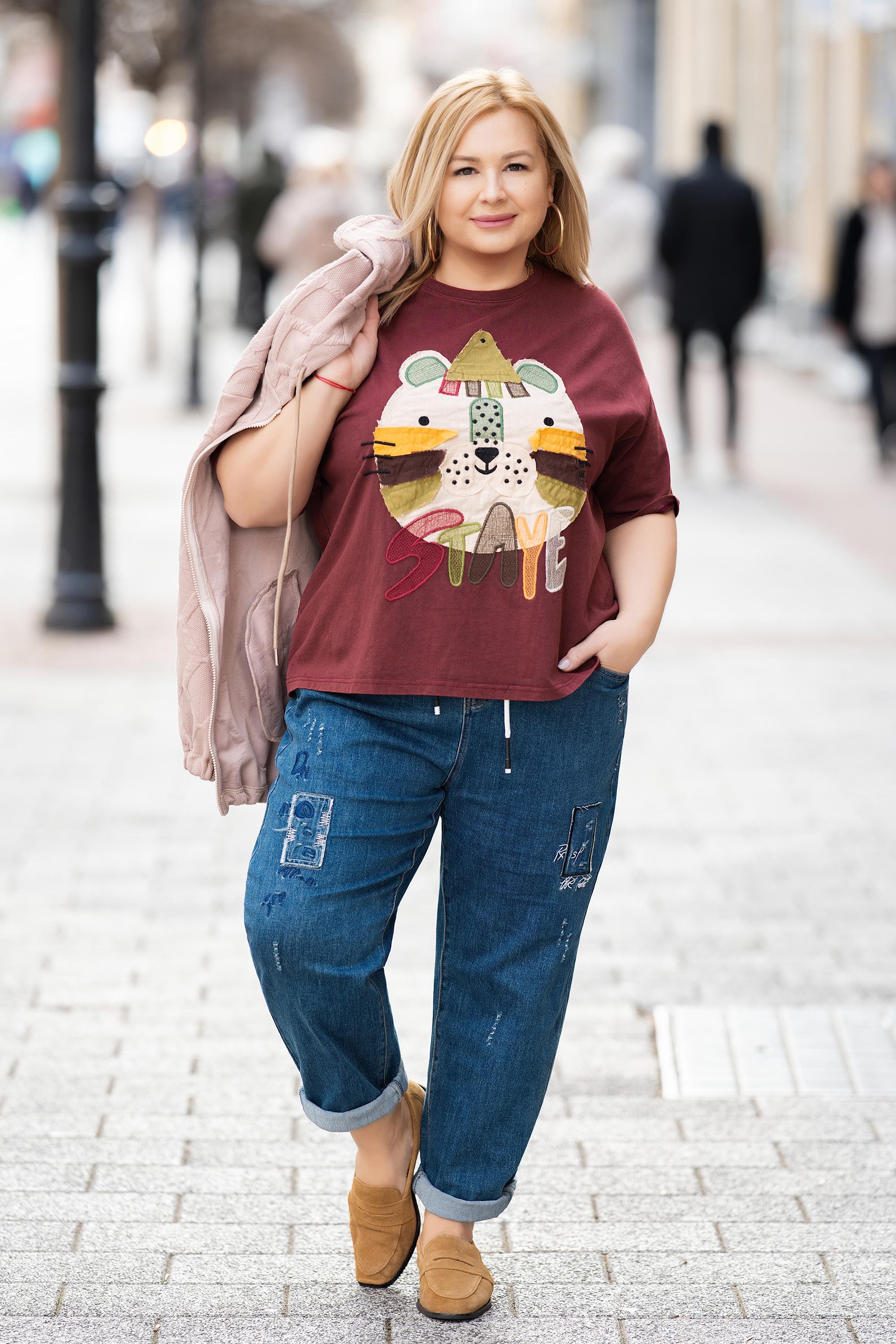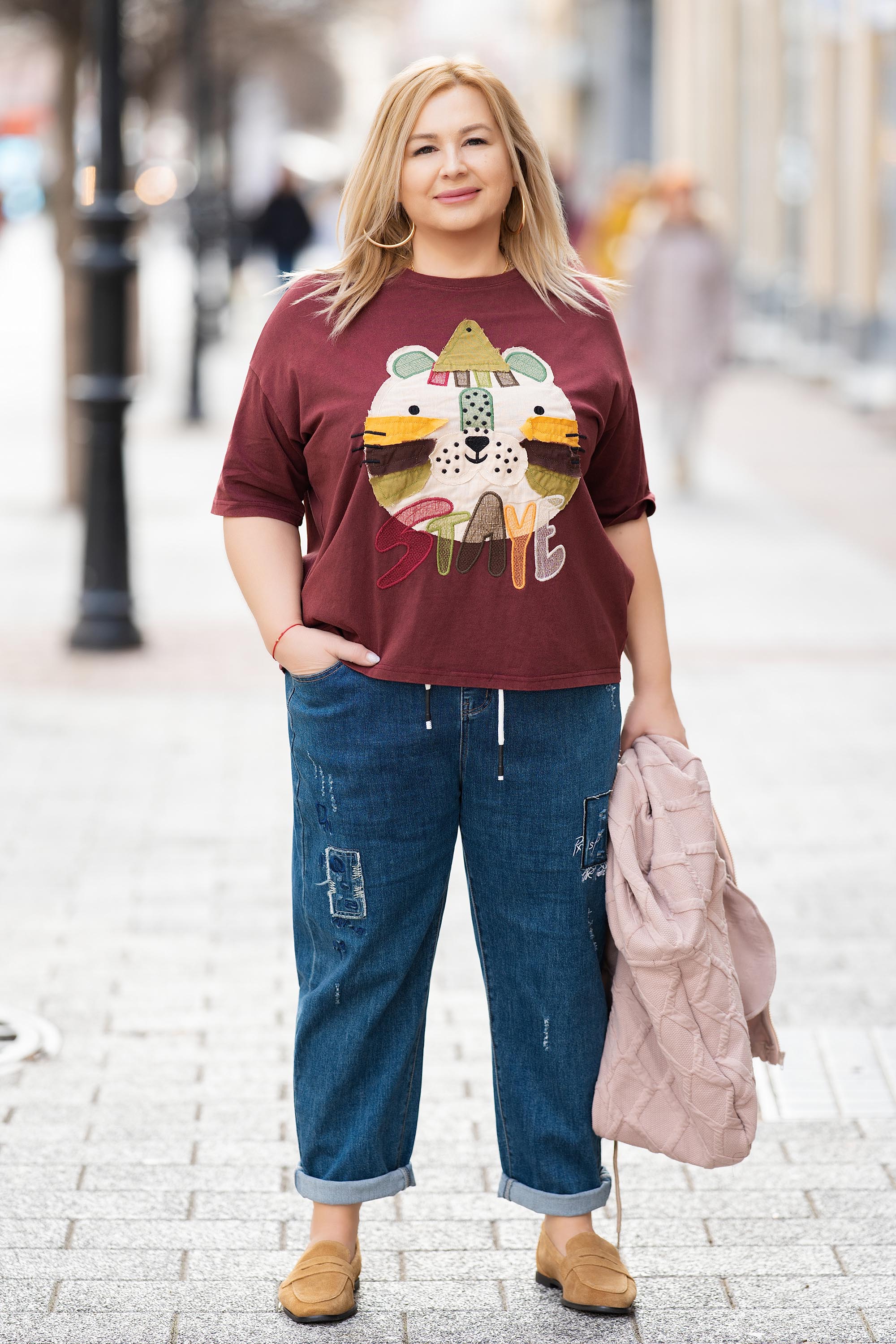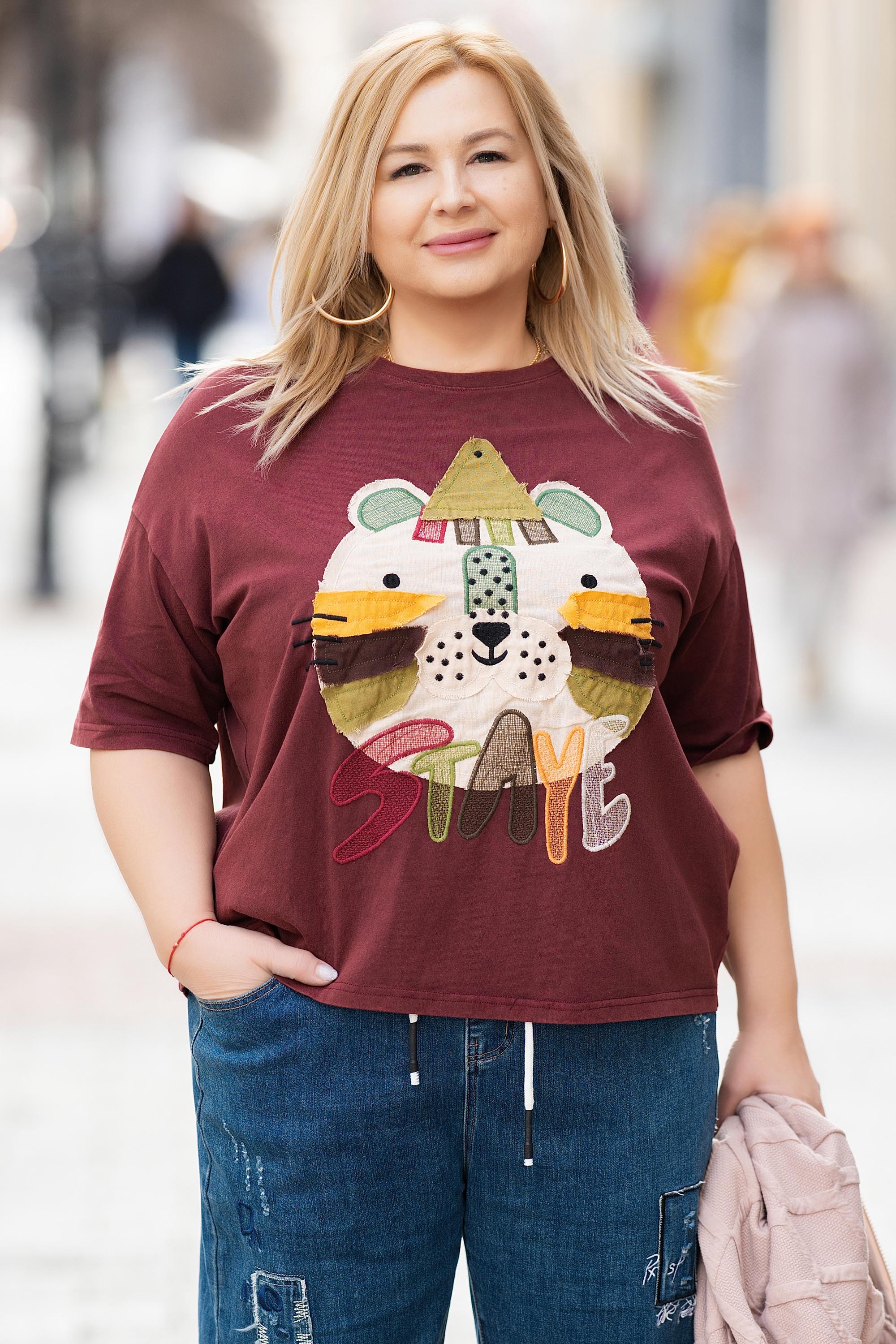 Тази макси блуза в вишнев нюанс е перфектно предложение за ежедневна визия с характер. Моделът е изработен от 100% памук с обло деколте и ефектна бродирана апликация в свежи цветове. Меката и дишаща материя осигурява комфорт и свобода на движение, а свободната кройка подчертава усещането за лекота. Идеална за пролетно-летния сезон.