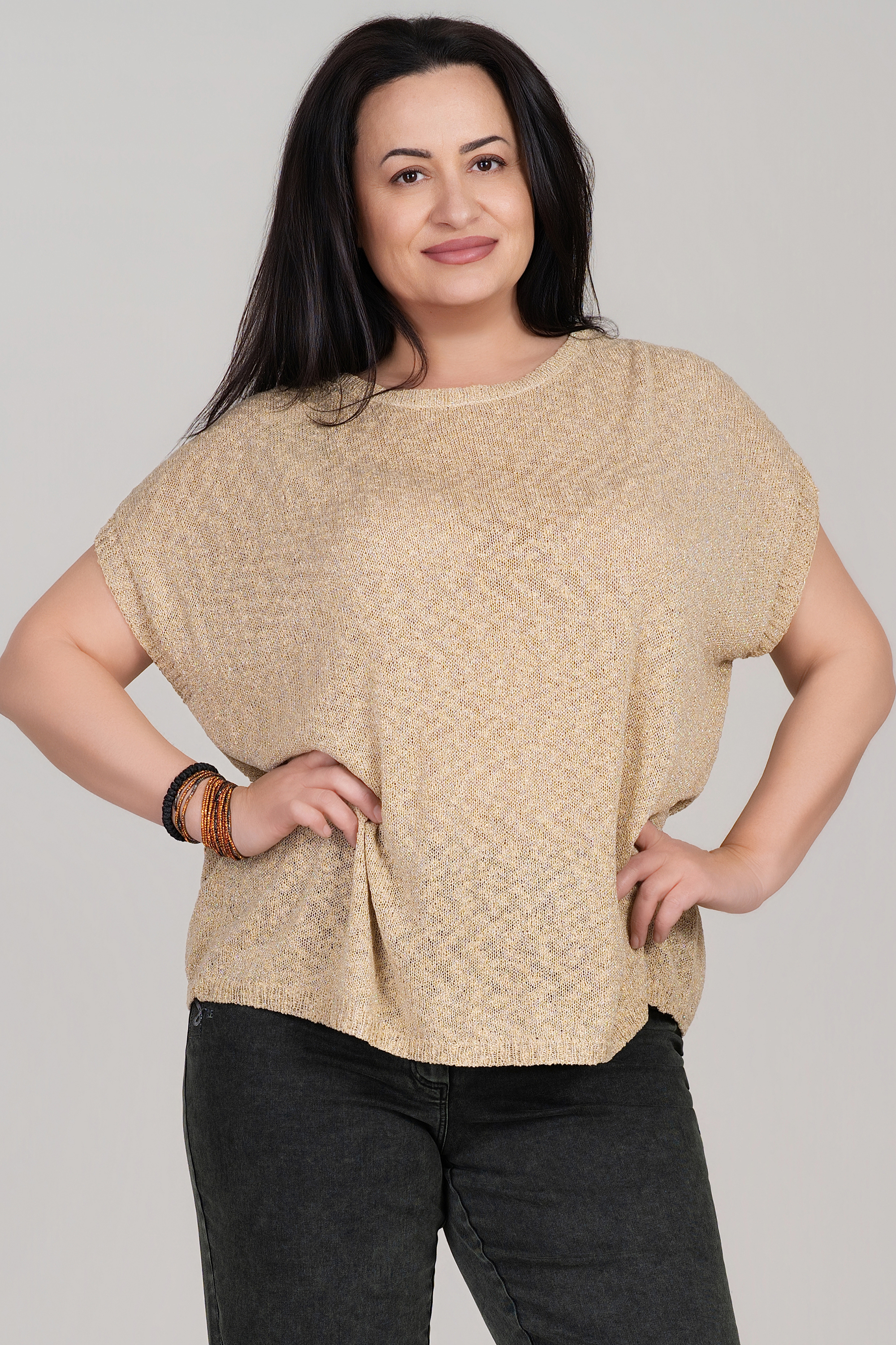 МАКСИ блуза в бежово с нишка ламе и интересен гръб