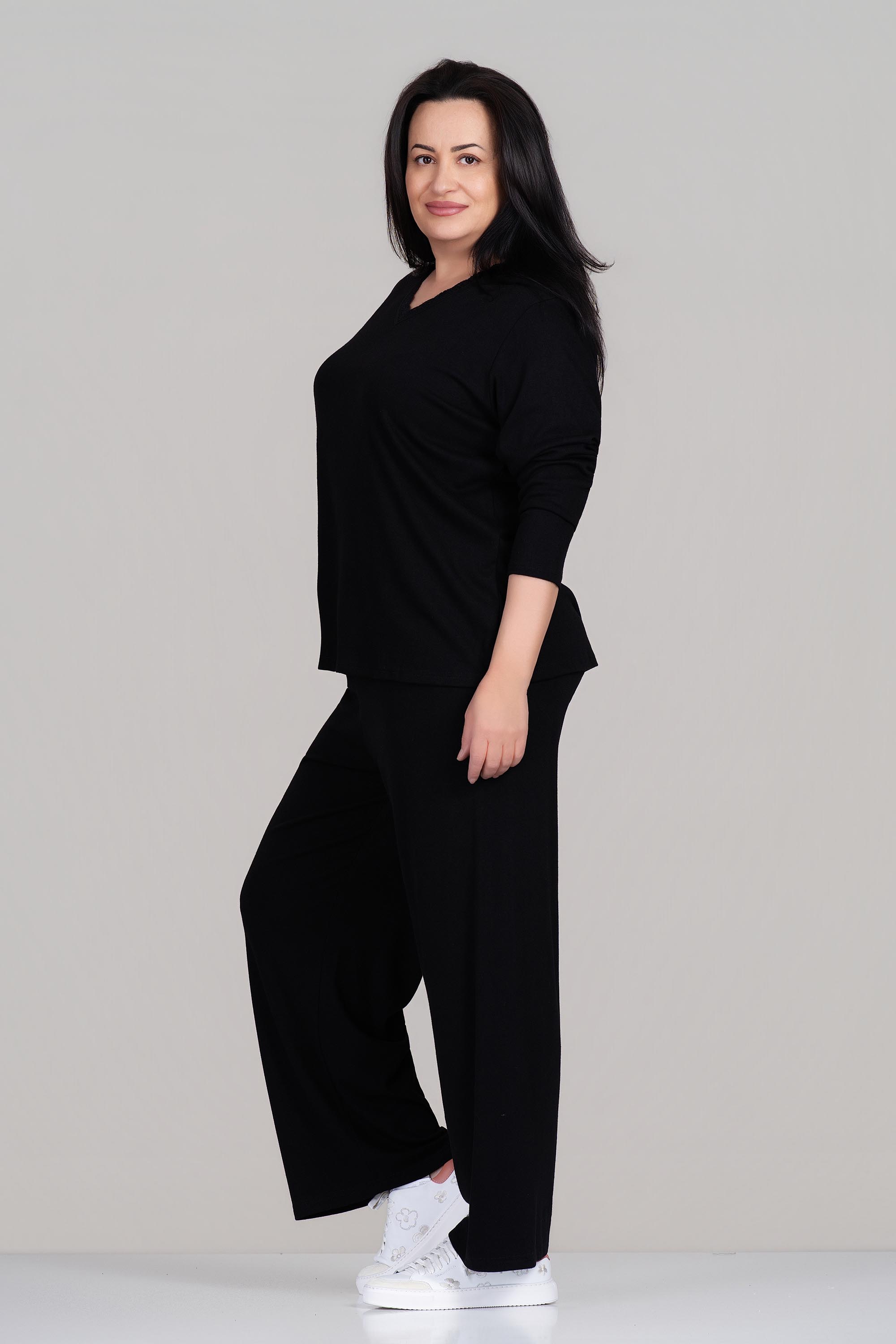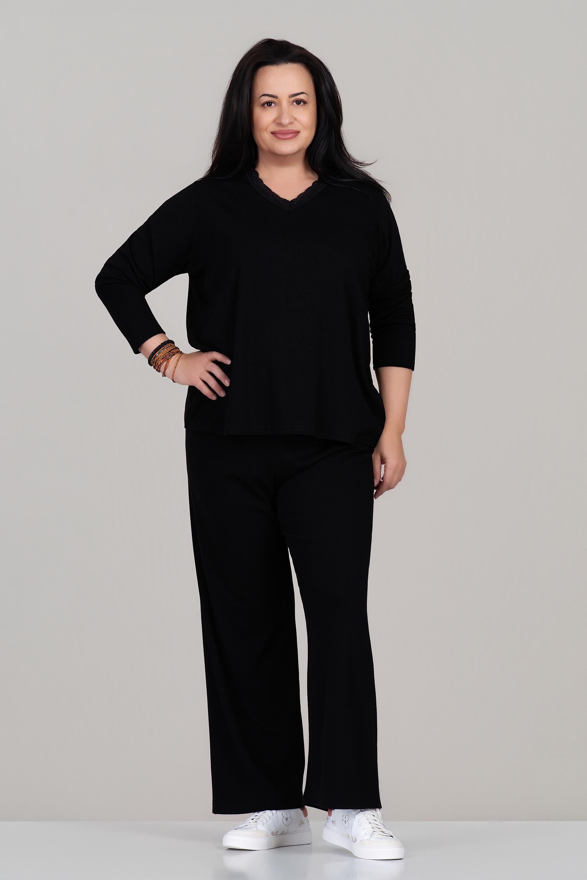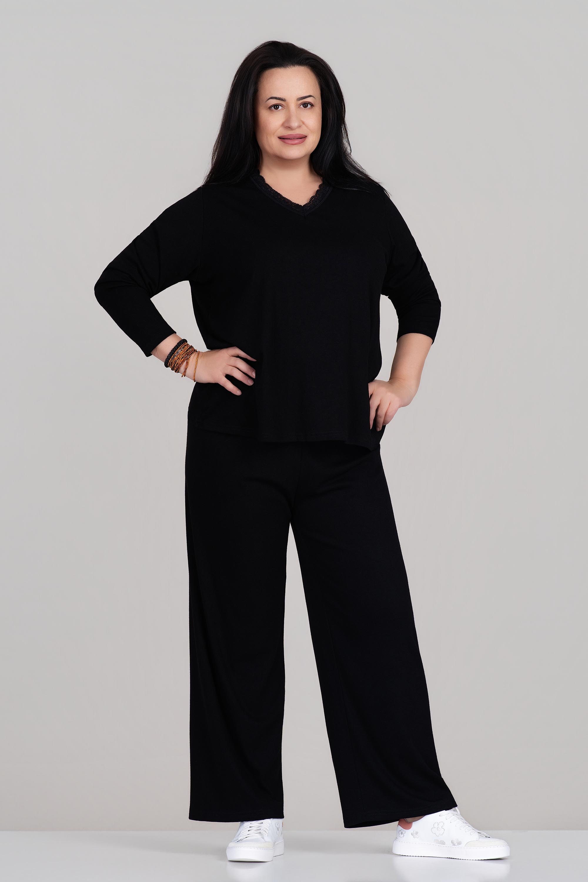 МАКСИ блуза в черно с остро деолте с дантела