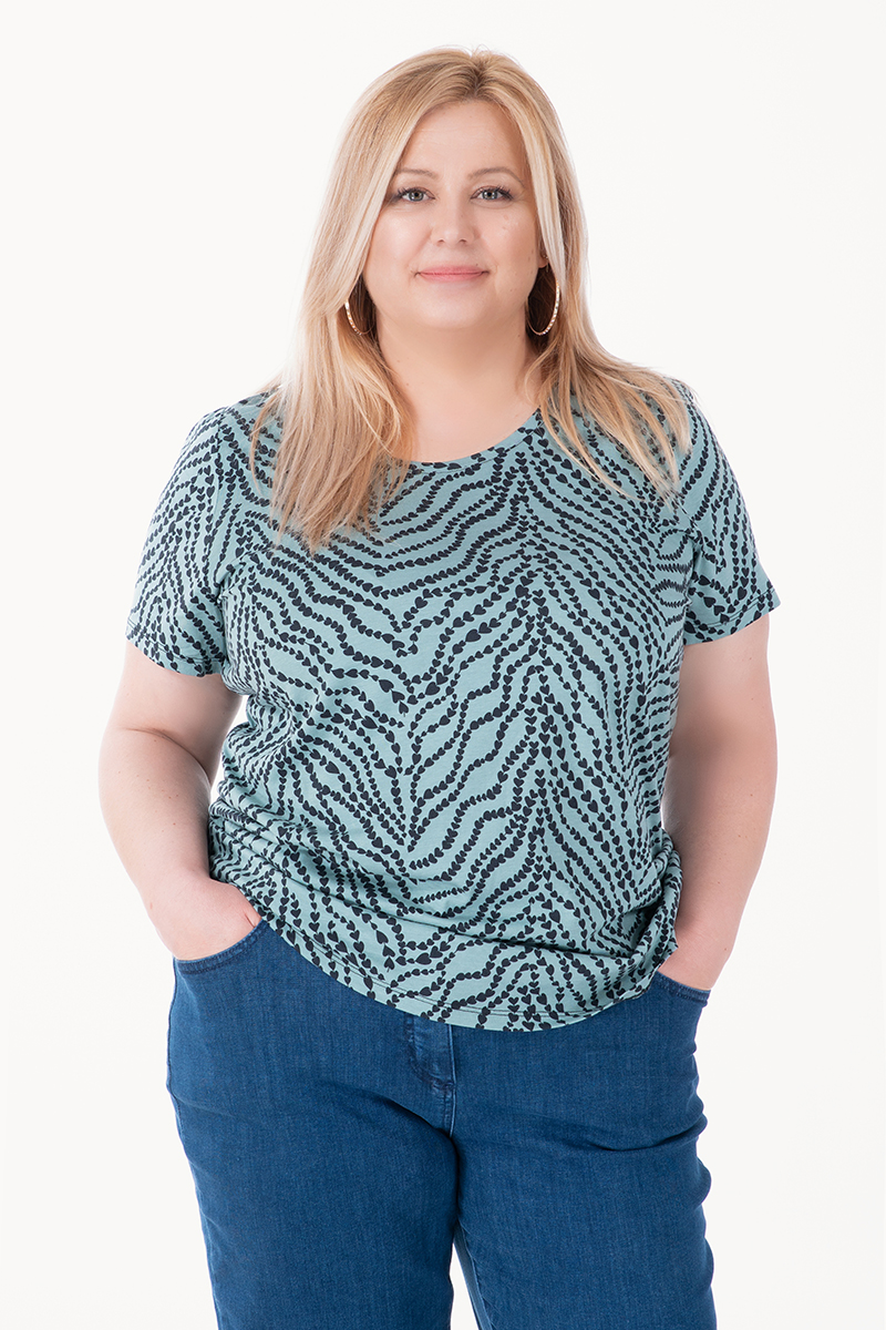 Особености: Обло деколте, къс ръкав, ситен принт черни сърца