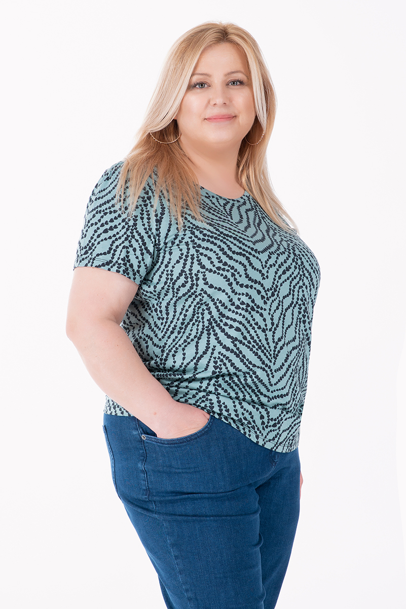 МАКСИ блуза в зелено със ситен принт черни сърца